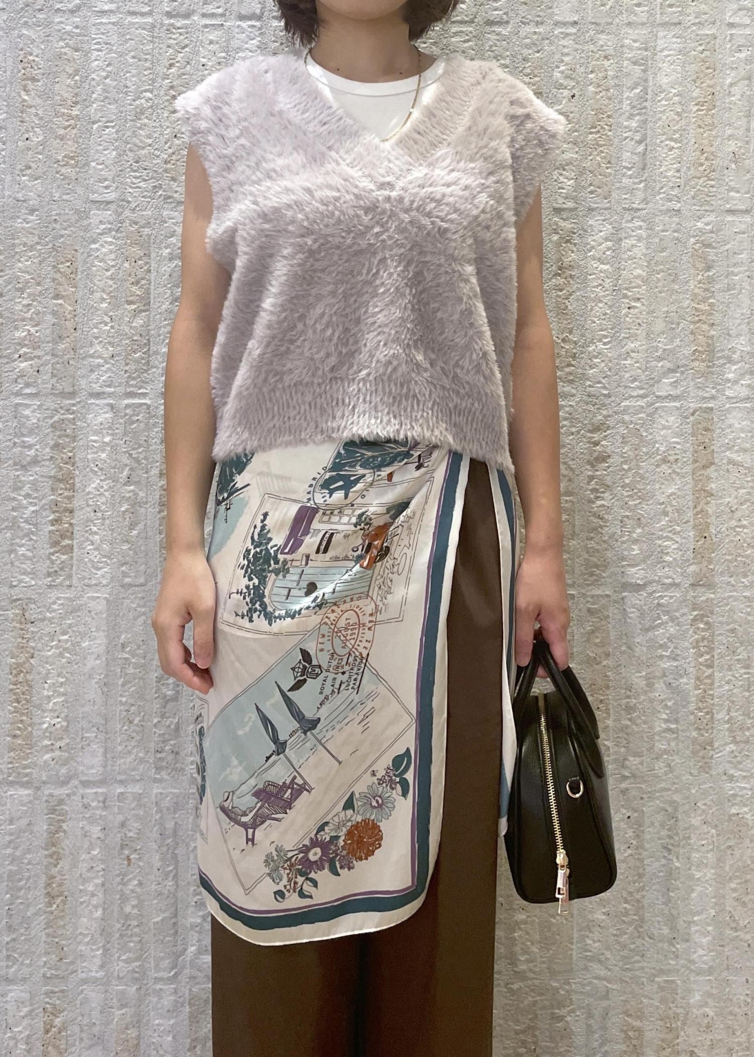 ROPÉ PICNICショートフェザーニットベストパープル系 / F¥3,993レビュー可愛らしい印象のあるパープル系は普段あまり着ませんが、パンツスタイルで甘くなりすぎないコーデで着てみました。コンパクトで丈の短いデザインなので、ボトムスとのバランスがとりやすくフェザーの重たい印象もなく着やすかったです。