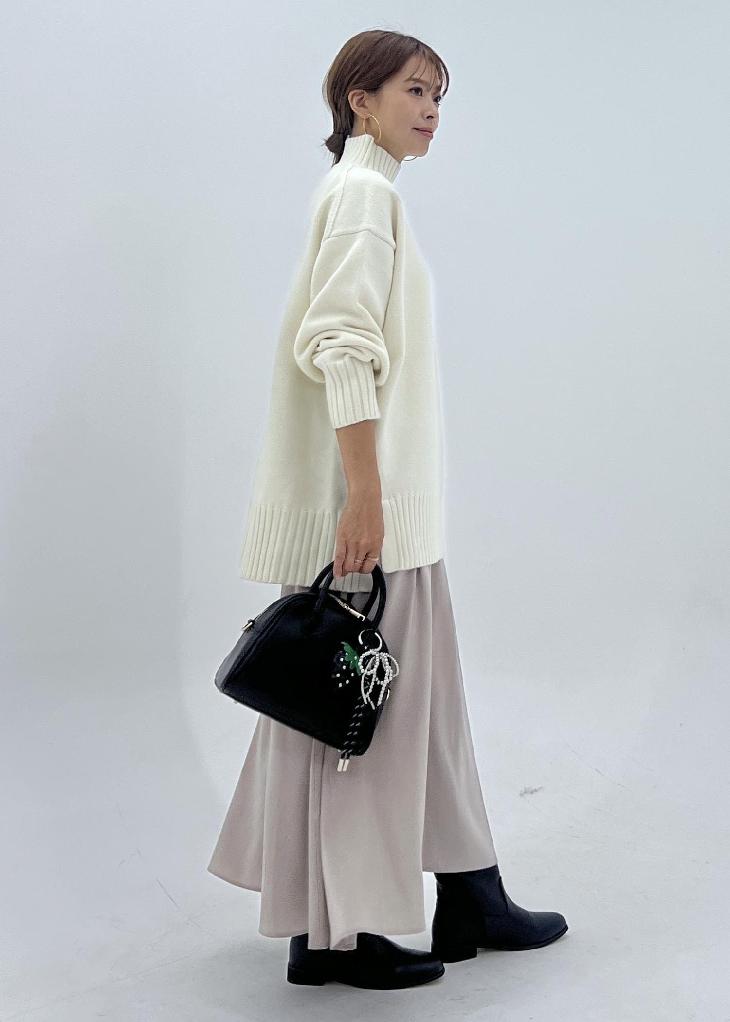 モノトーンでも重たく見えないので、年末年始のお出かけにも華やかさのあるスタイリングです。