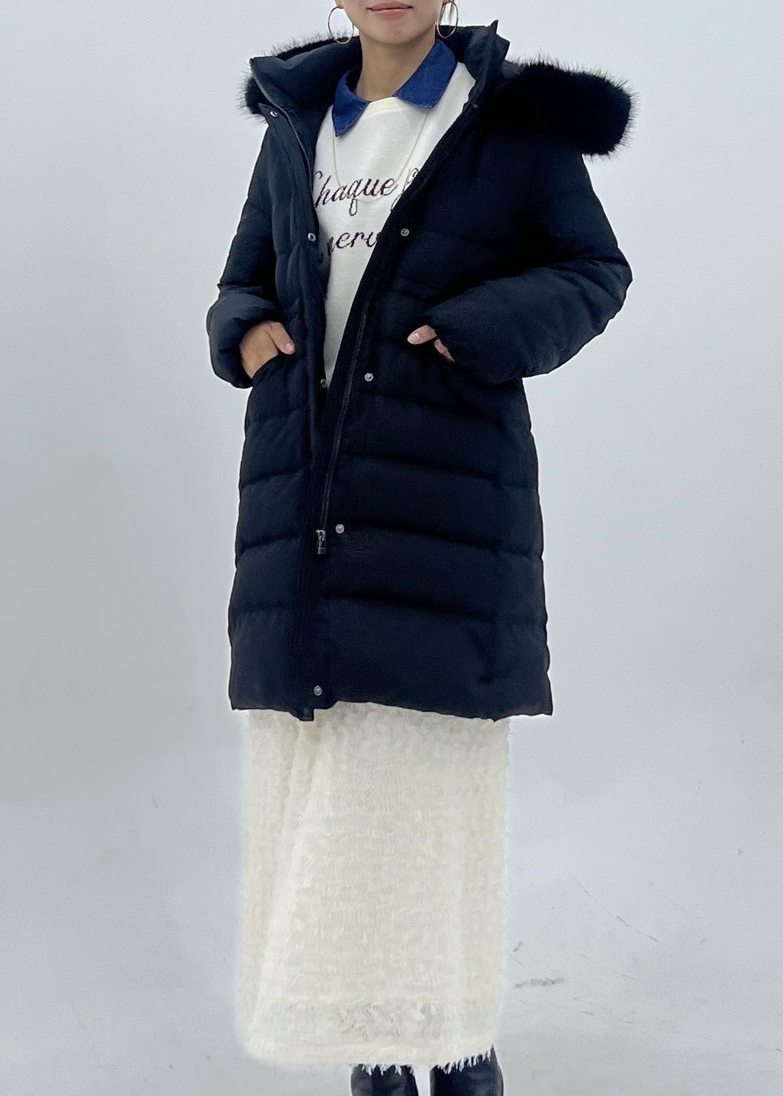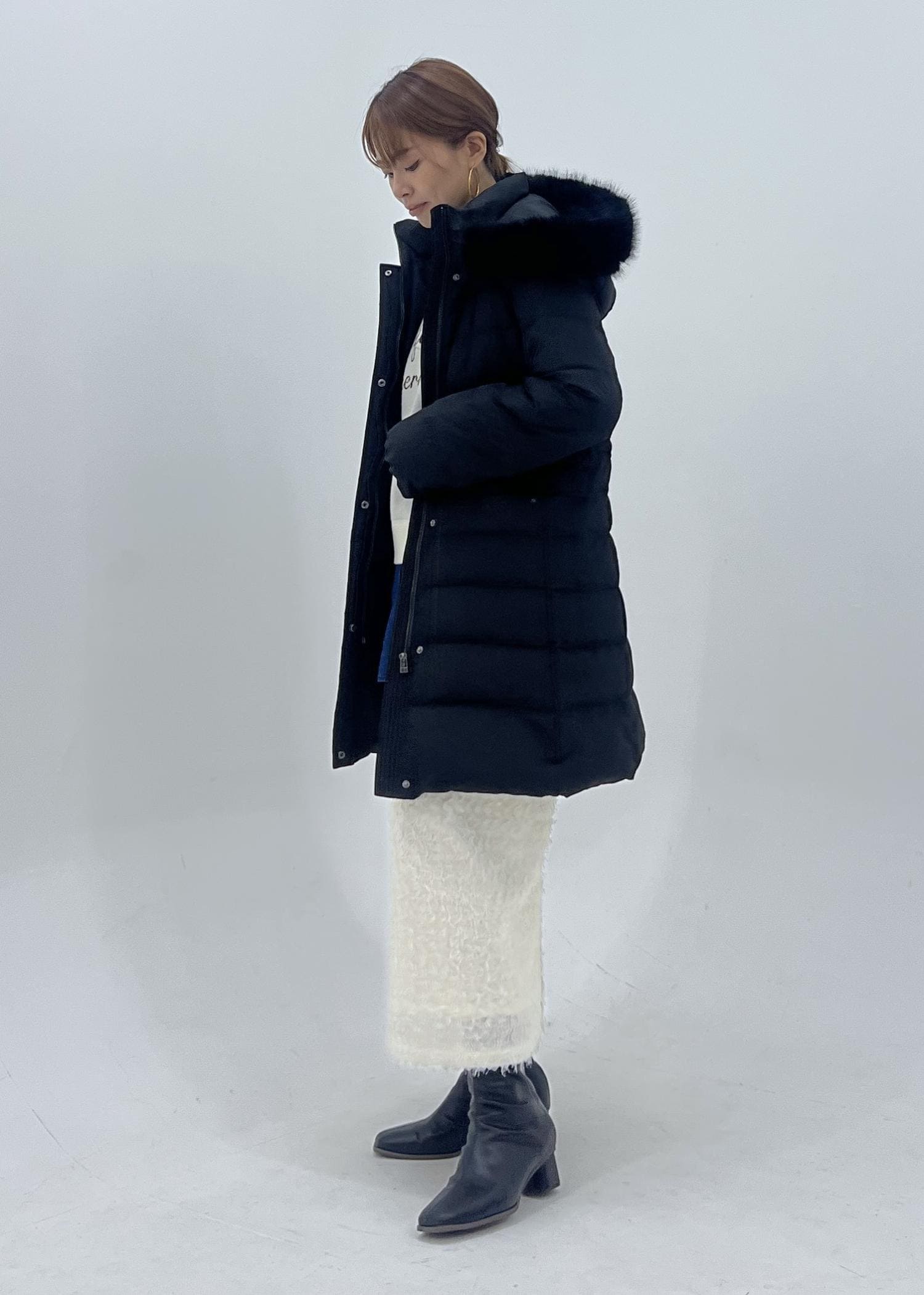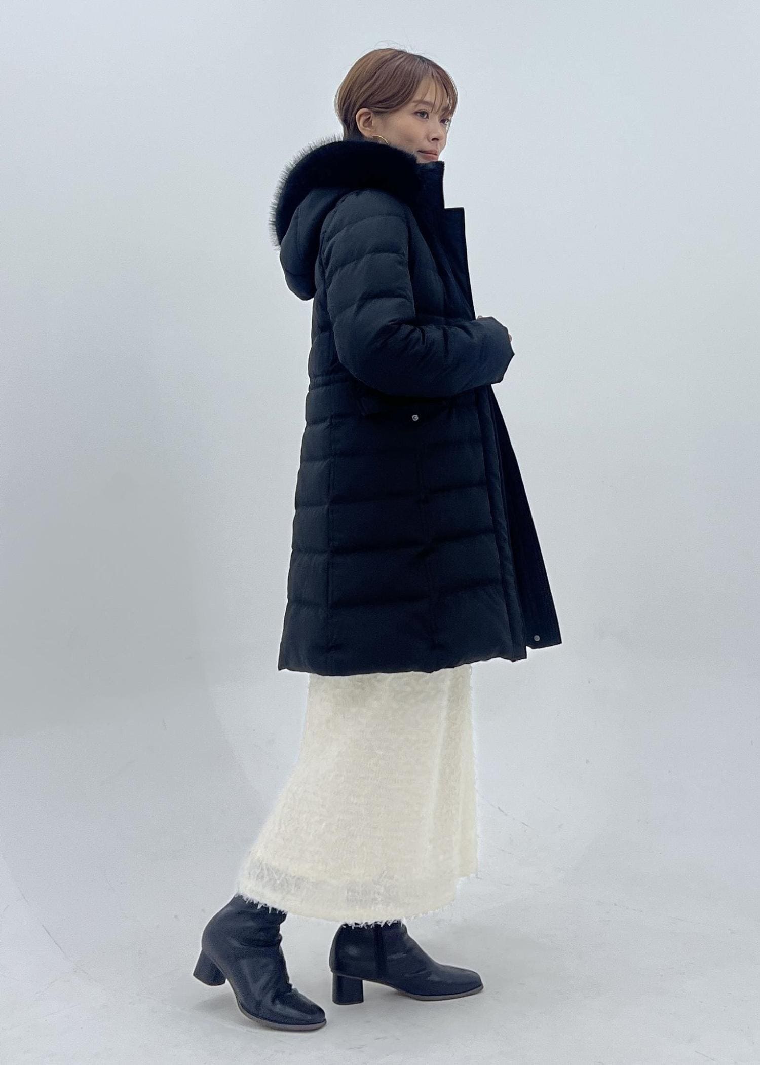 軽く暖かいダウンコートは、フードのファーデザインが顔周りを華やかにしてくれます。