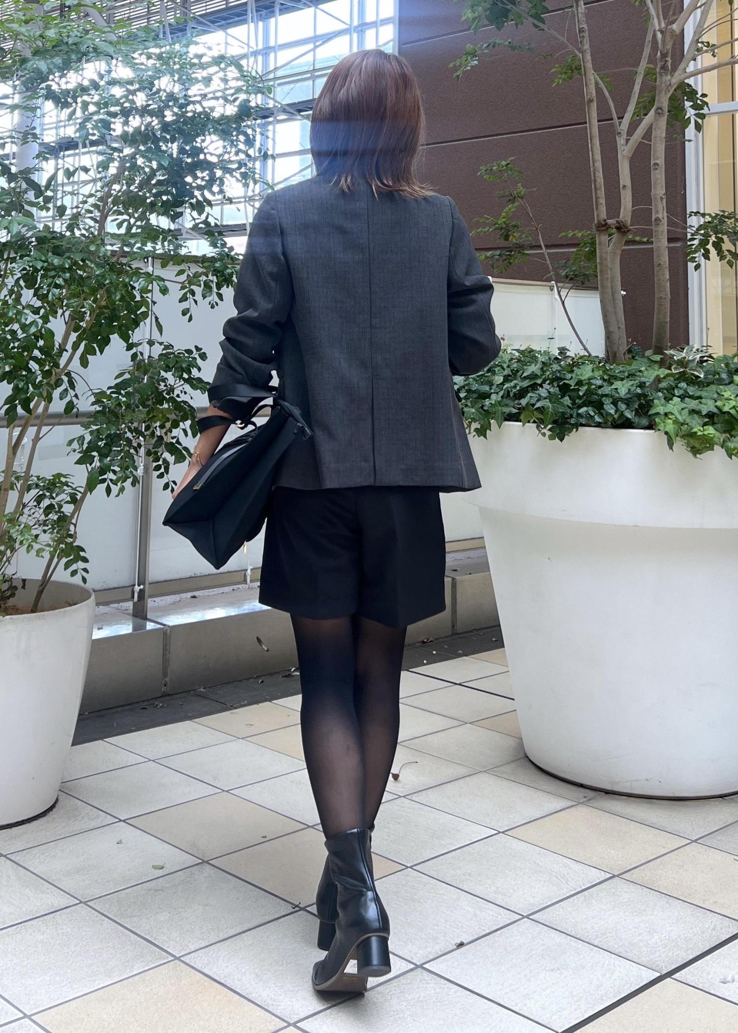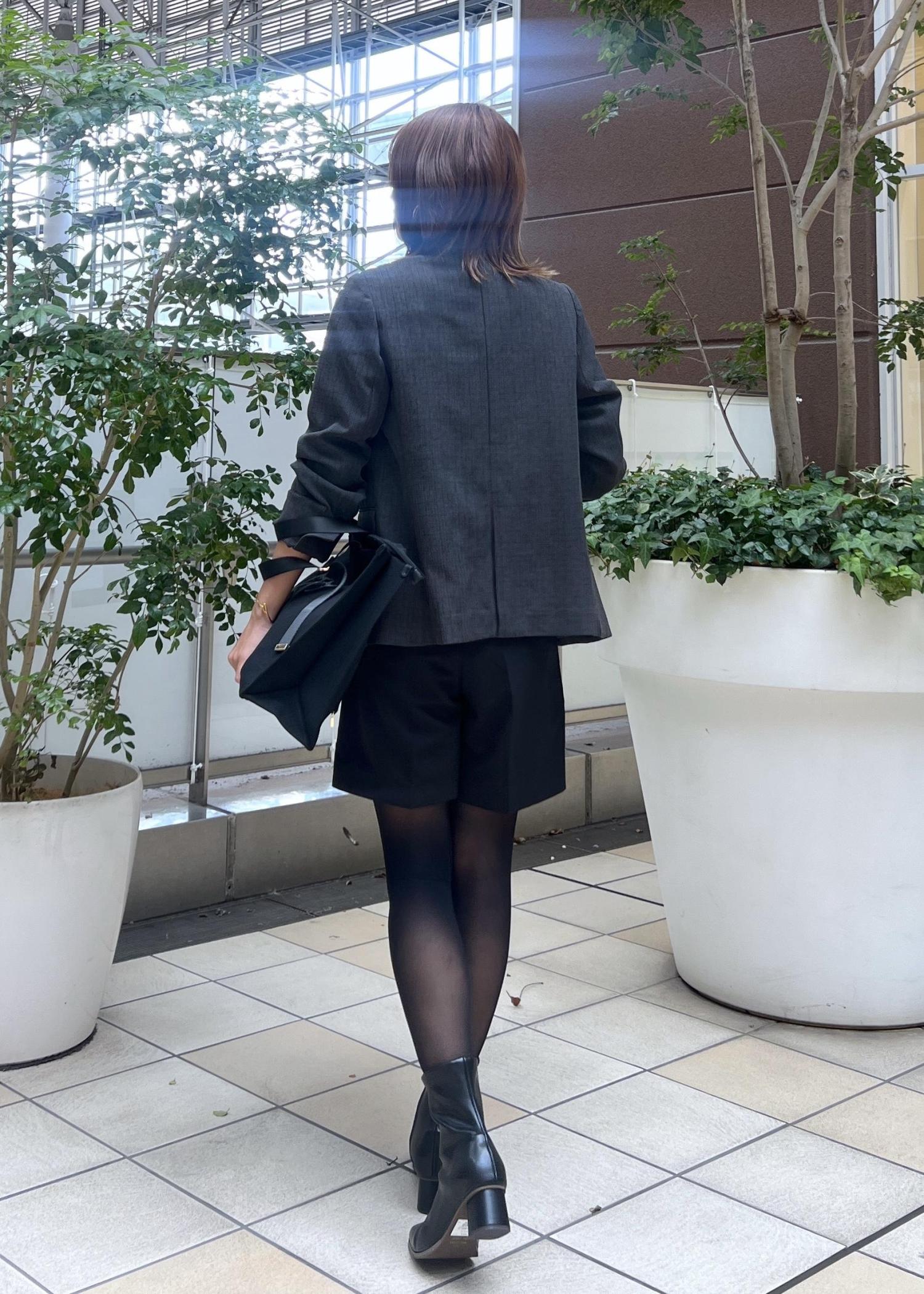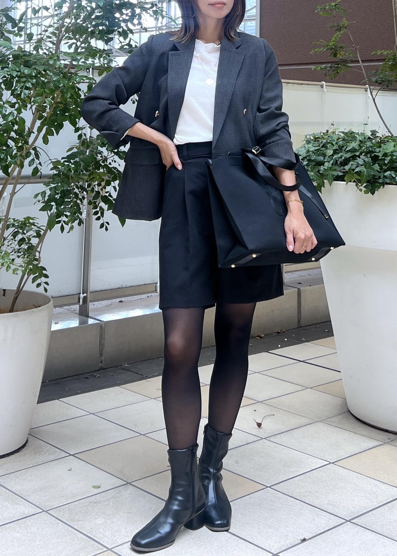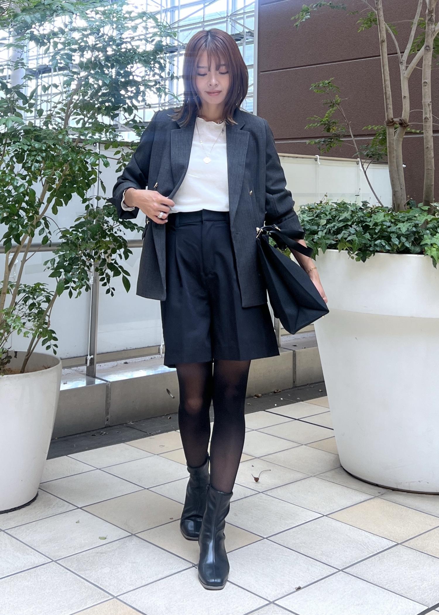 きれいめな印象のジャケットはハーフパンツを合わせて、大人モードな着こなしも。