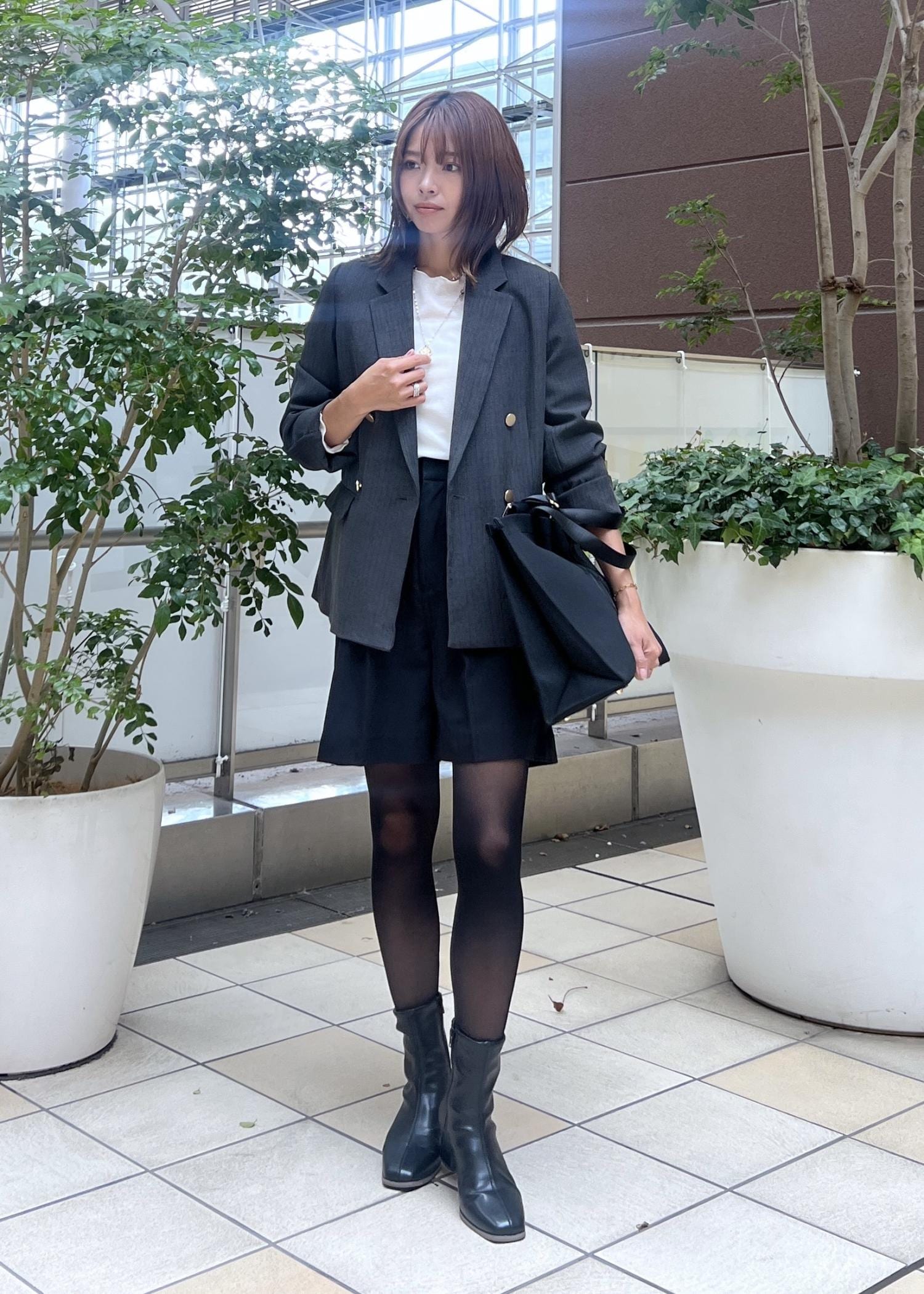 ジャケット×ハーフパンツの大人コーデ