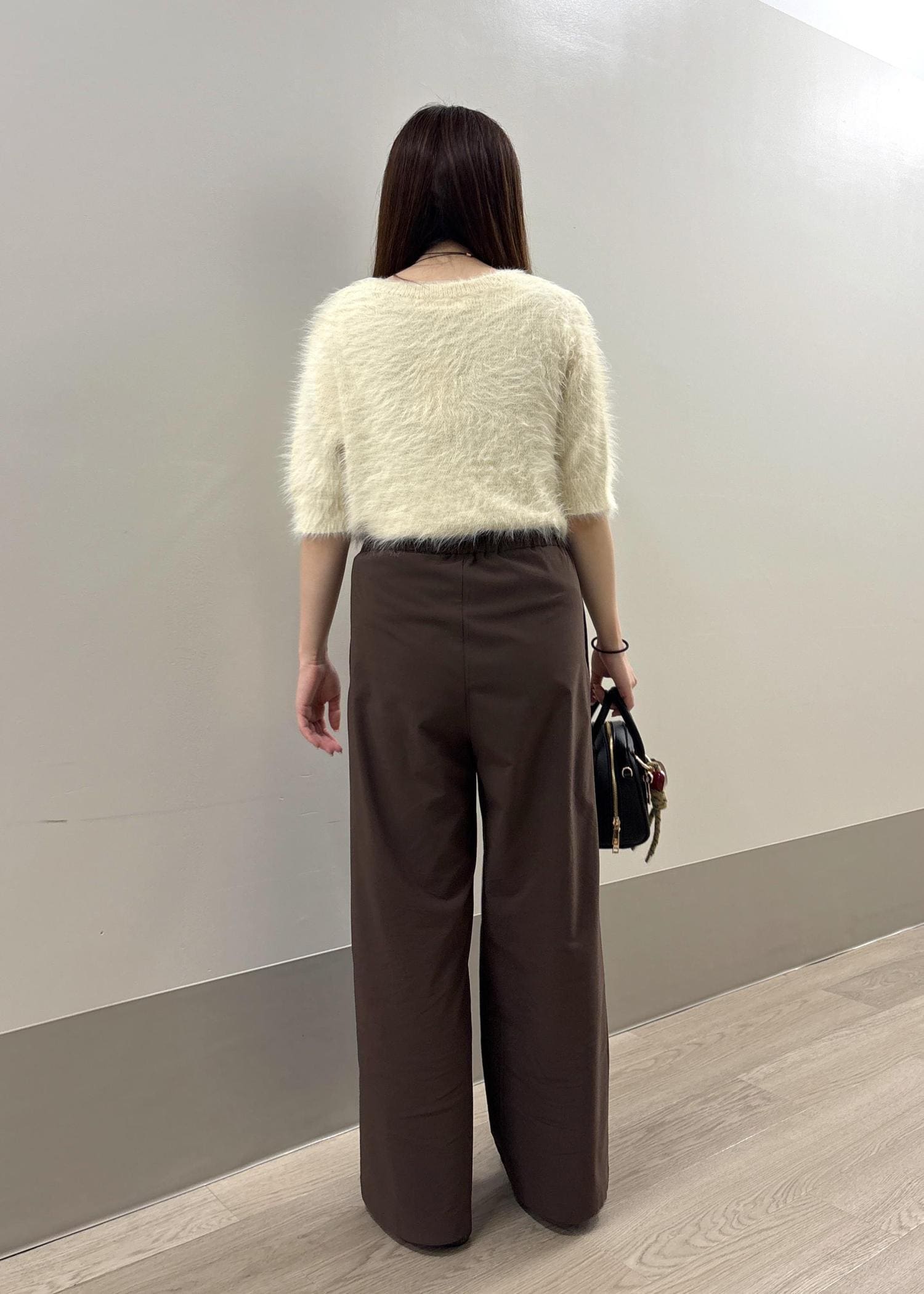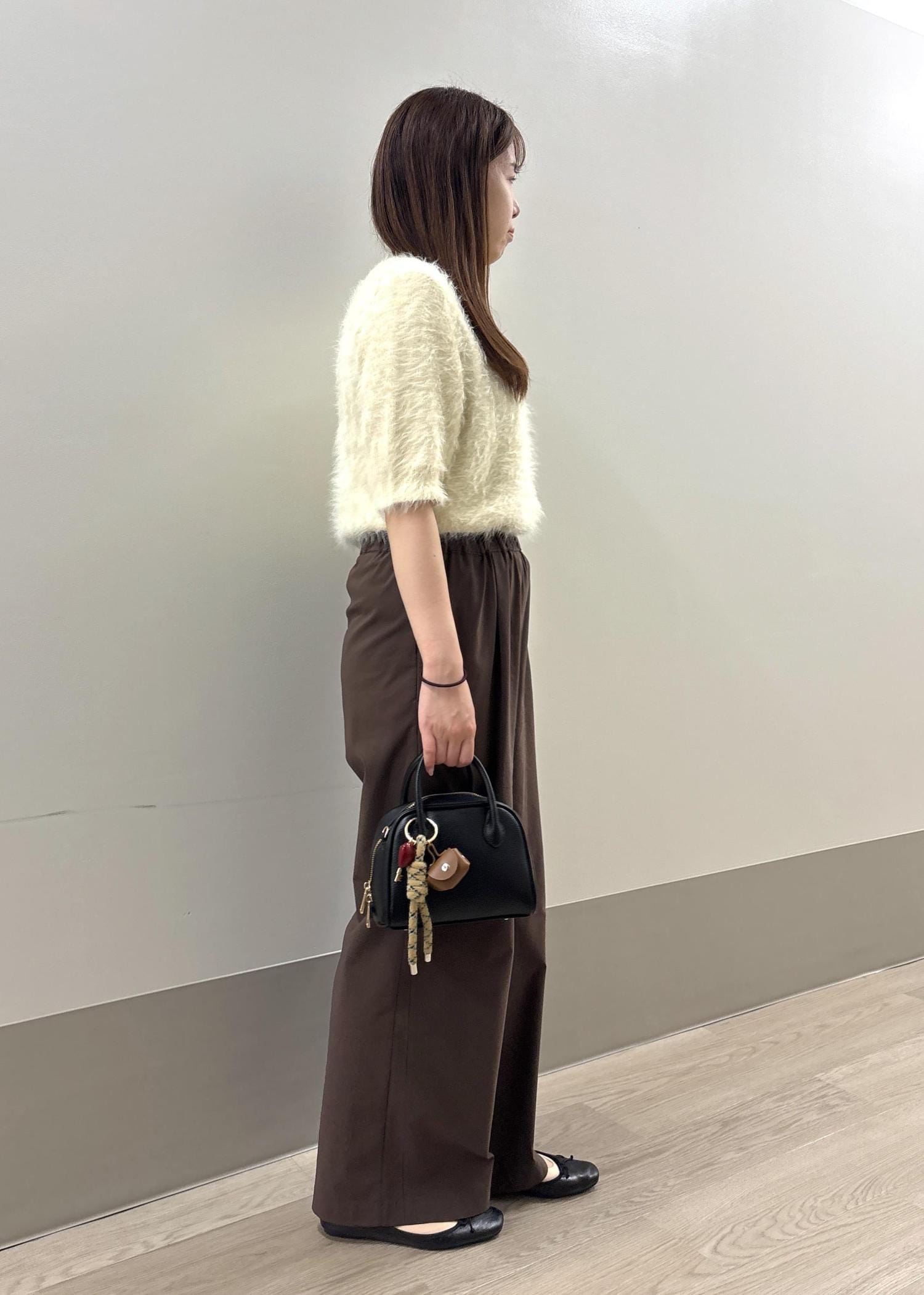 より秋らしくなるシャギーニットと、少しラフ感のあるワイドパンツと合わせてシンプルコーデにしました◎