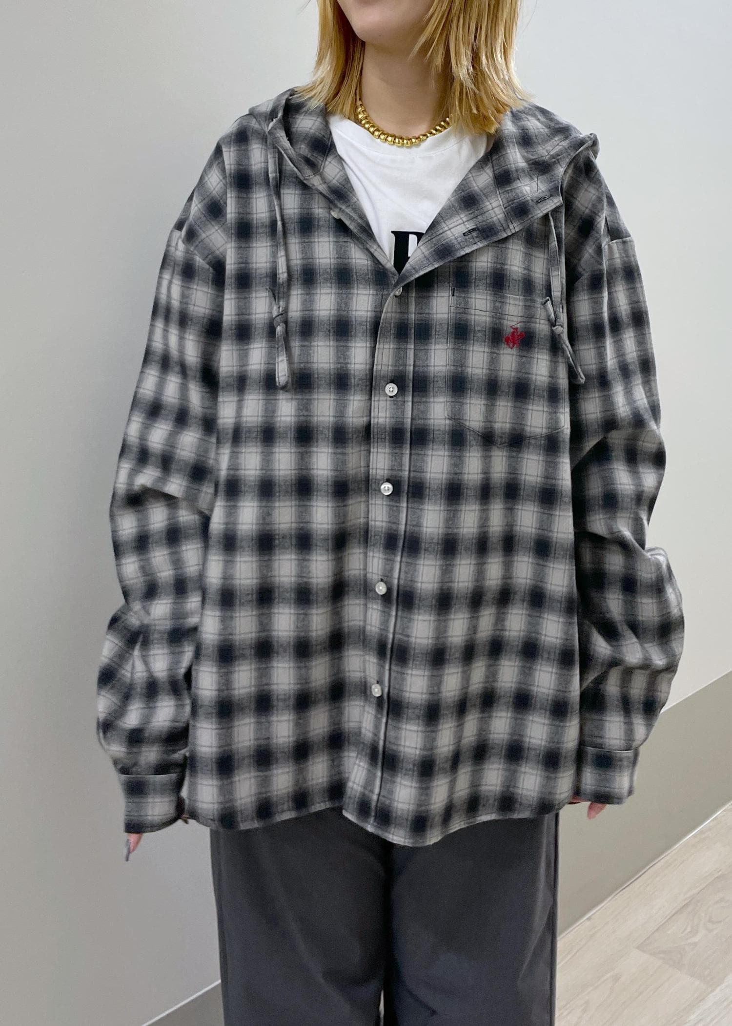 ルミネ店限定アイテムフード付きチェックシャツ(品番:GDH85510)が入荷しております!