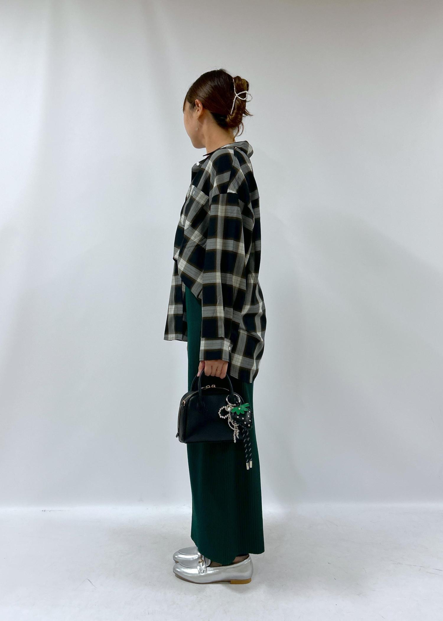 ダークグリーンのスカートをポイントにコーディネートを組みました。スカートとっても履きやすかったです!