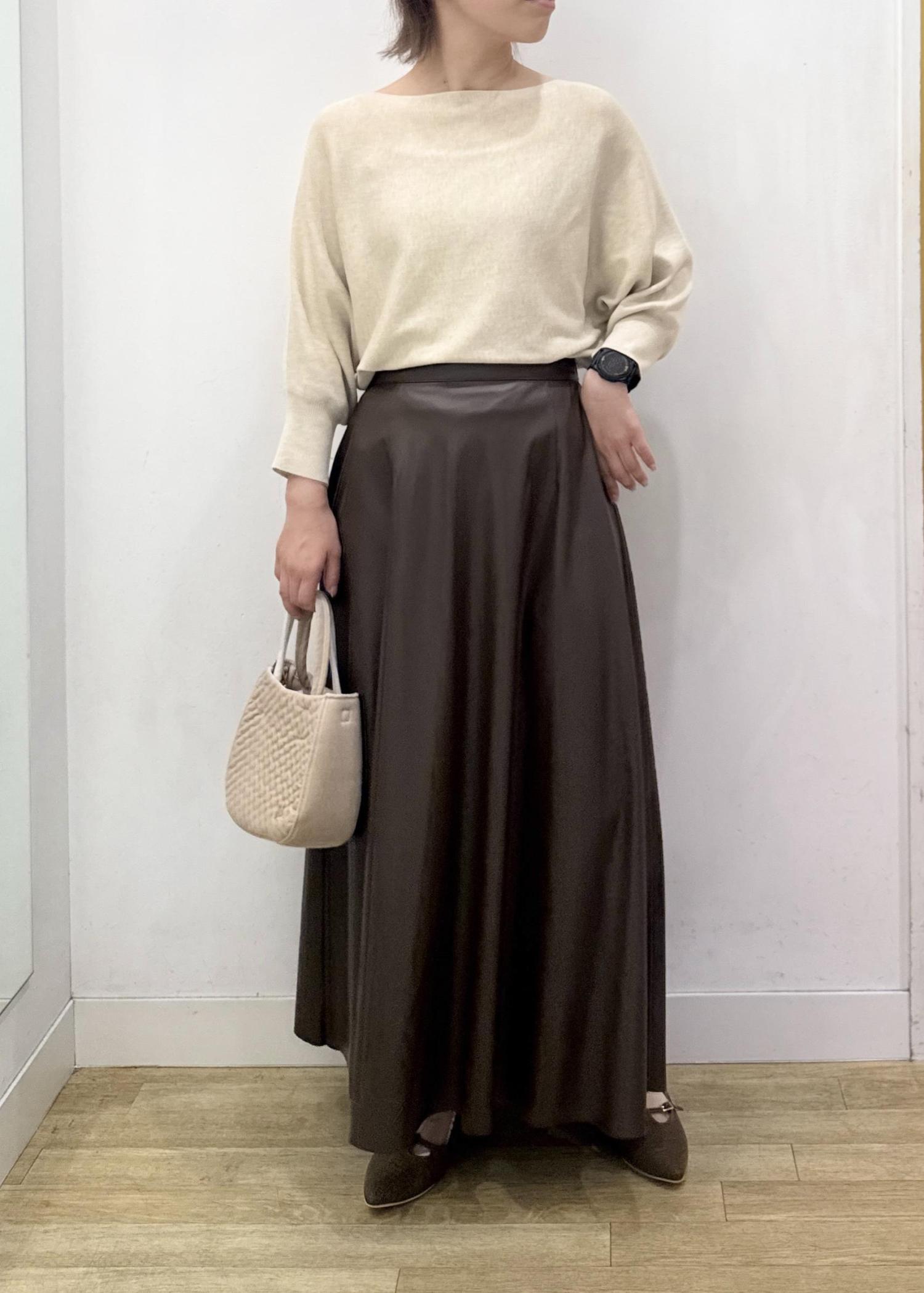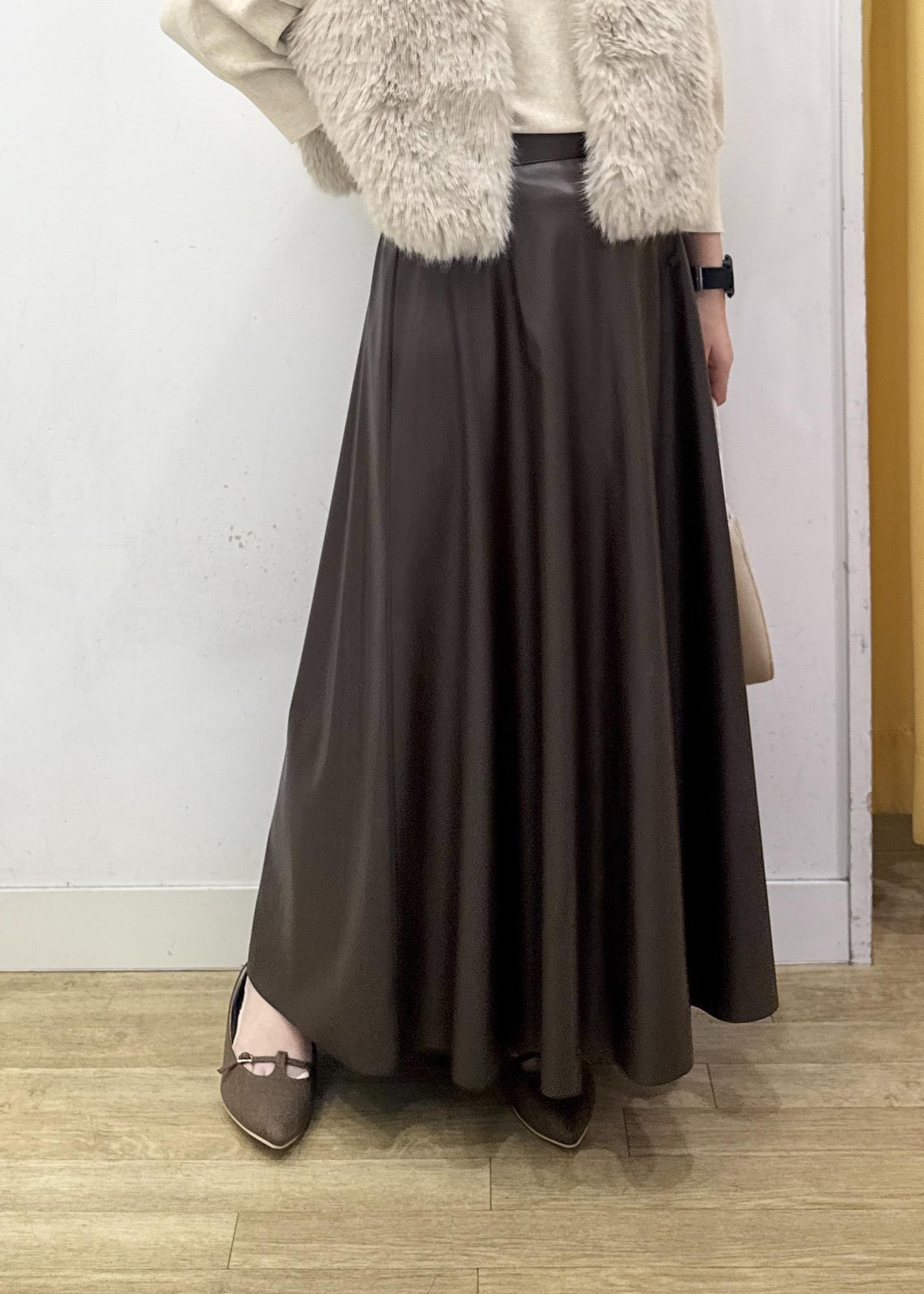 ROPÉ PICNICシンセティックレザーフレアロングスカートダークブラウン / S¥4,994レビューウエストは後ろゴムで、窮屈感なく穿けるジャストなサイズ。