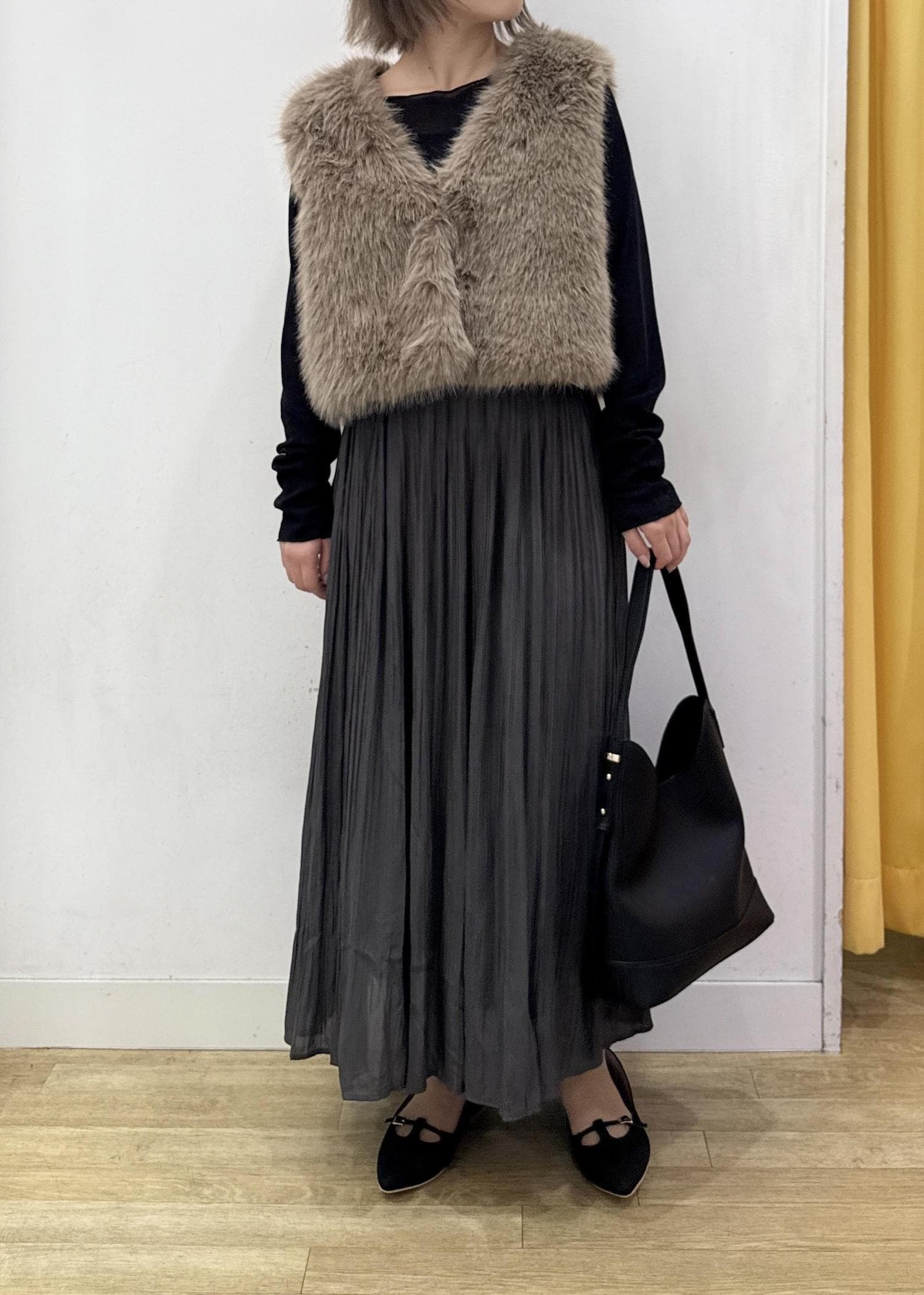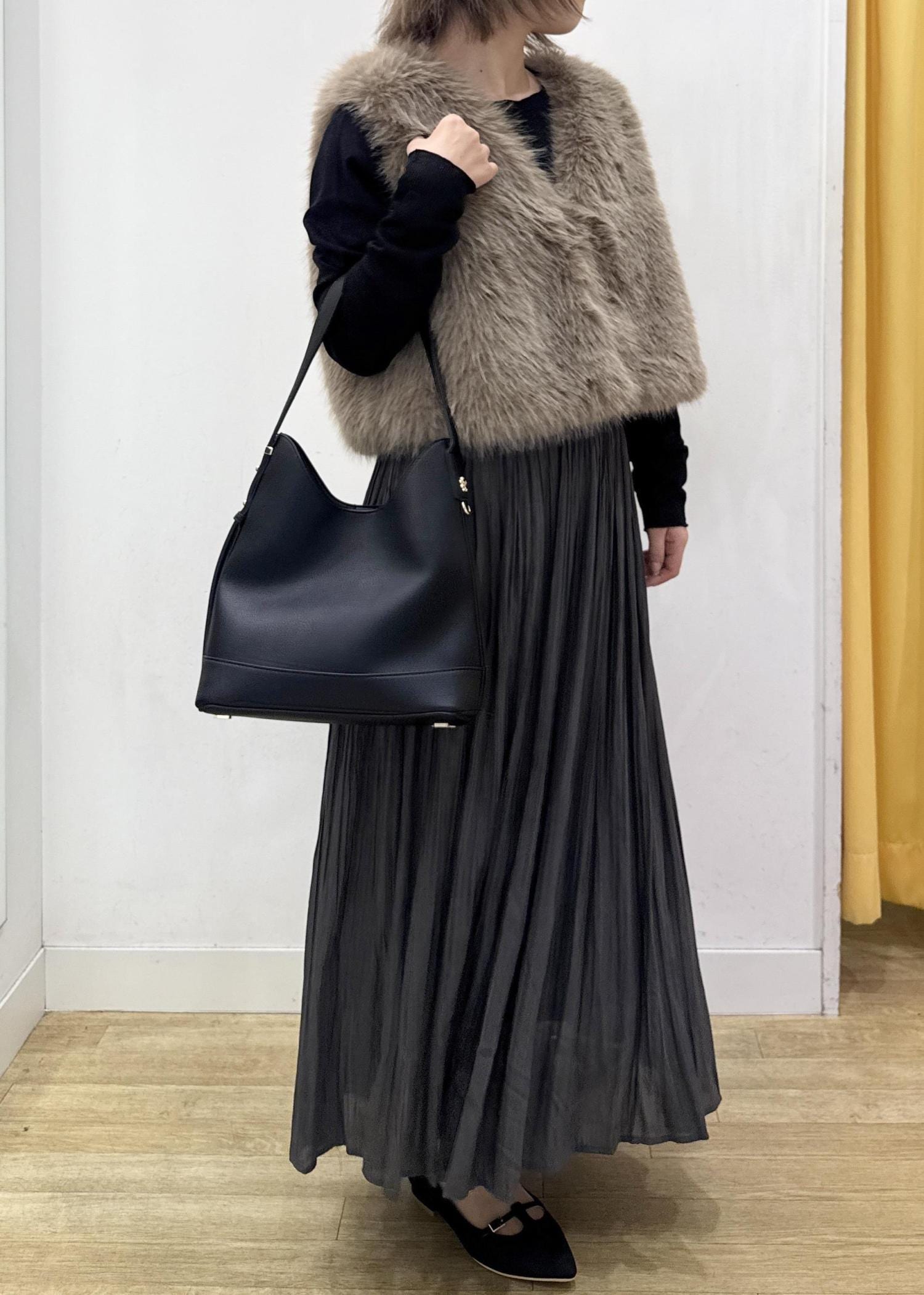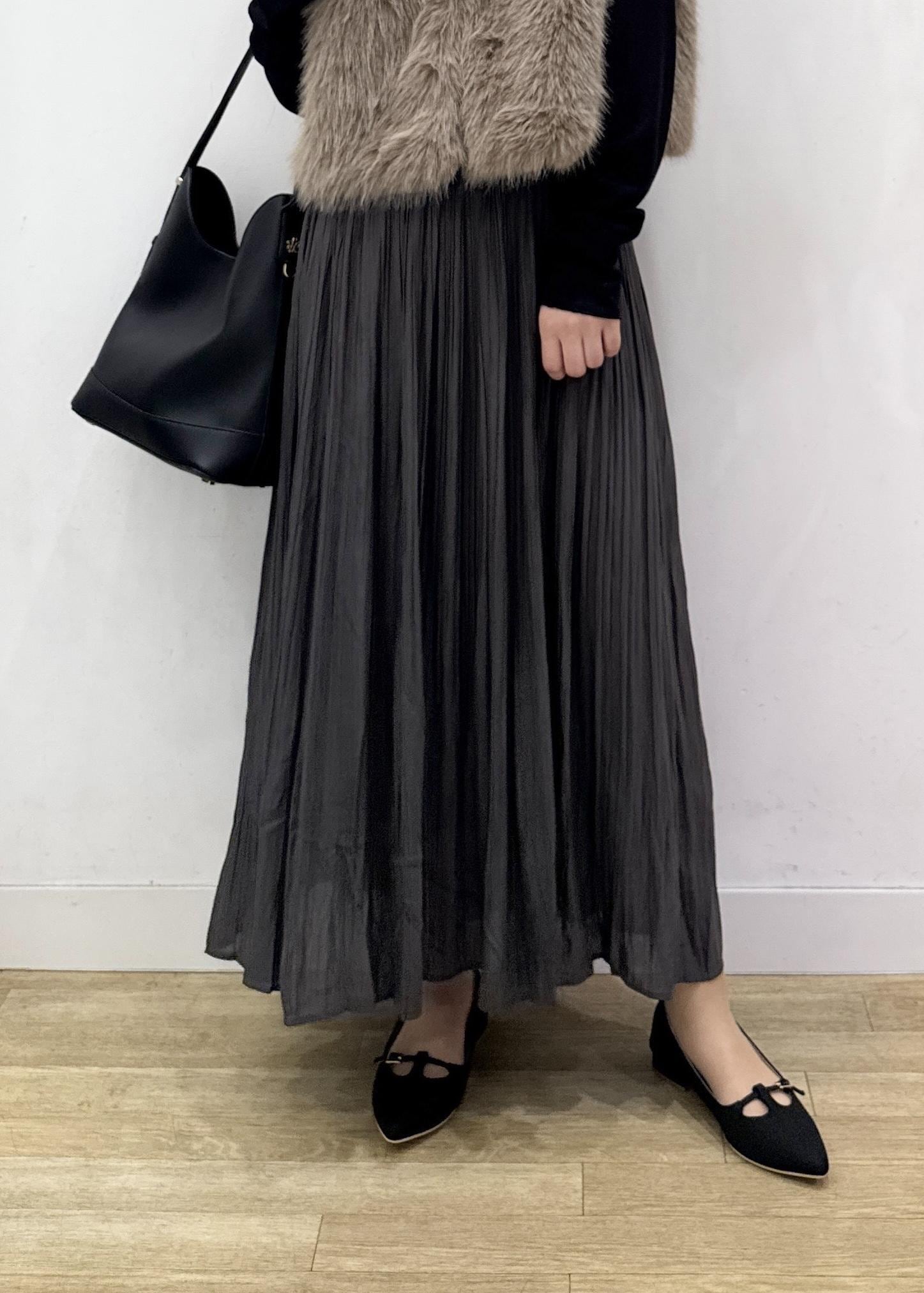 細かめのプリーツなので、広がり過ぎないゆるやかなフレアなシルエット。