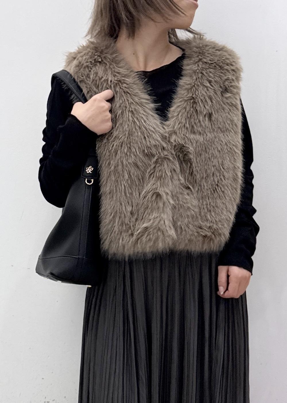 ROPÉ PICNICファーベストダークブラウン / F¥6,996レビューふわふわの柔らかい素材感で、軽くて着やすいファーベスト。