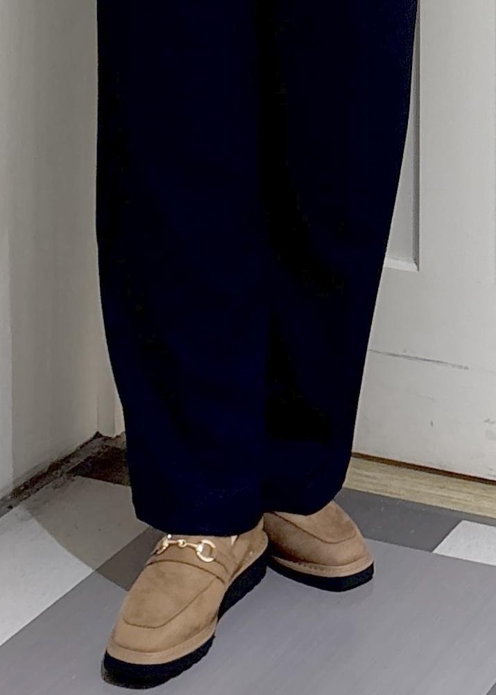 ブラウンは秋らしいフェイクスェードなので、夏まで着ていた爽やかブルーやネイビーのコーディネートも秋らしくするのにぴったり! -