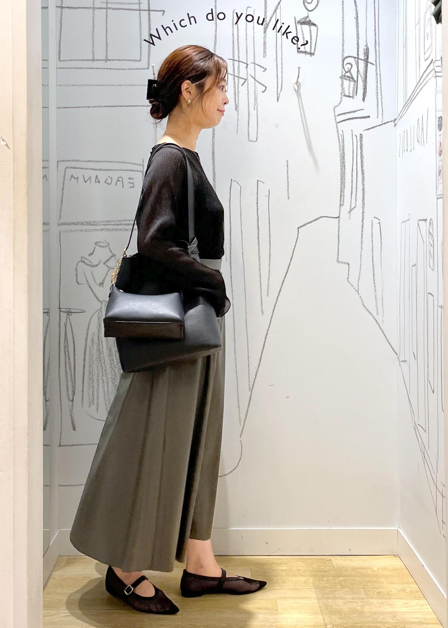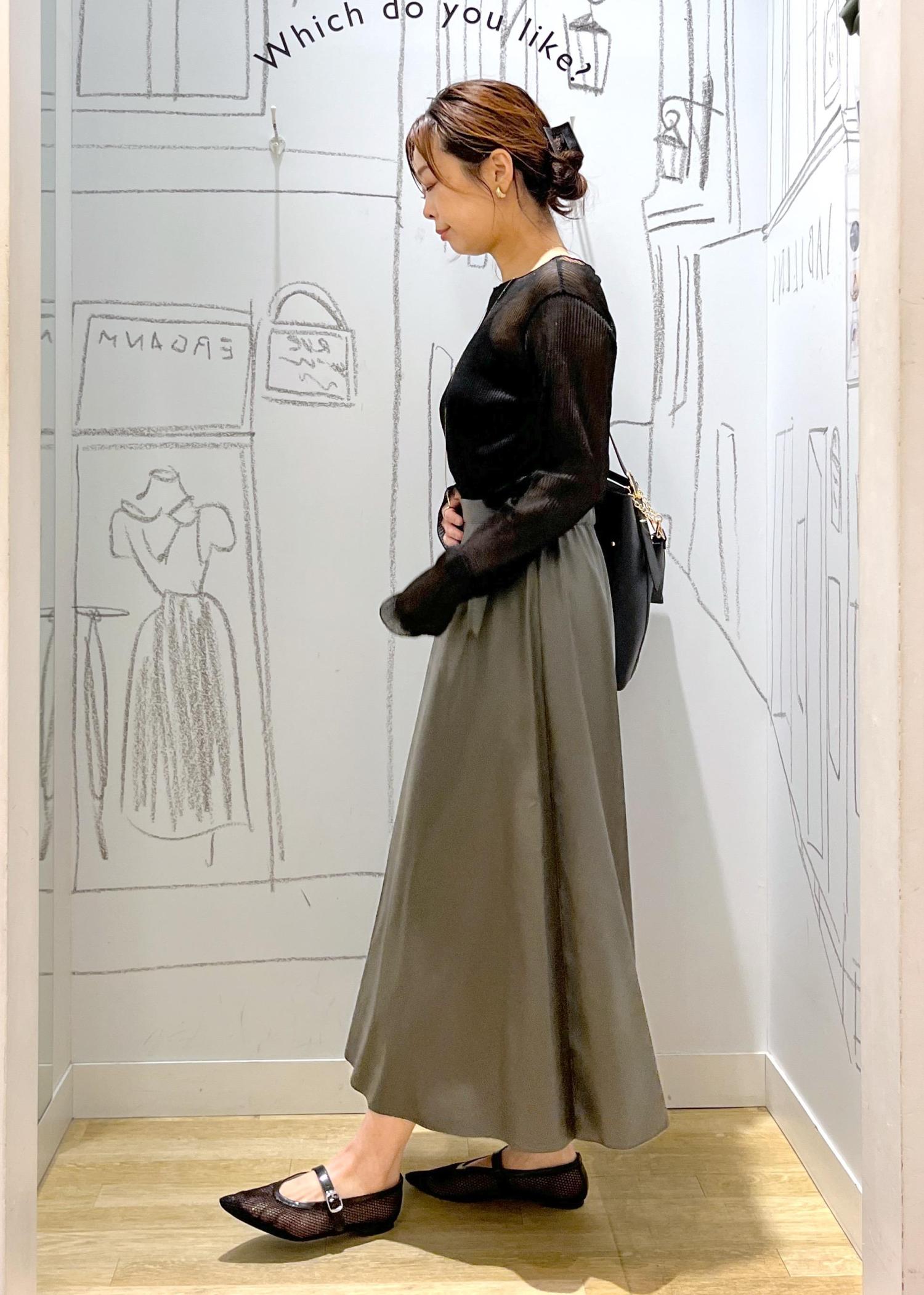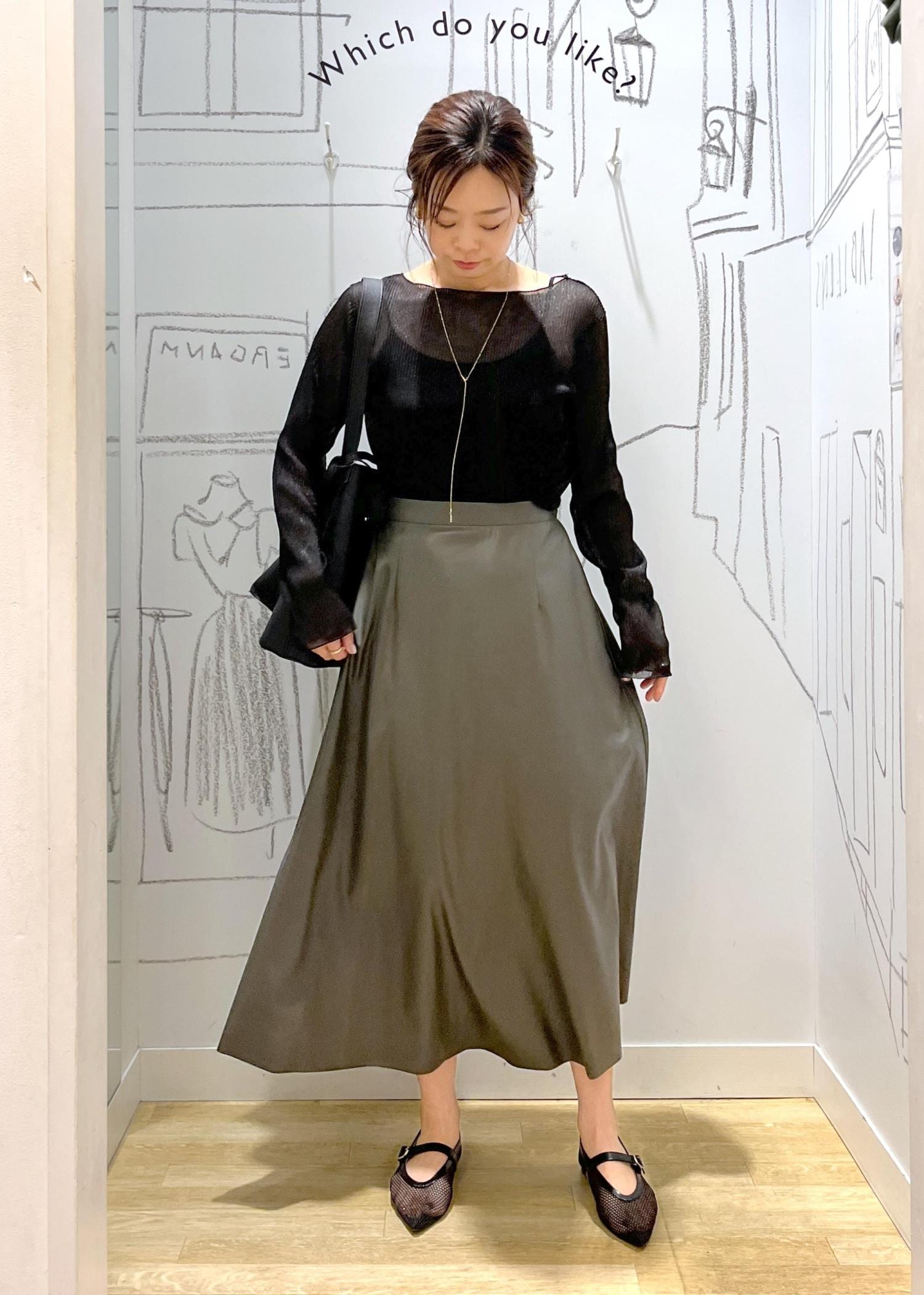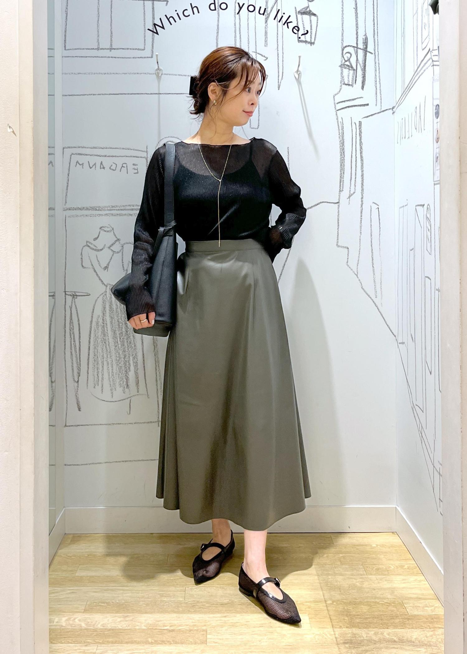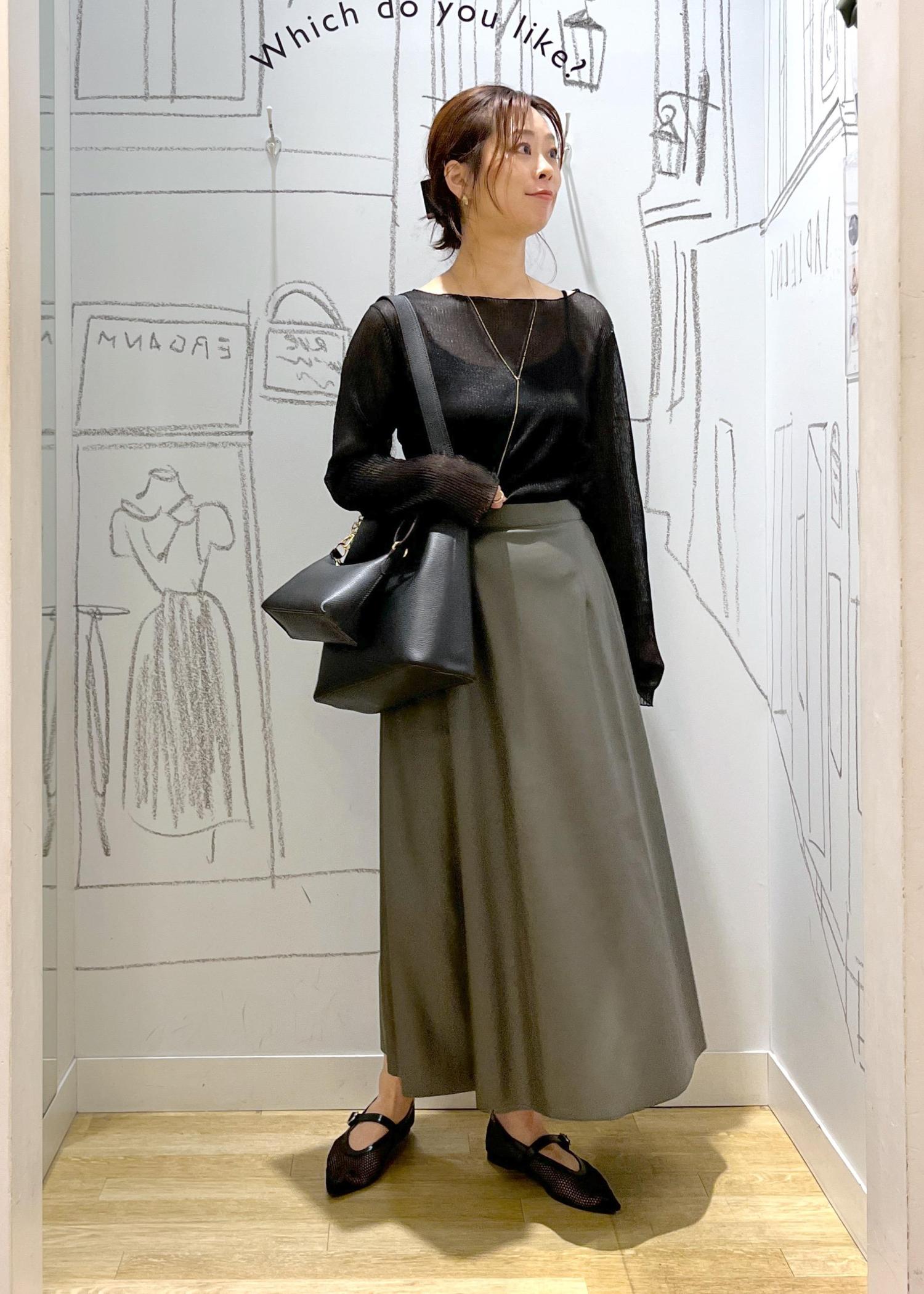 透け感のあるトップスと合わせて重たくならないようにコーディネートしました。