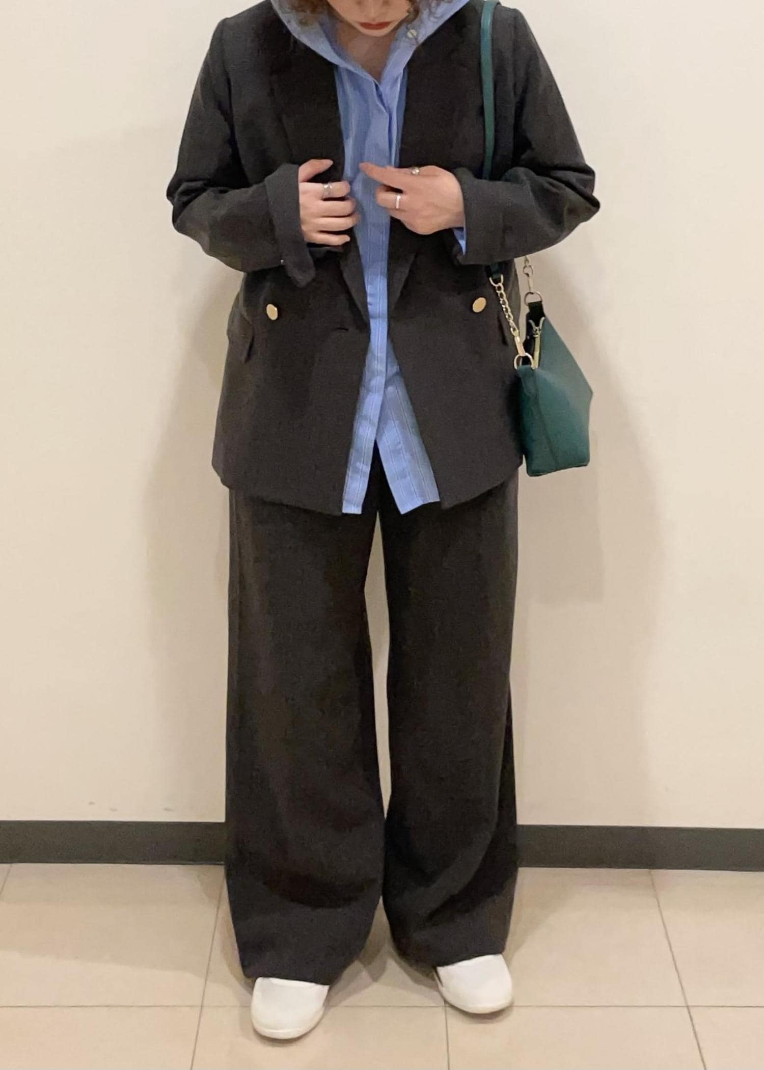 今回はシャツとスニーカーでカジュアルダウンさせましたが、ローファーでキレイにまとめても◎