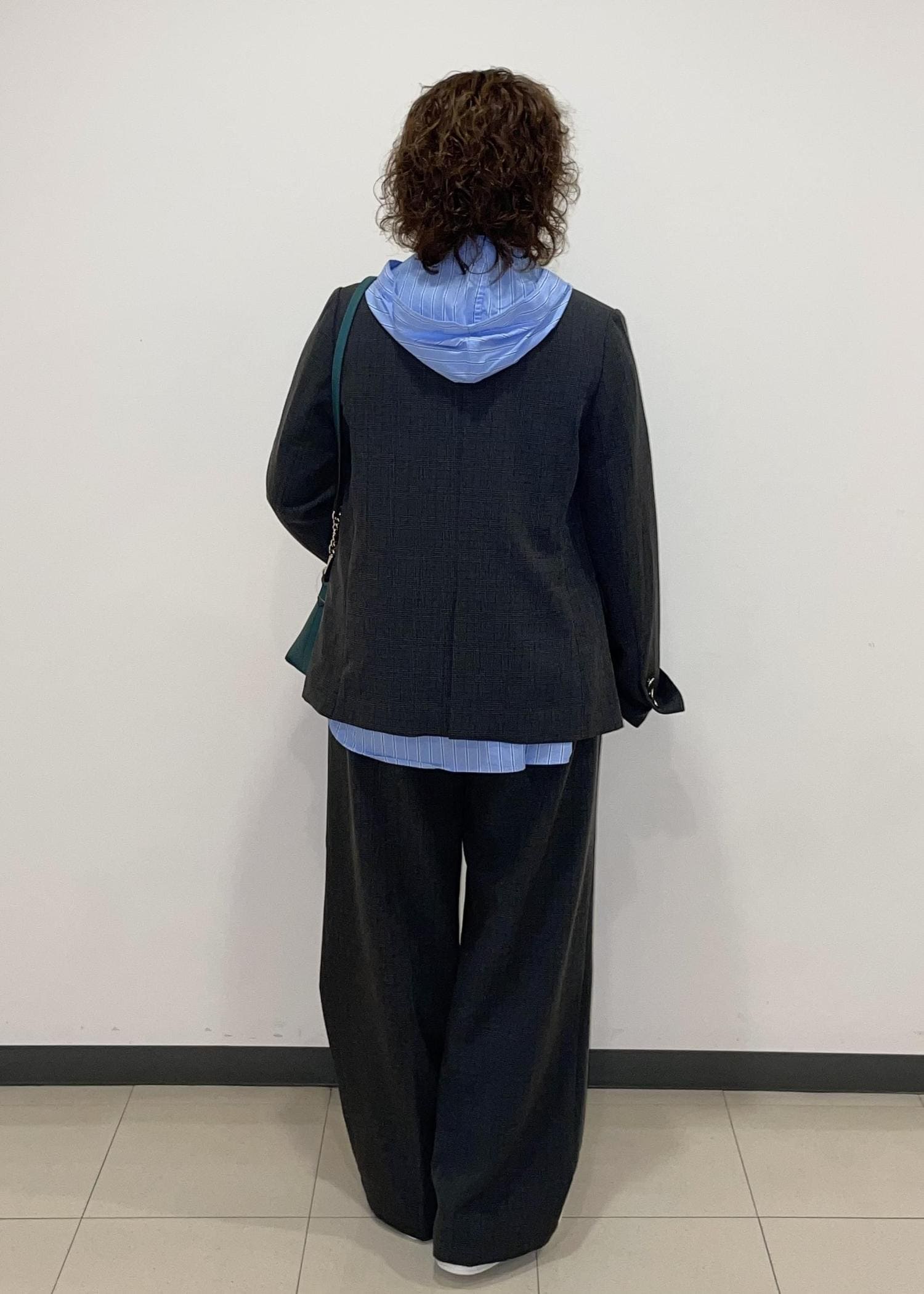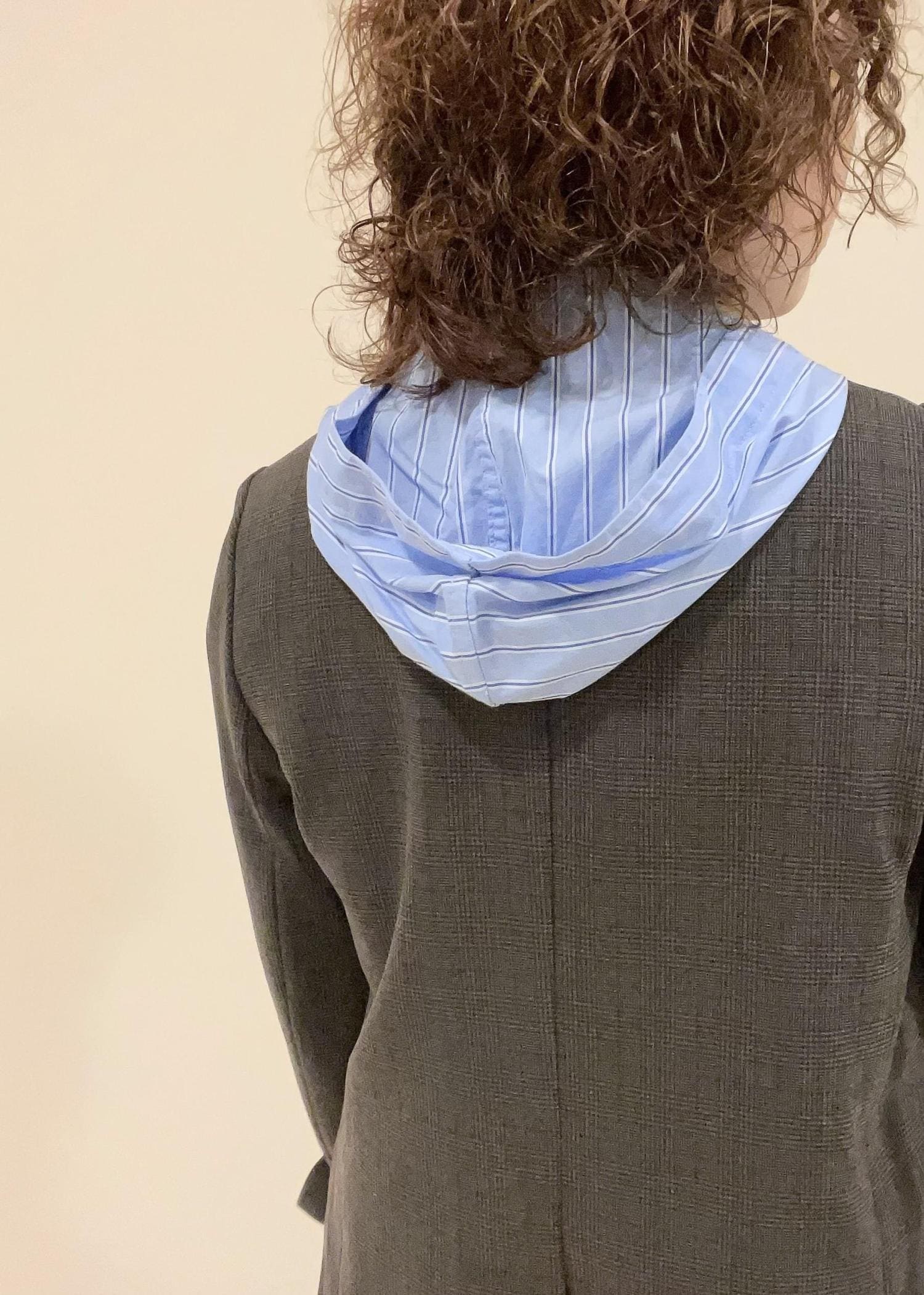 セットアップのジャケットにシャツフーディーを合わせました。
