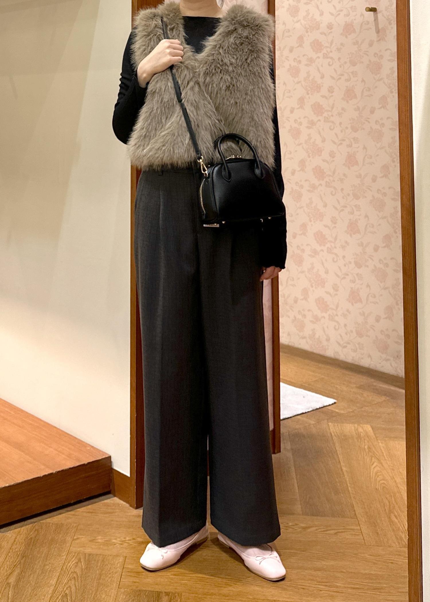 ROPÉ PICNICレディハンサムシリーズ ウールライクウエストタックセミワイドパンツ/セットアップ対応ブラック系 / M¥5,489レビュー別投稿のベージュ系セットアップではLを着用しましたが、