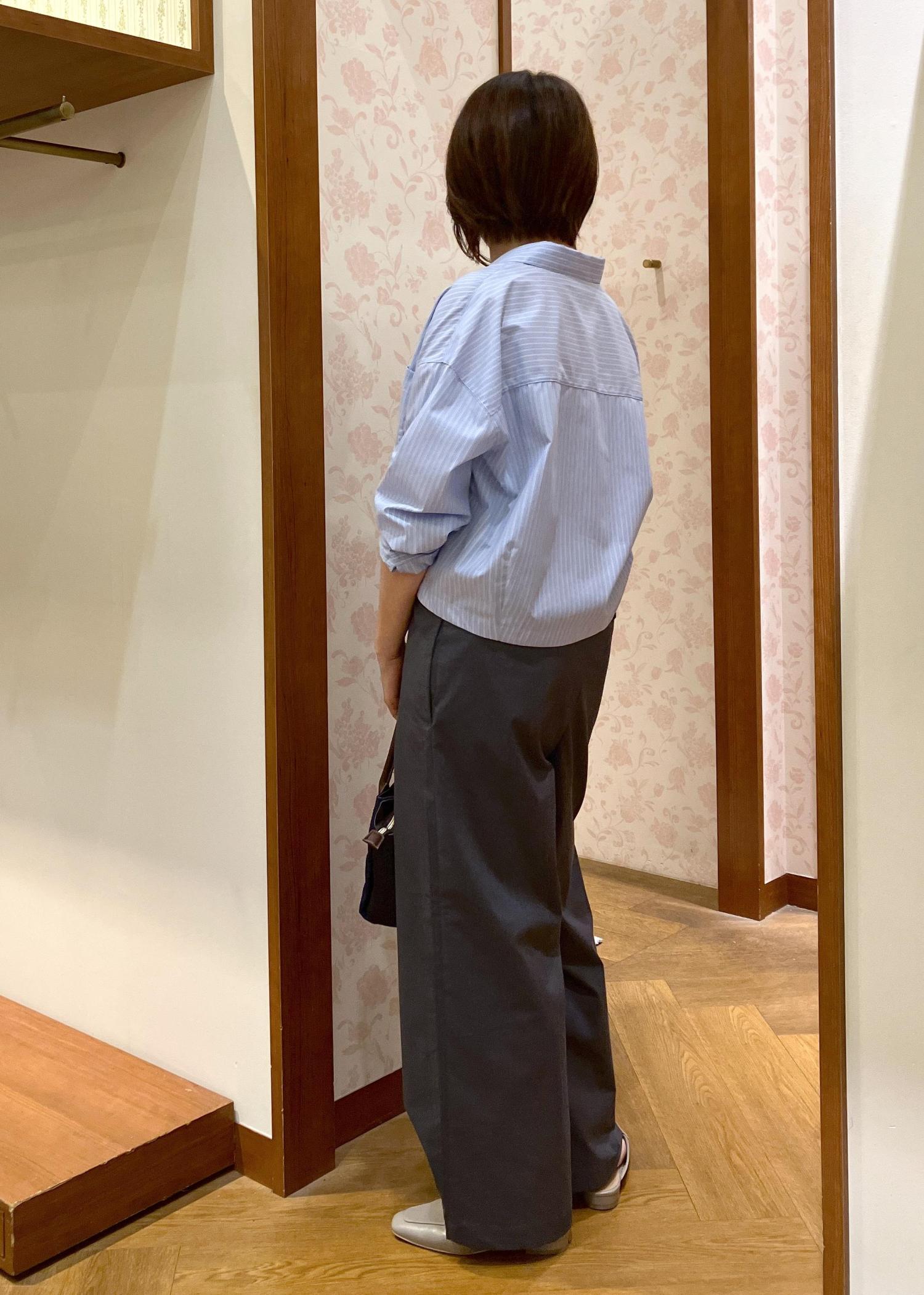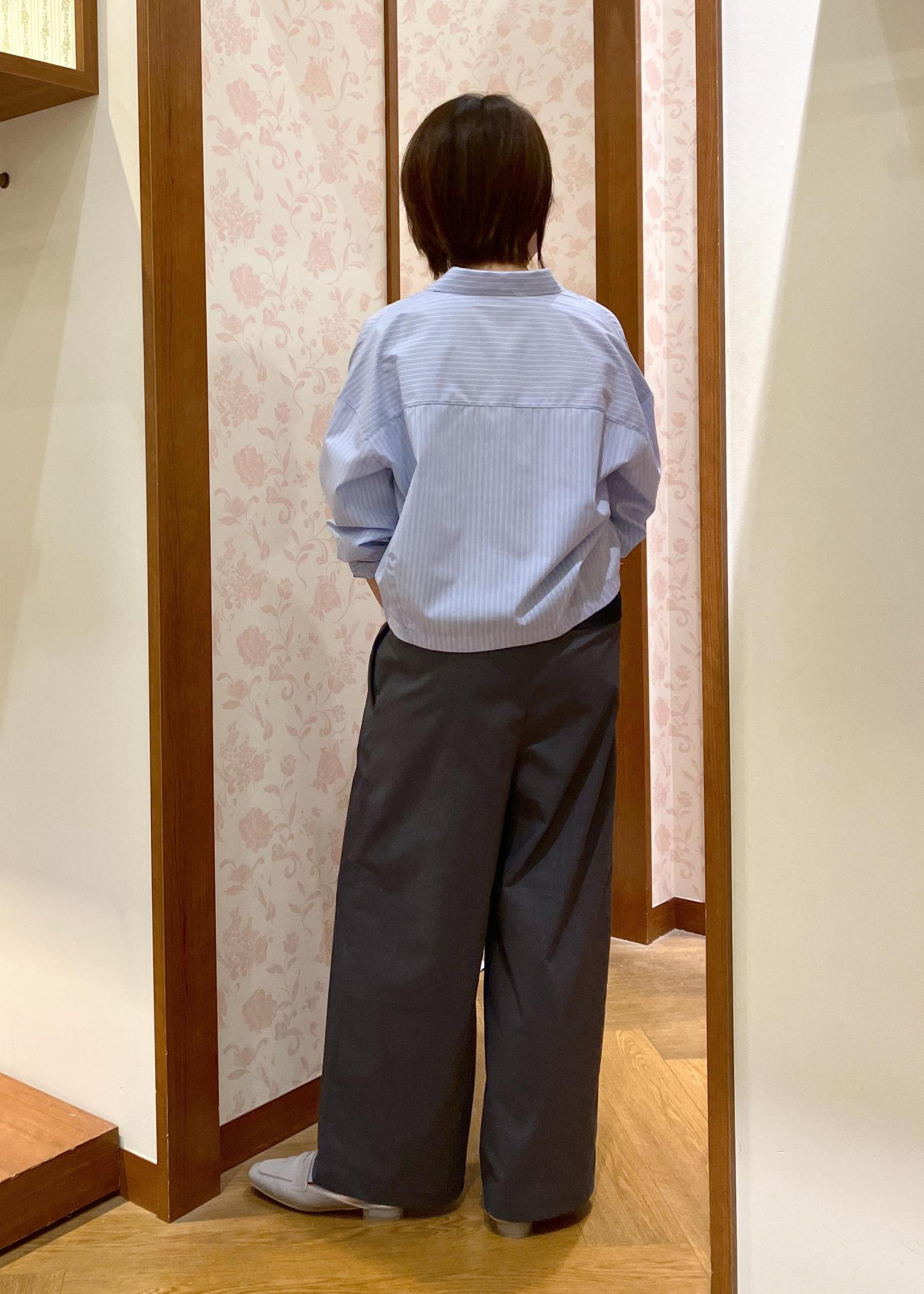 長すぎない着丈で合わせやすい、日々の取り扱いがしやすいシャツです。