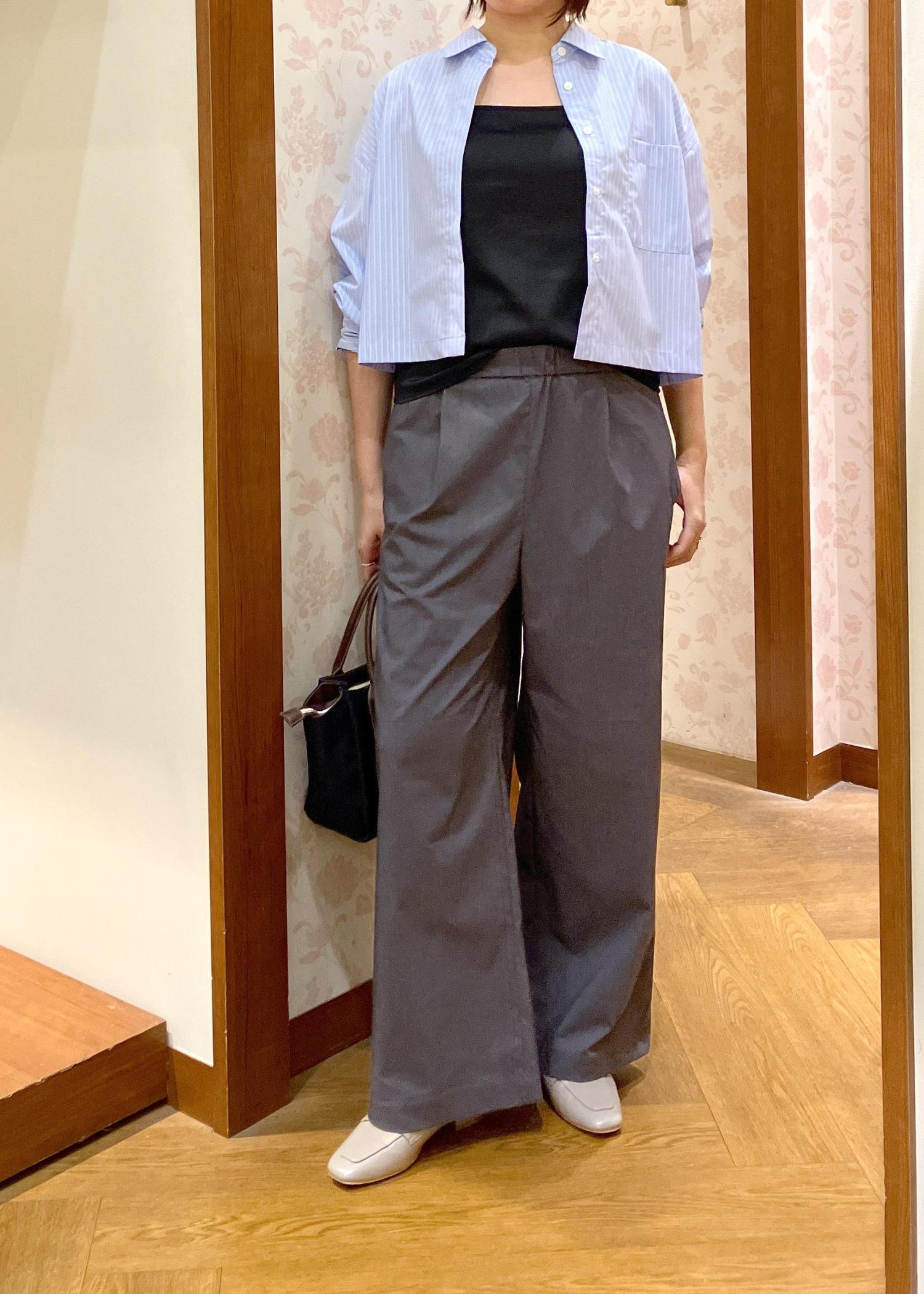 ROPÉ PICNICキレイ目イージーワイドパンツ/UVカットチャコール / L¥3,993レビュー少し腰に落として着用していますが、丈は長めに感じたので高身長の方にもおすすめです。