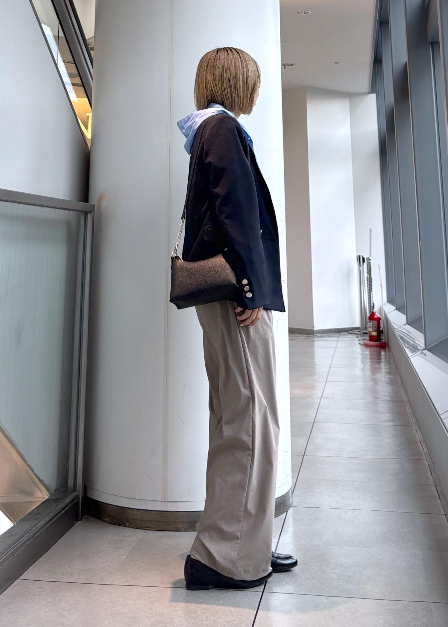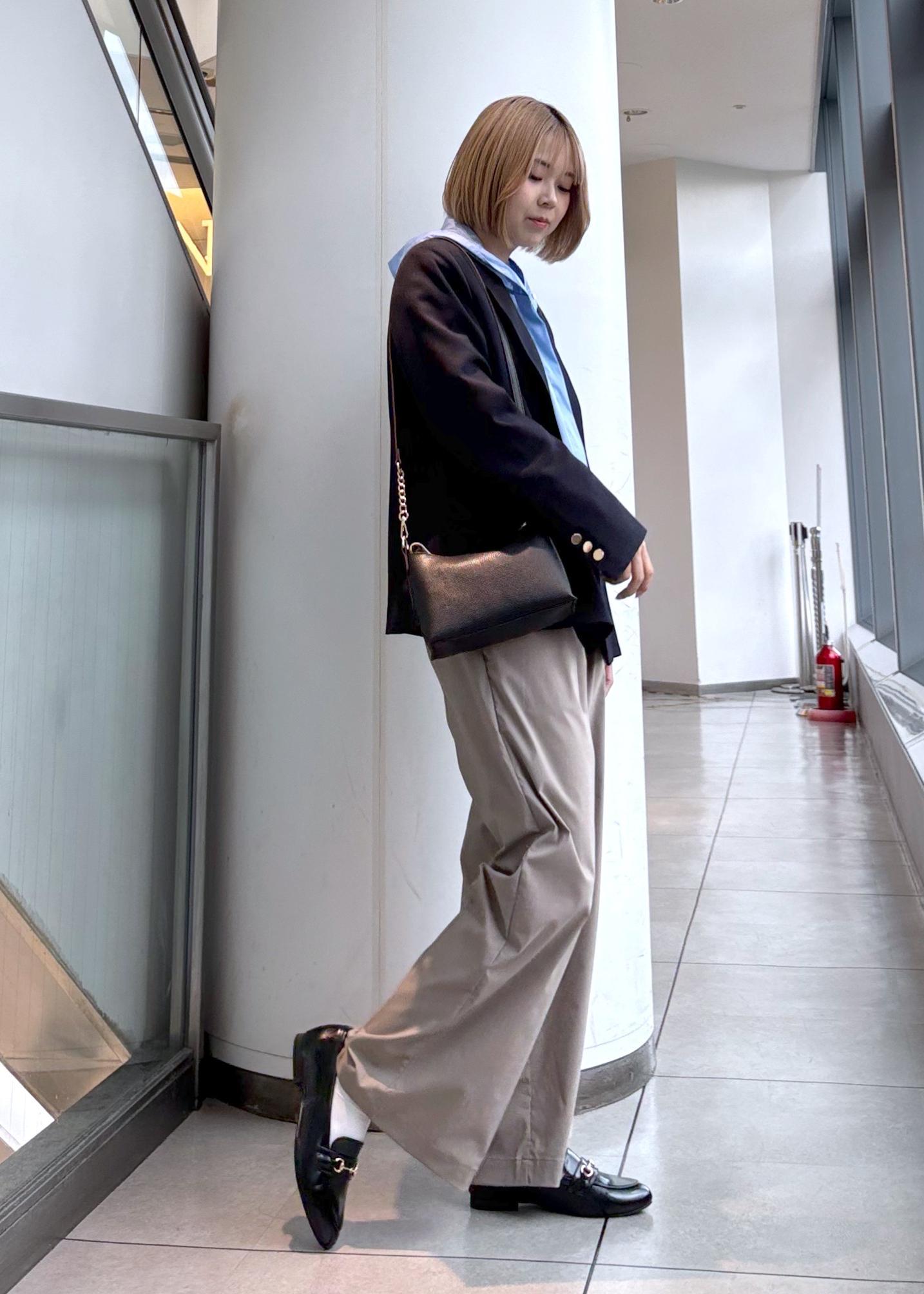 シャツのブルーとジャケットのネイビーの組み合わせがお気に入りのコーデです☺︎