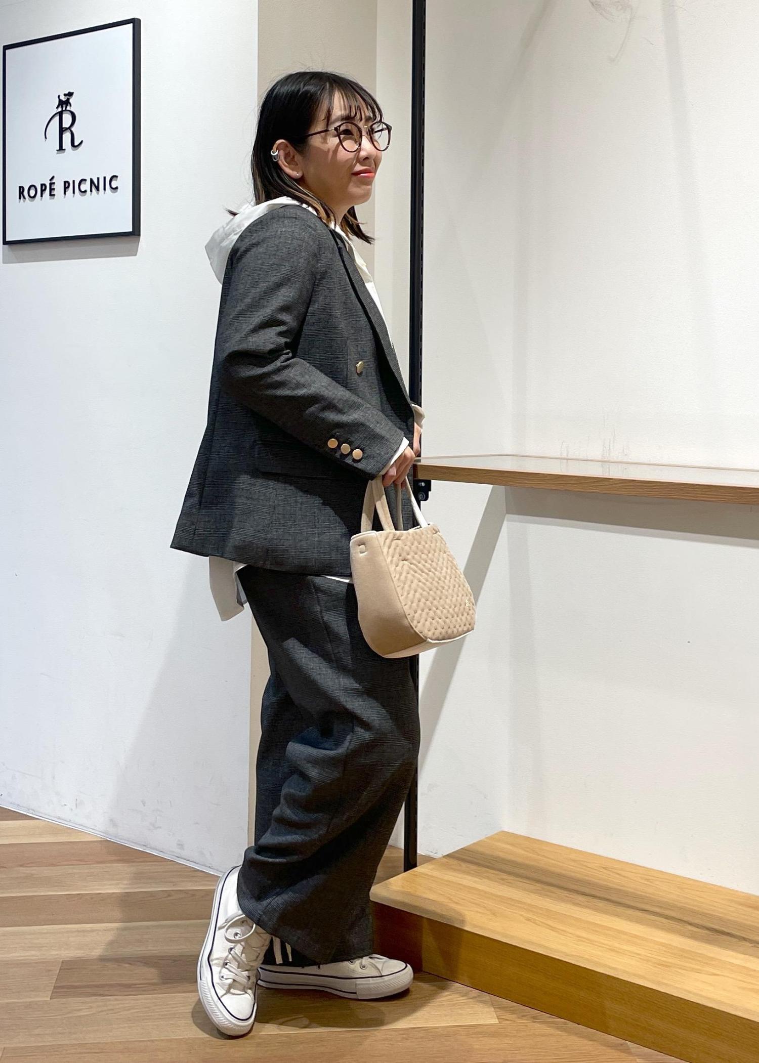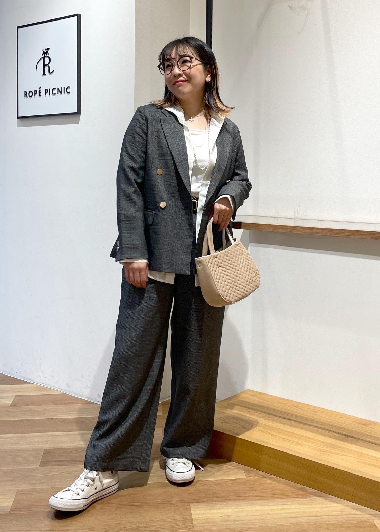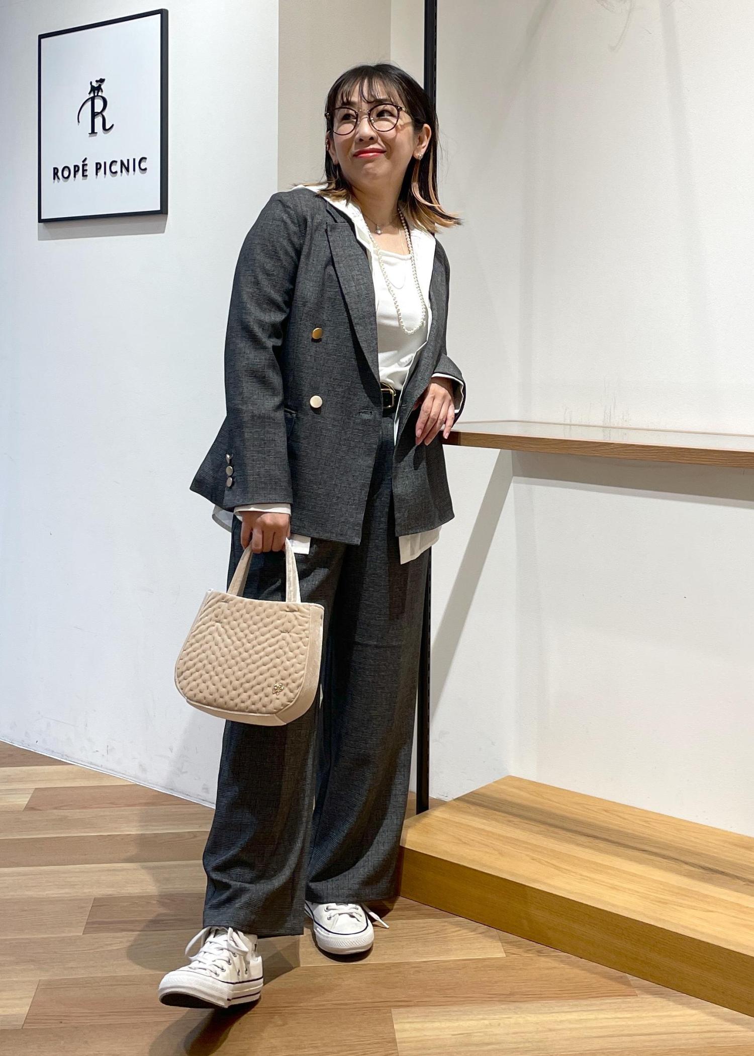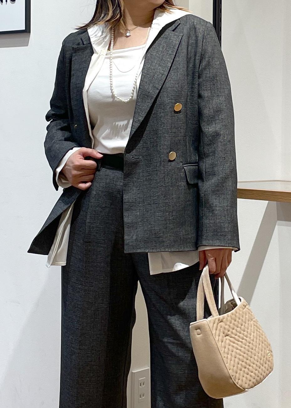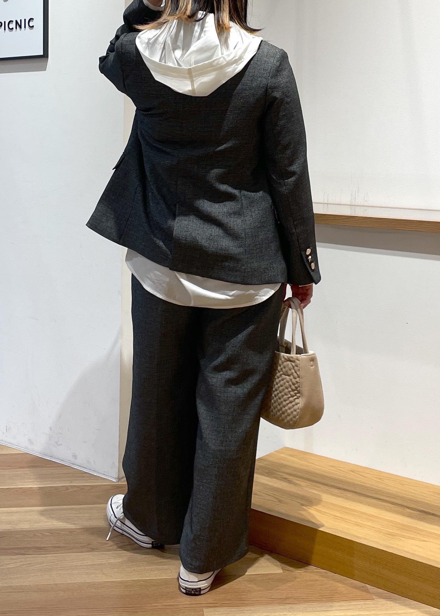 大人気の金ボタンジャケットの小柄さんサイズです。148センチの私にも袖丈、着丈がピッタリです○パンツも小柄さんサイズでセットアップスタイルです。