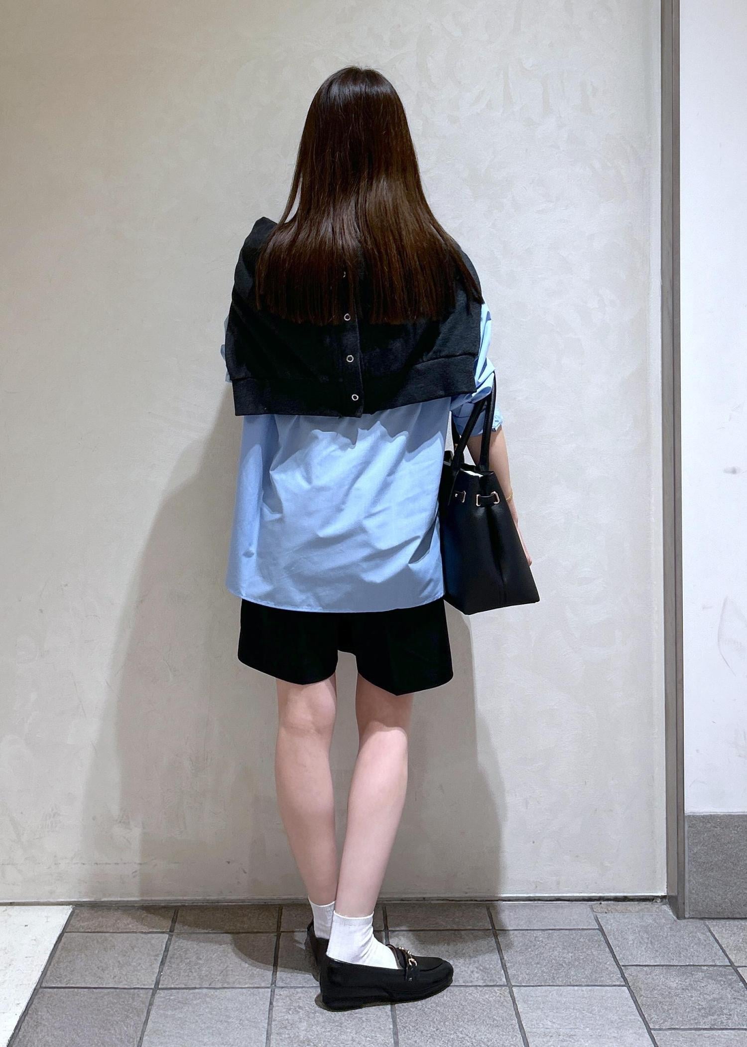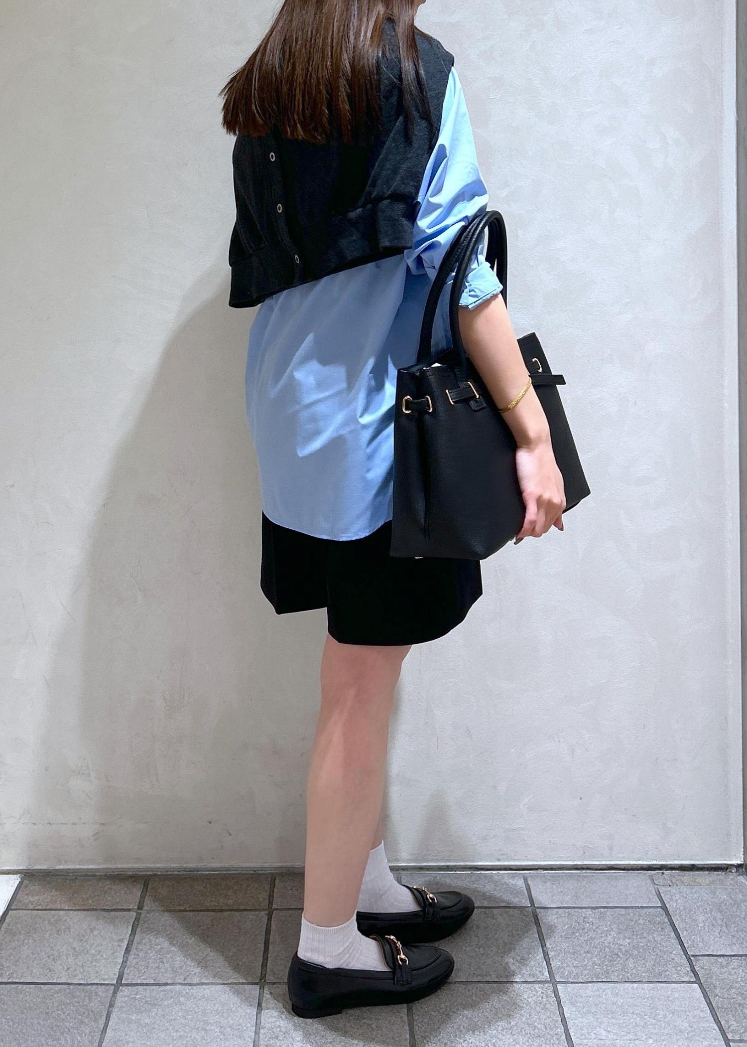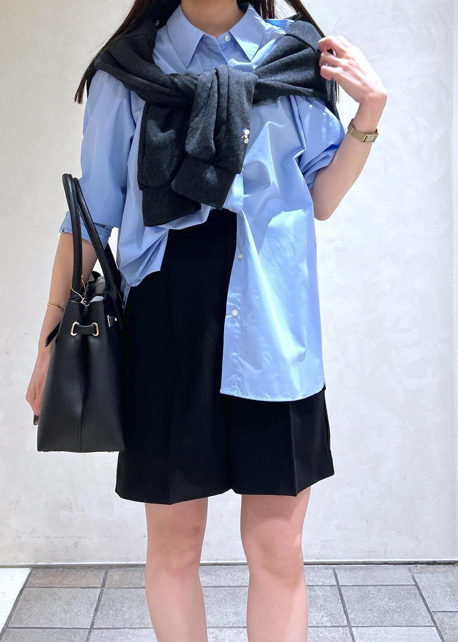 ブルーのシャツにハーフパンツで大人っぽカジュアルなスタイリングにしました。