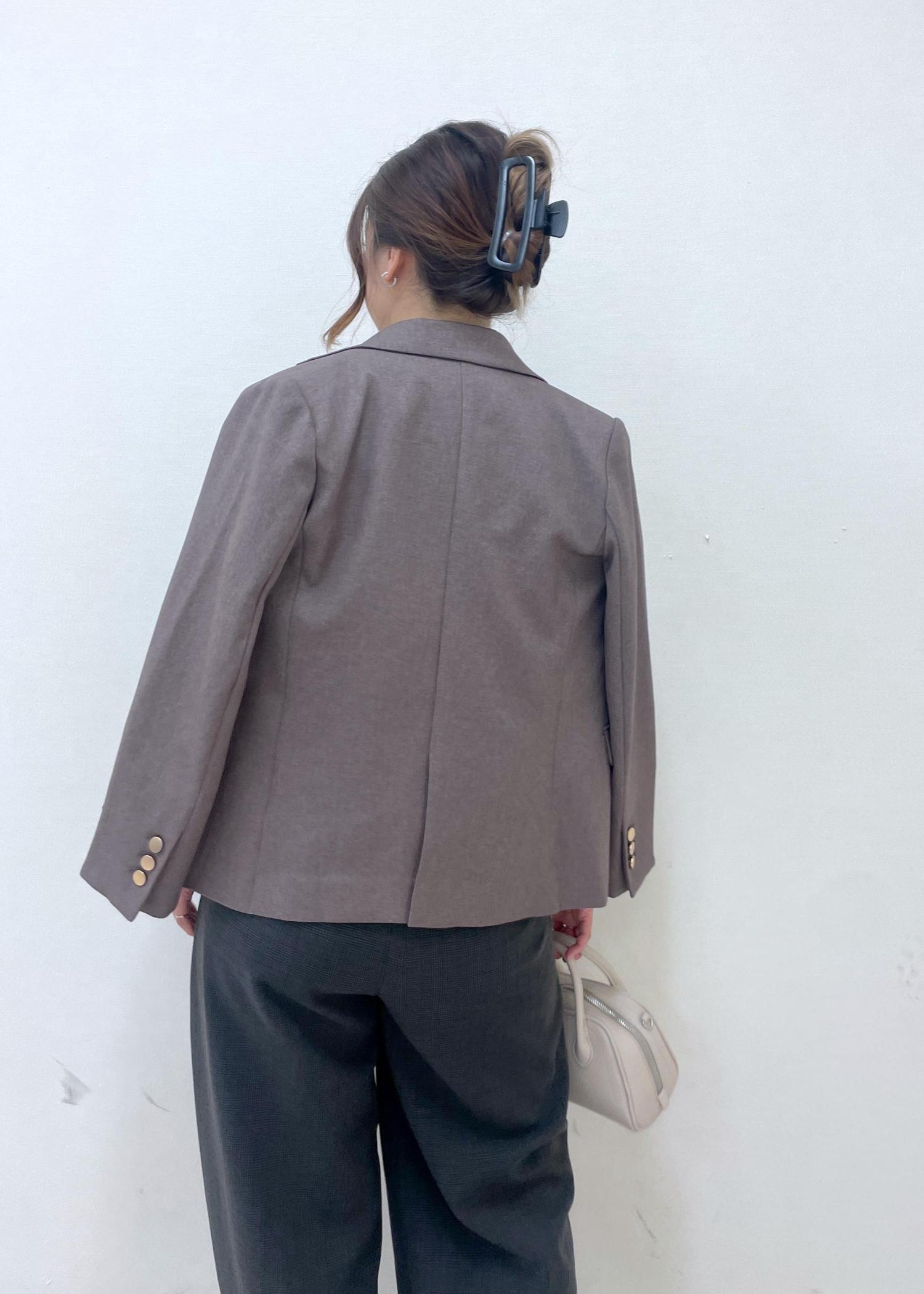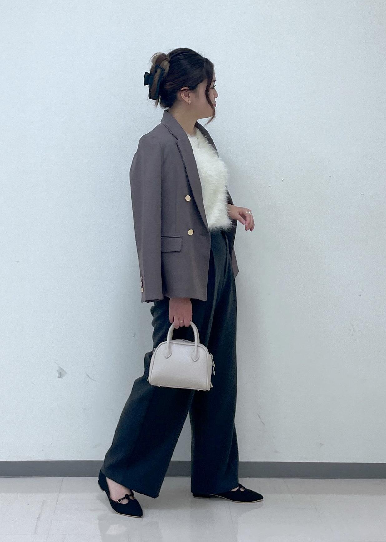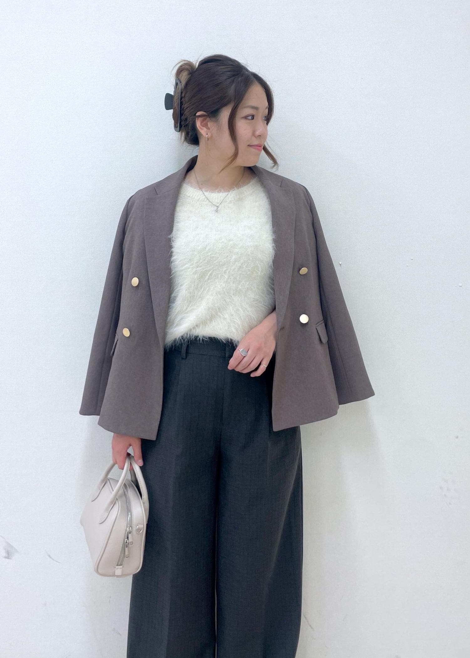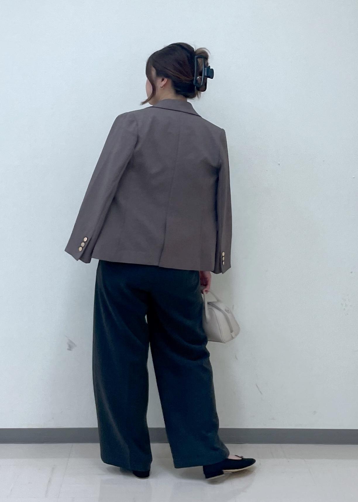 女性らしい柔らかさは残したかったので、ジャケットはブラウンを合わせました◎