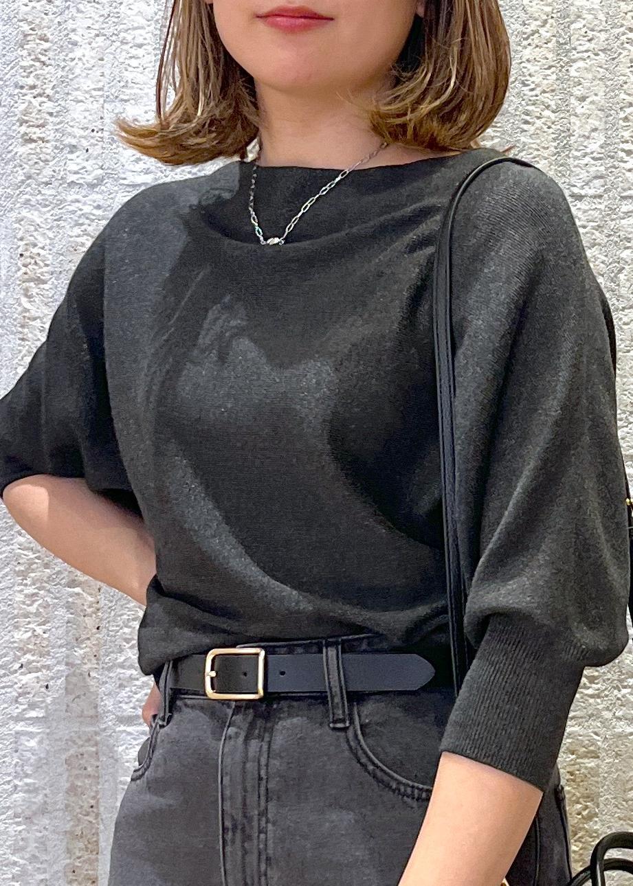 ROPÉ PICNICラメ混ドルマン7分袖ニットチャコール / F¥3,993レビュー濃いめのチャコールグレーの色味。ほんのりラメ入りで華やかさもあります。
