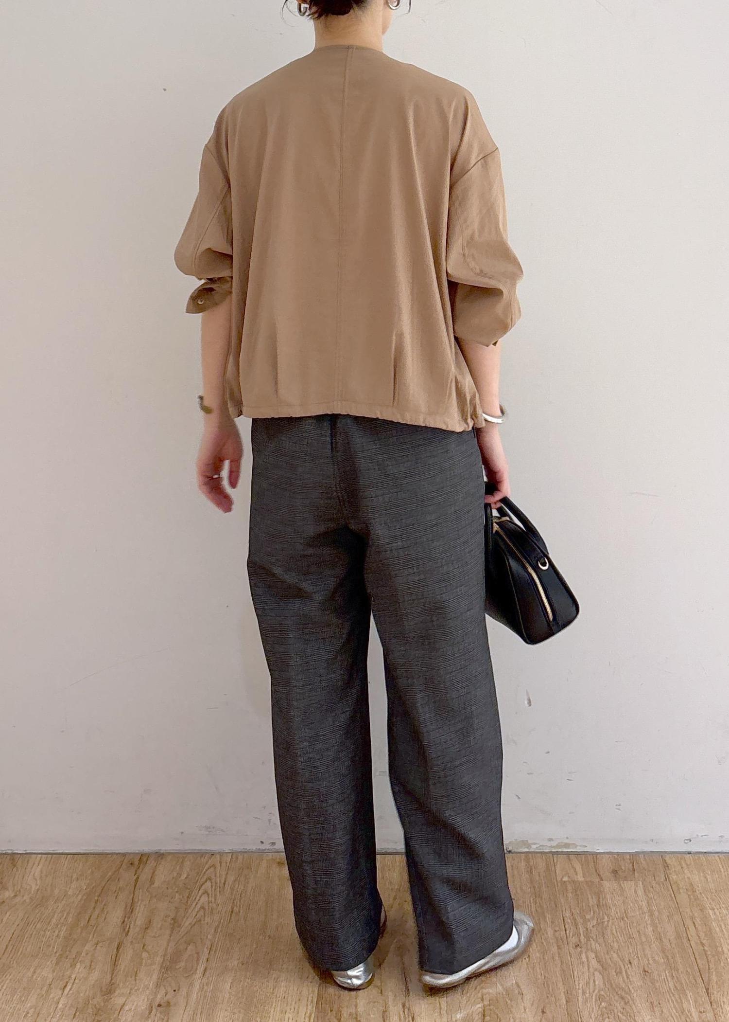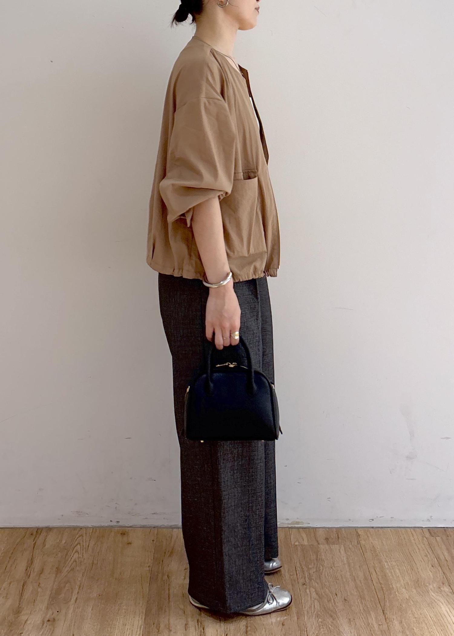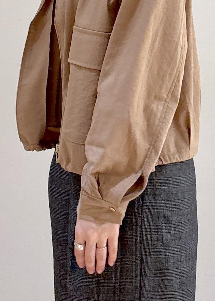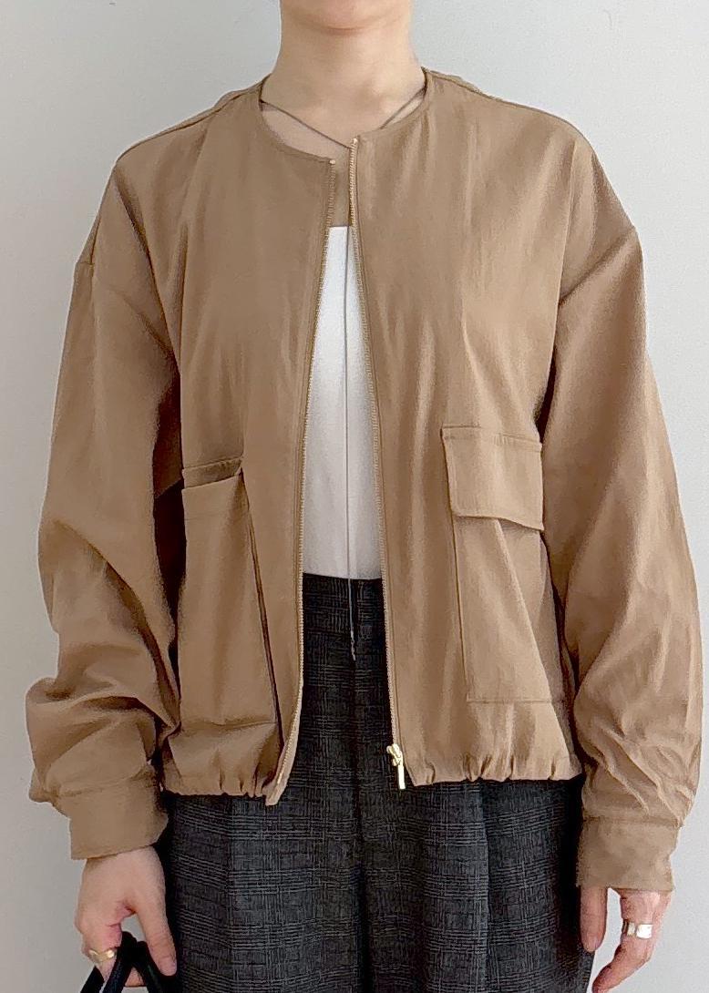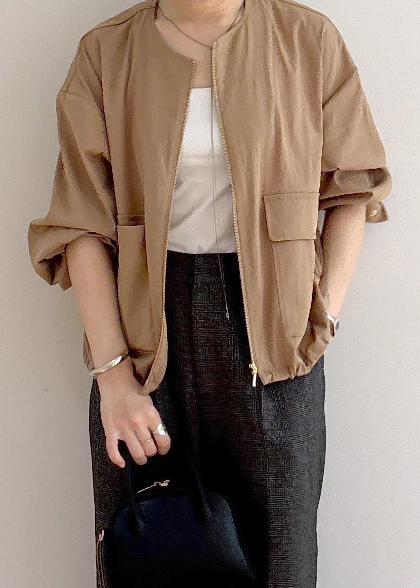 薄手で羽織りやすいブルゾンを使用したコーディネートです。ベーシックで丈も長すぎず短すぎずなので、様々なボトムと相性◎