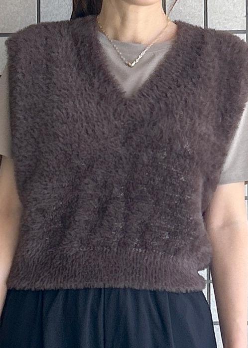 ROPÉ PICNICショートフェザーニットベストダークブラウン / F¥3,993レビューコンパクトなサイズ感で、すっきりお召しいただけるファーベストです。