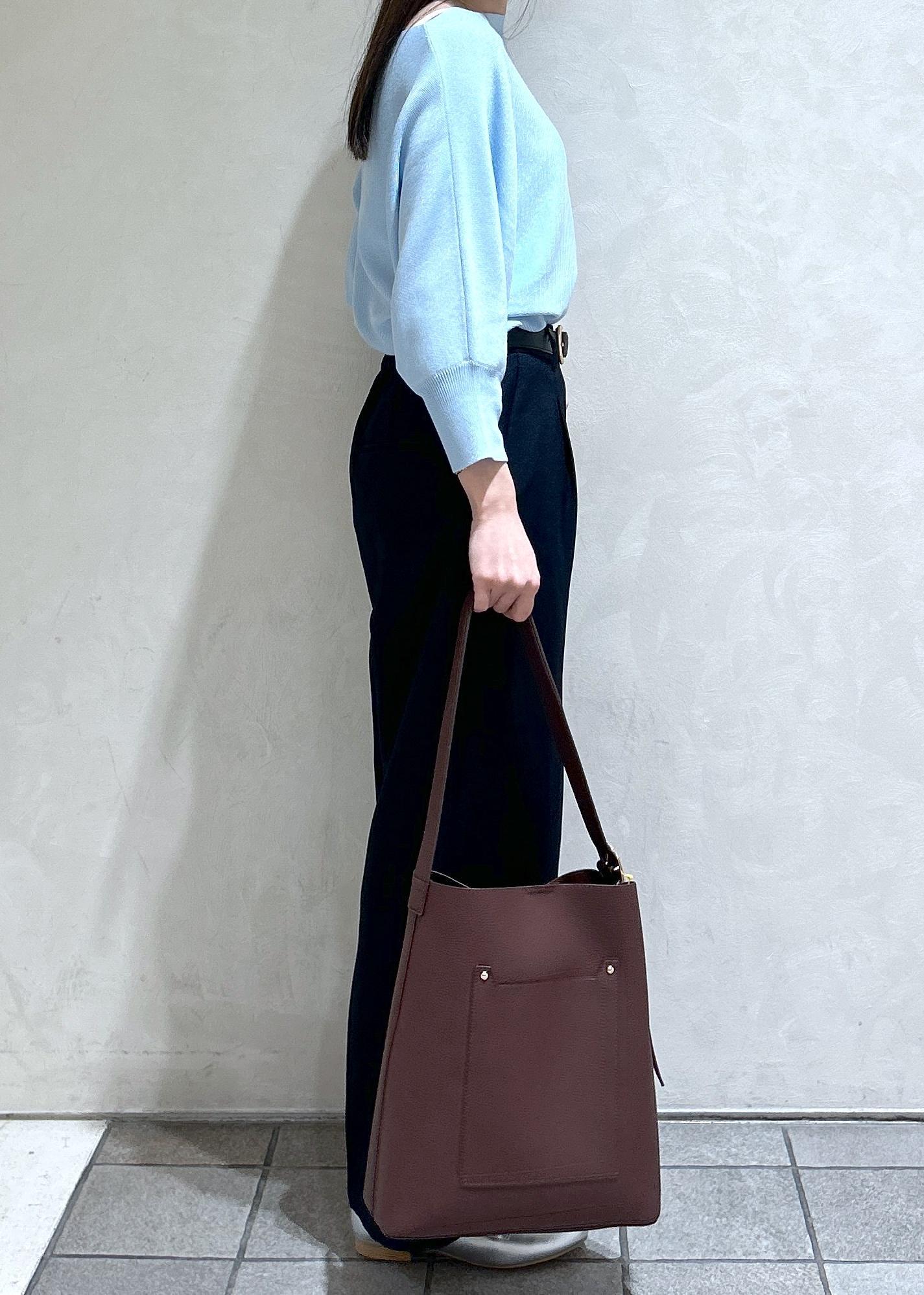 A4サイズが入る大きさなので通勤にも使いやすいです。ショルダーが長めにので肩に掛けやすくボリューム感がないので身体にフィットして持ちやすいです。