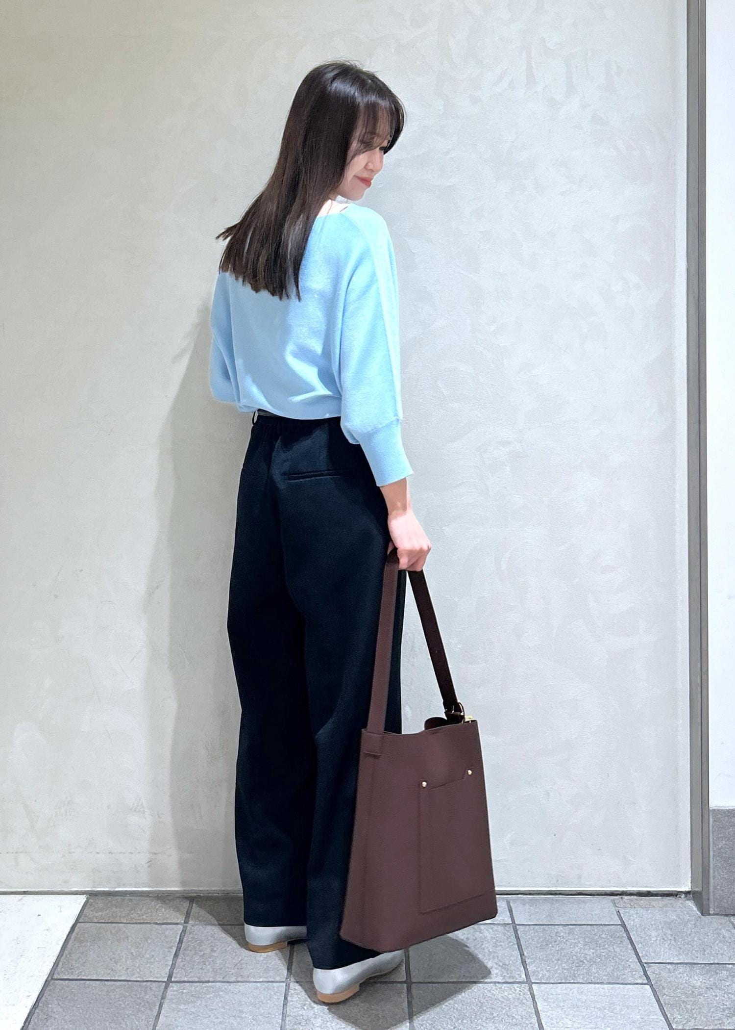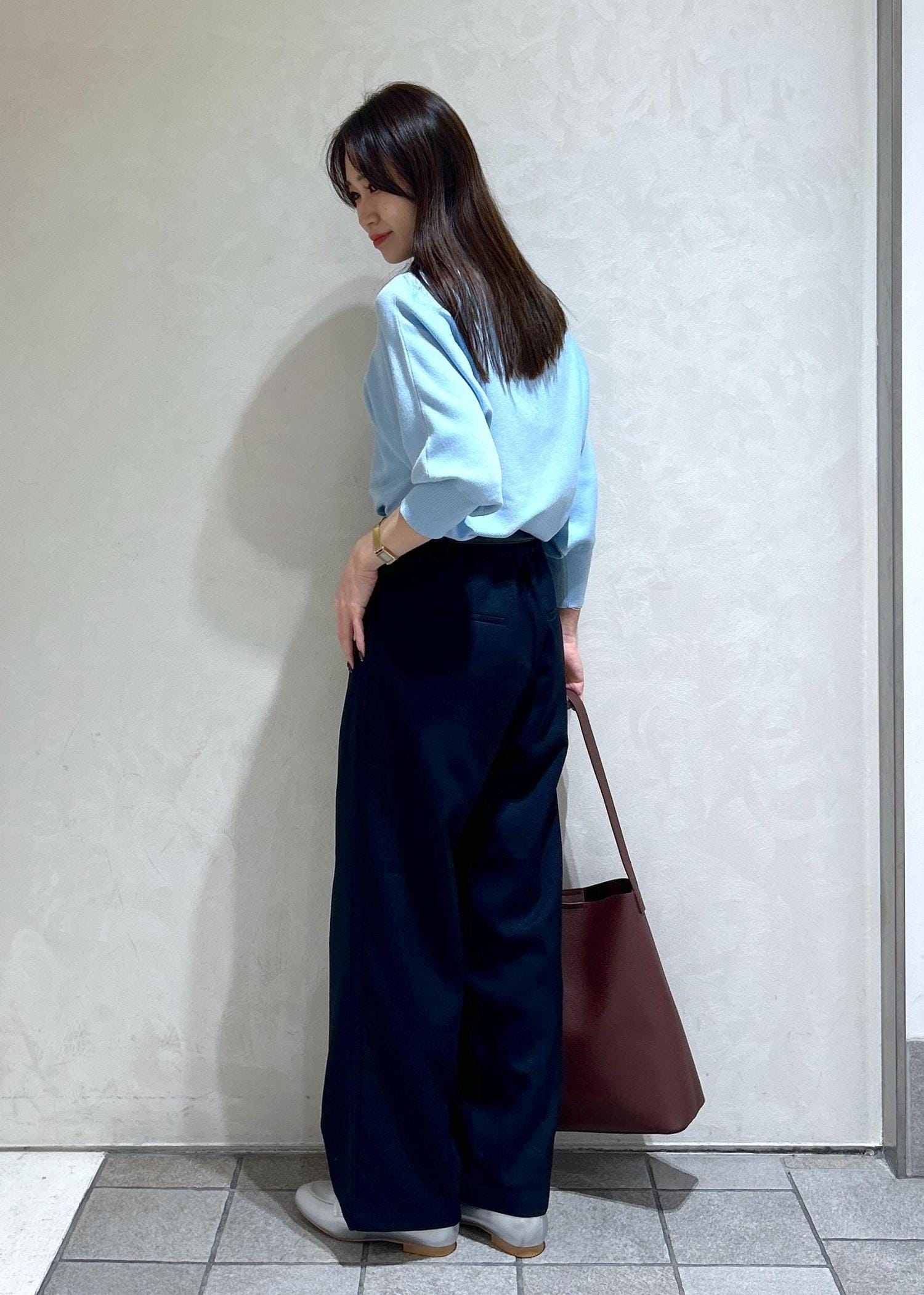 ブルーのニットにネイビーのパンツで秋のお仕事スタイルにしました。
