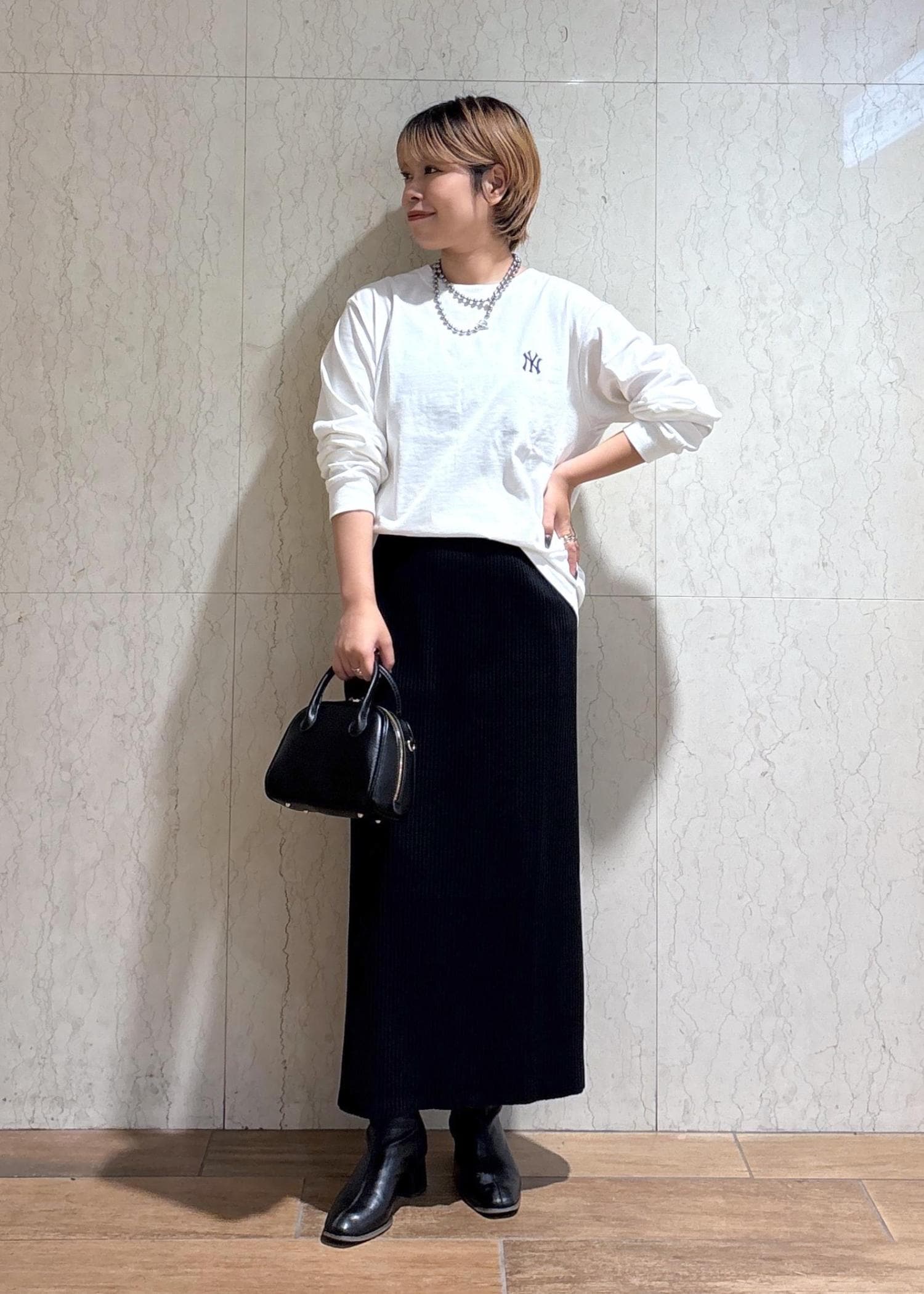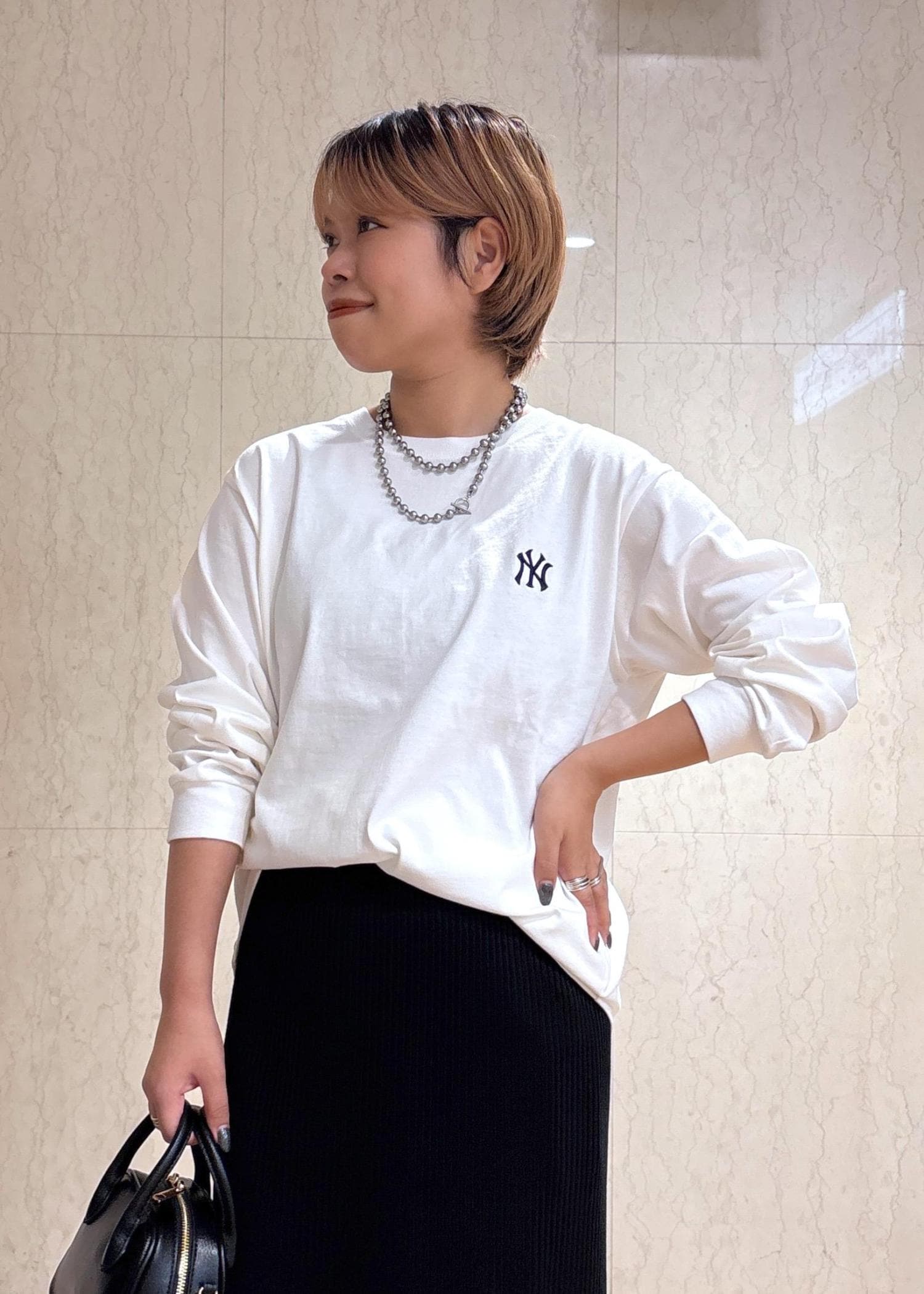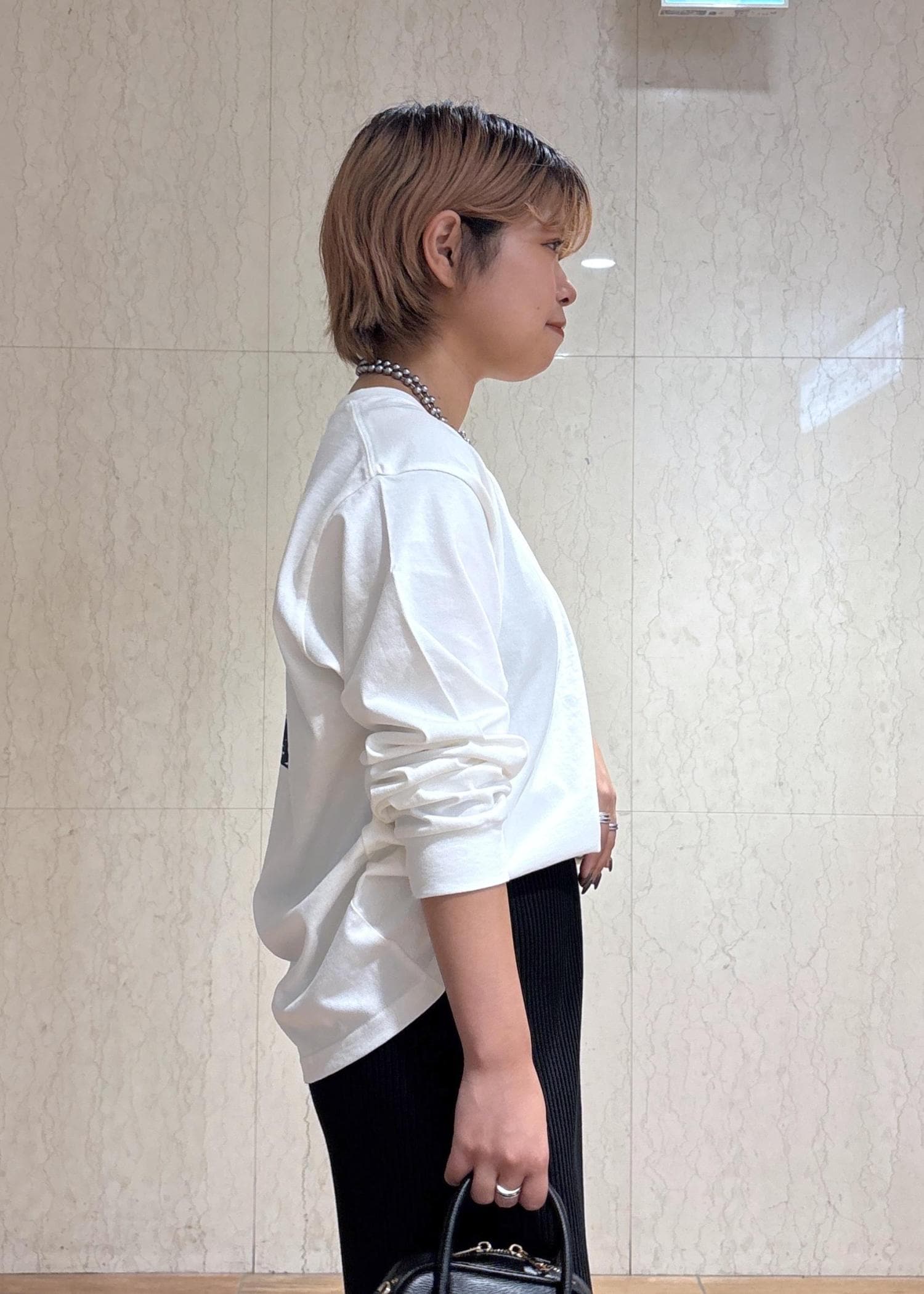 今回はオーバーサイズのロンTを主役にコーディネートを組みました。