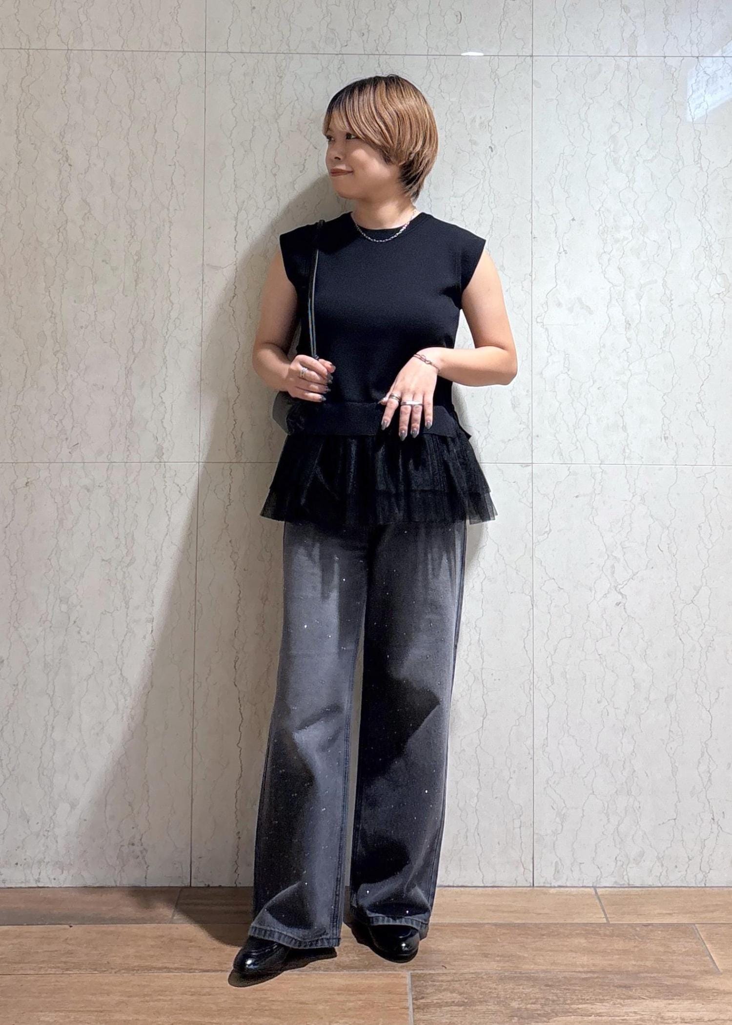 今回はキレイめなトップスを主役にコーディネートを組みました。キレイめすぎるよりは、少しカジュアルな雰囲気が好きなので、あえてデニムを合わせたことがポイントです。