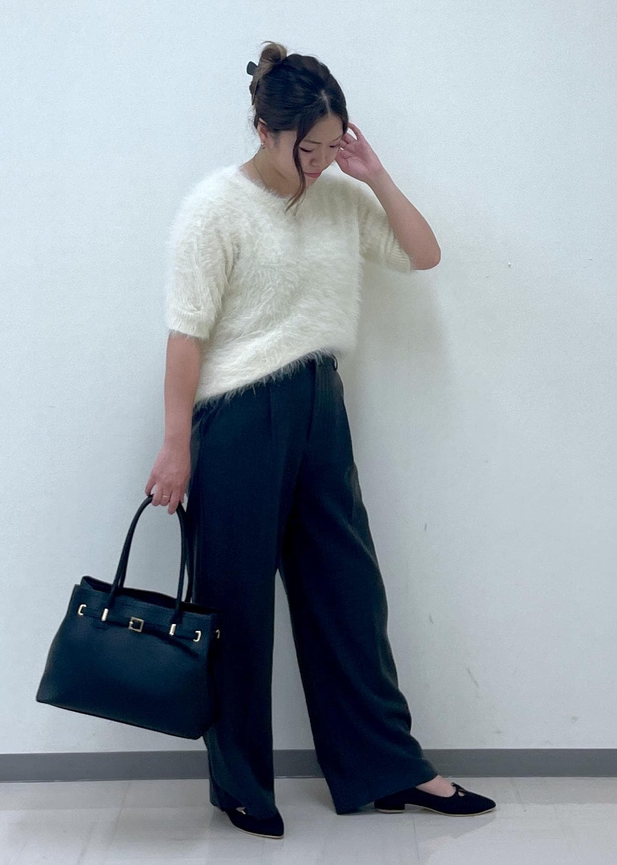 シャギーニットのモノトーンコーデ