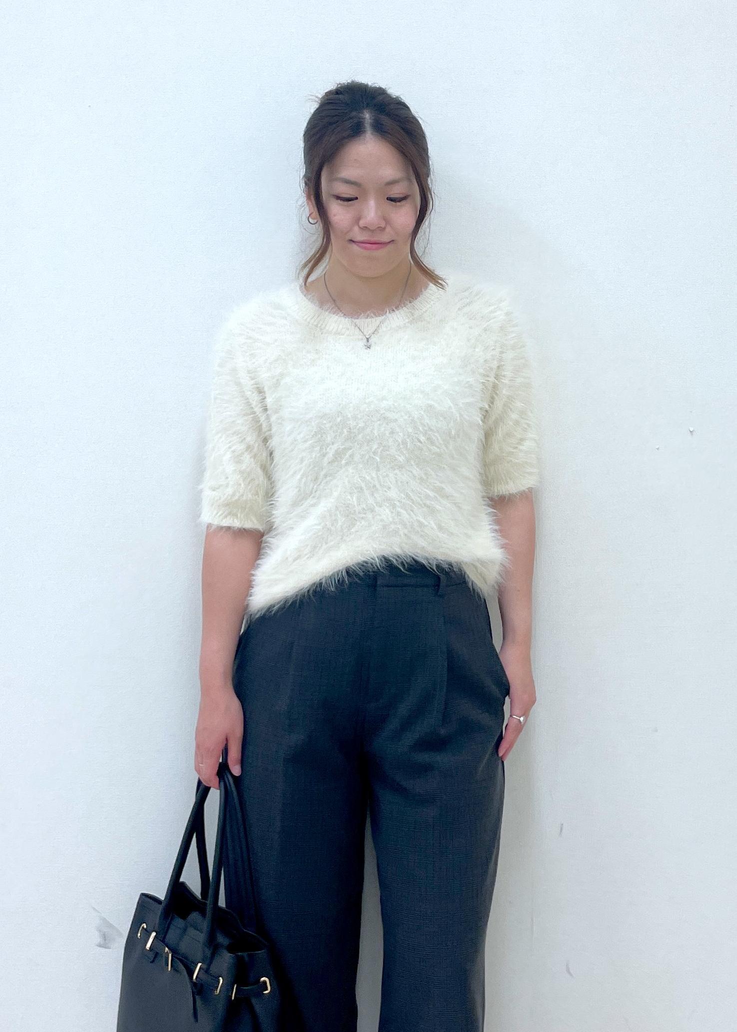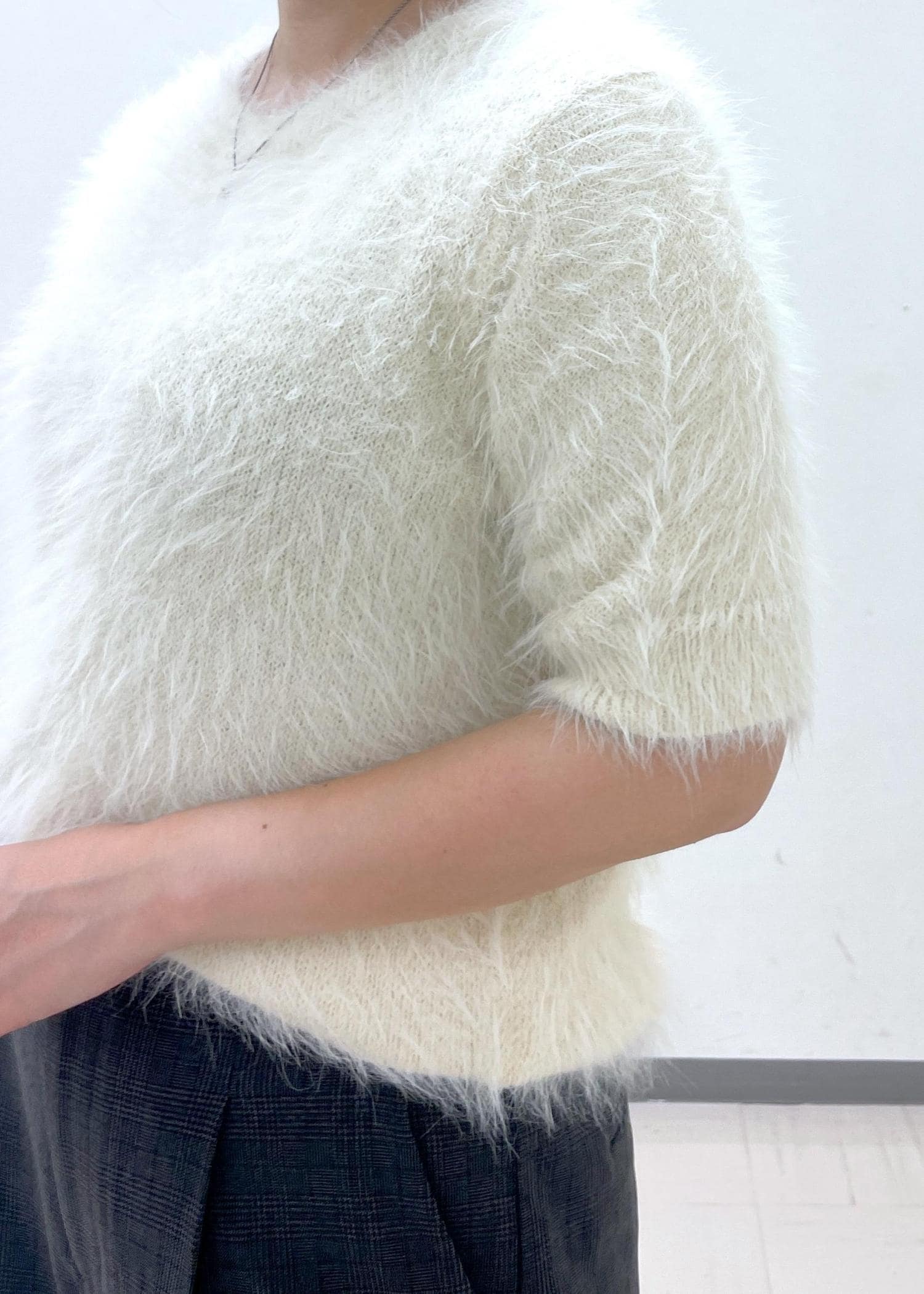 シャギーニットハーフスリーブプルオーバー