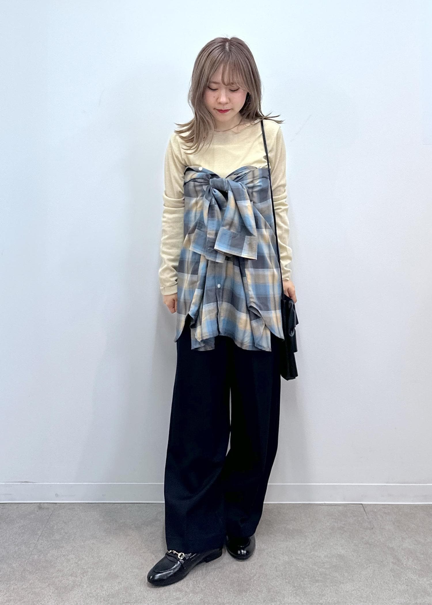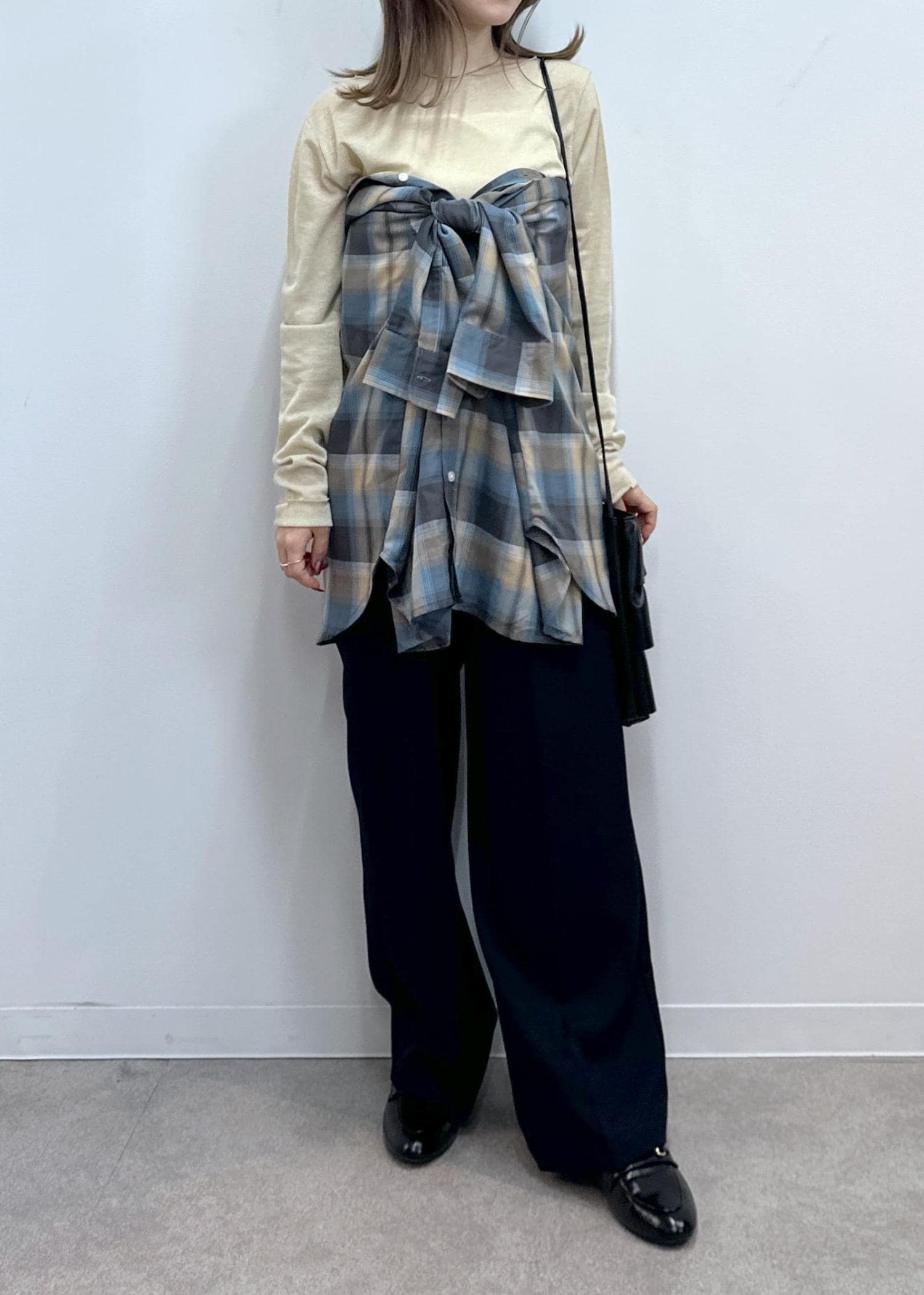 合わせているチェックシャツは、ルミネエスト店限定アイテムです!