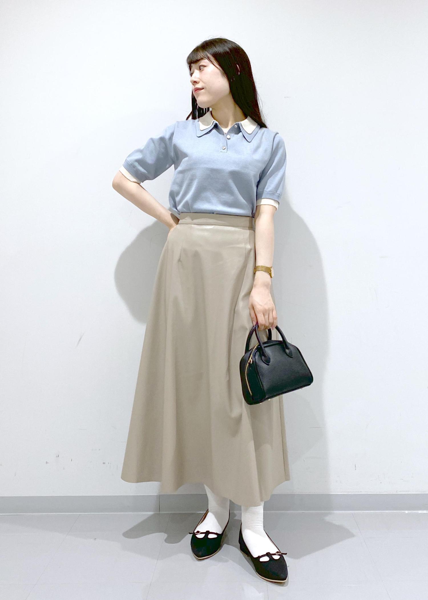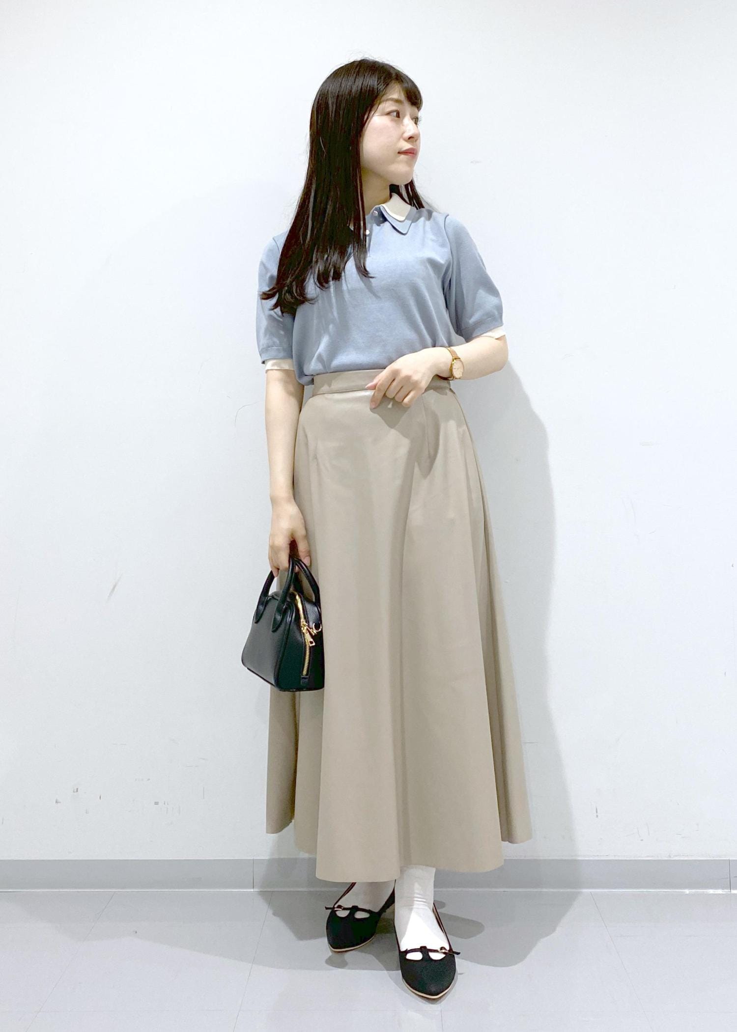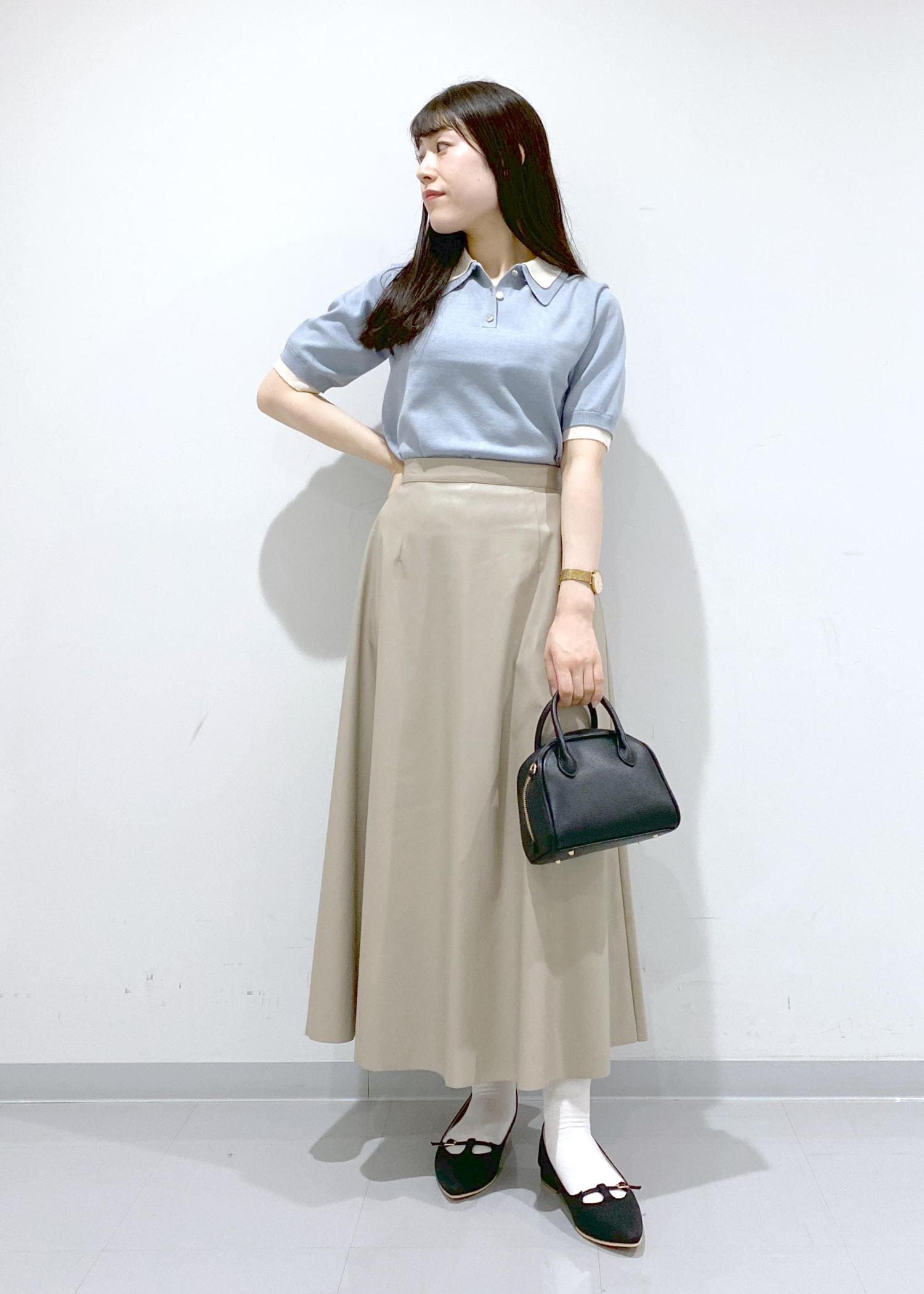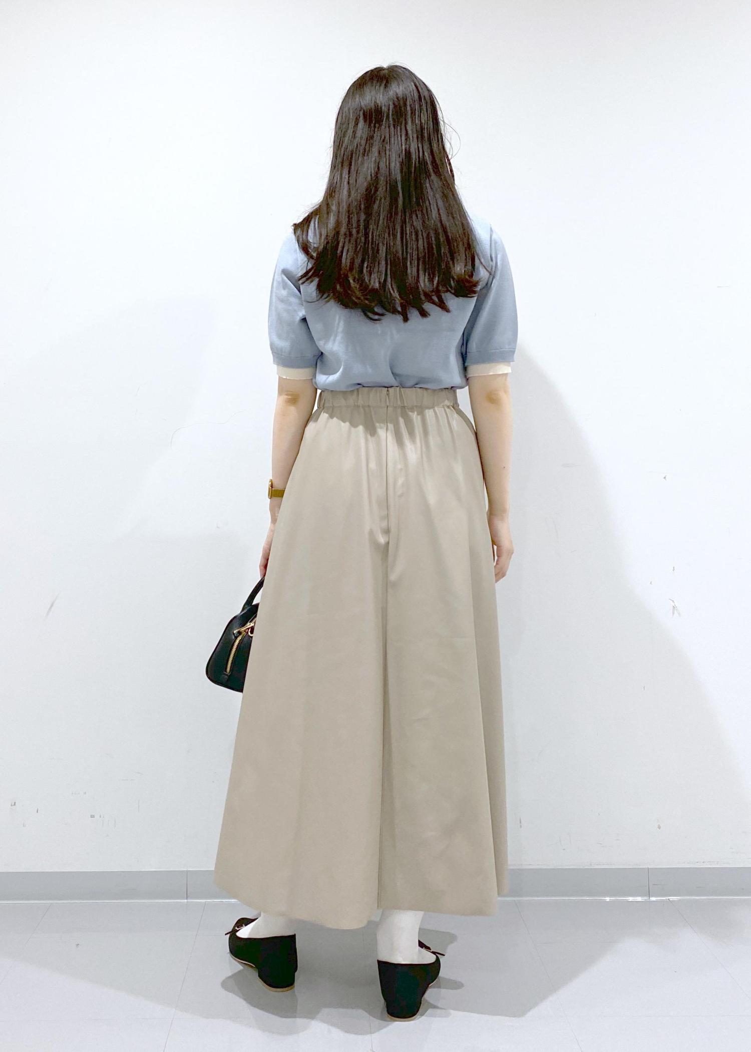 ROPÉ PICNICシンセティックレザーフレアロングスカートベージュ / S¥4,994レビュー足首が見える丈感で、ウエストは薄手のニットをインするゆとりがあります。