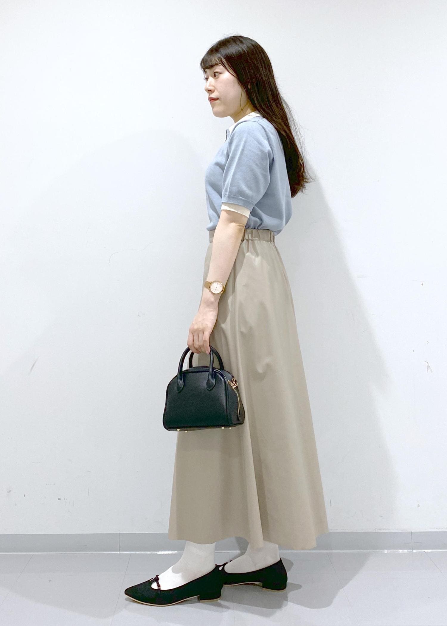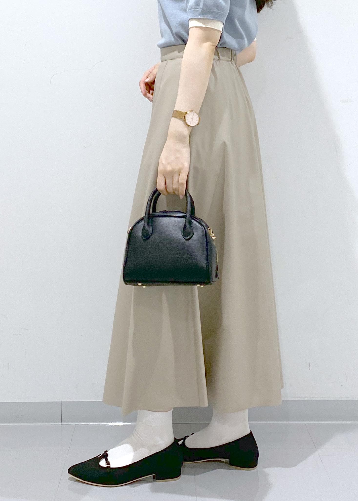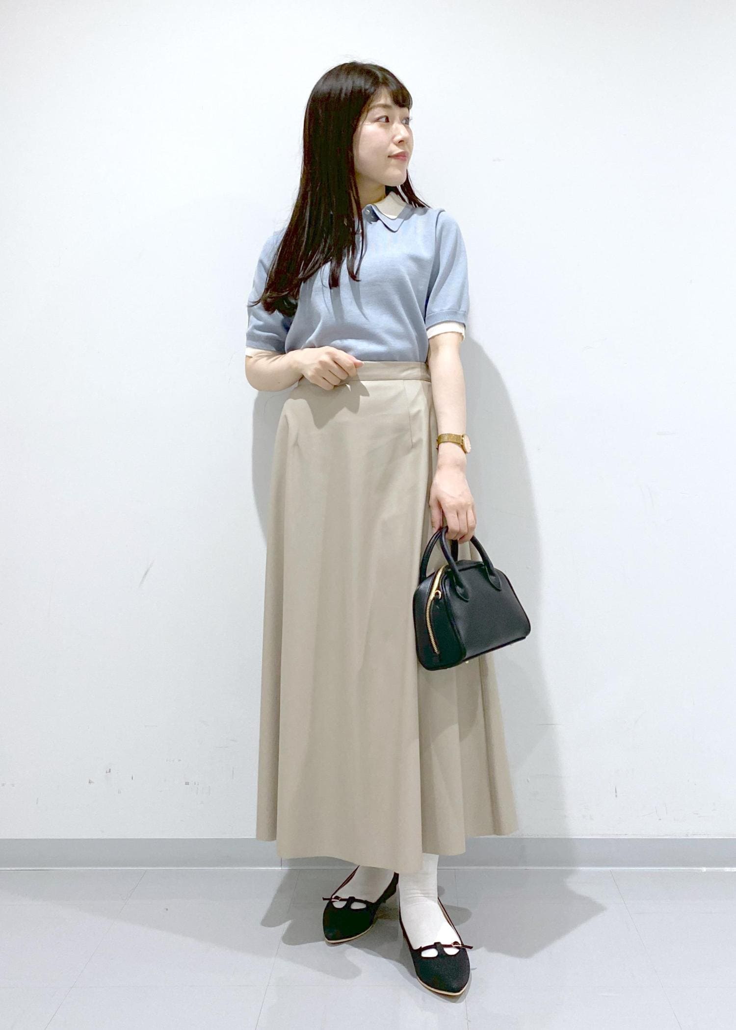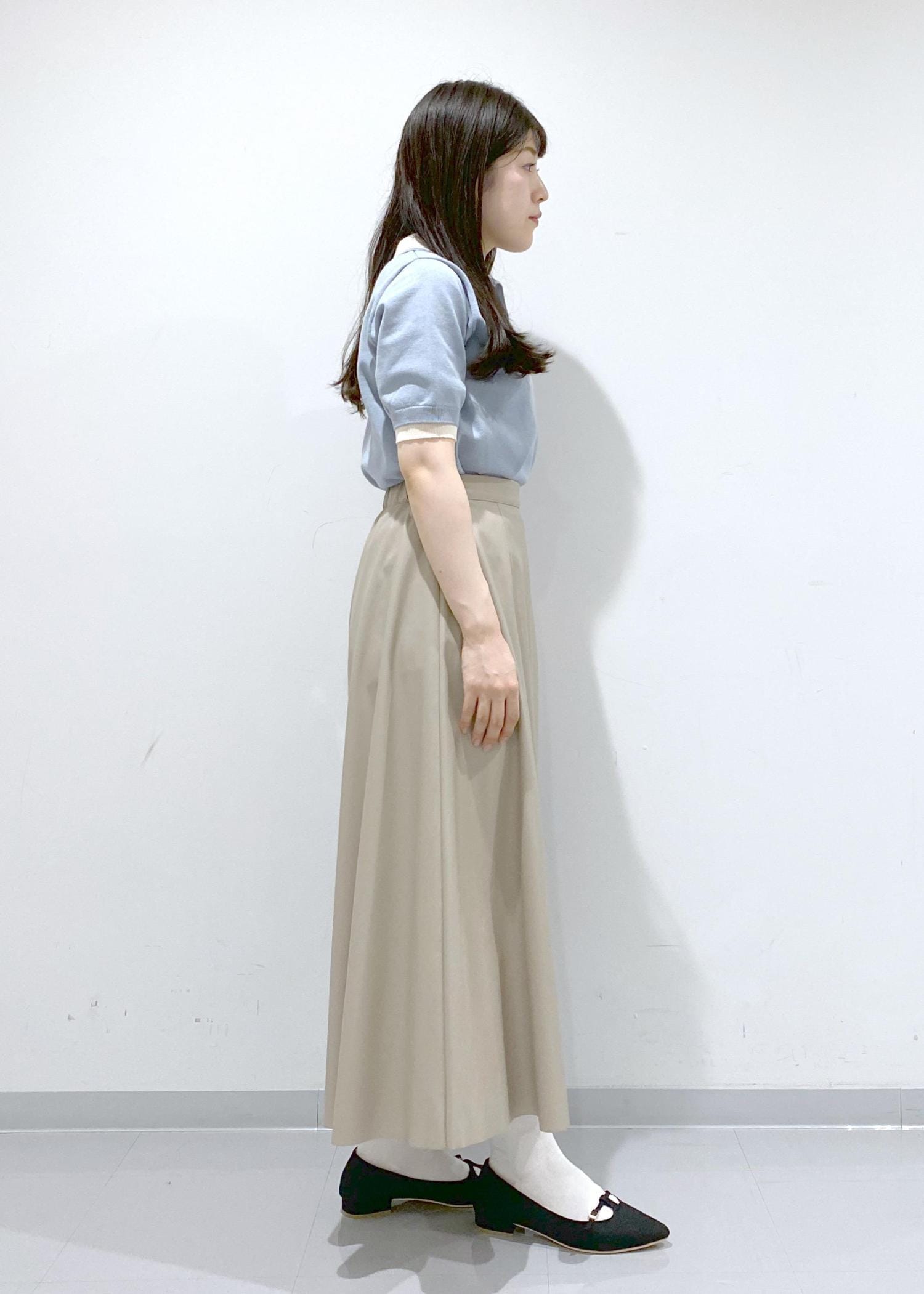 ROPÉ PICNICシンセティックレザーフレアロングスカートベージュ / S¥4,994レビュー足首が見える丈感で、ウエストは薄手のニットをインするゆとりがあります。