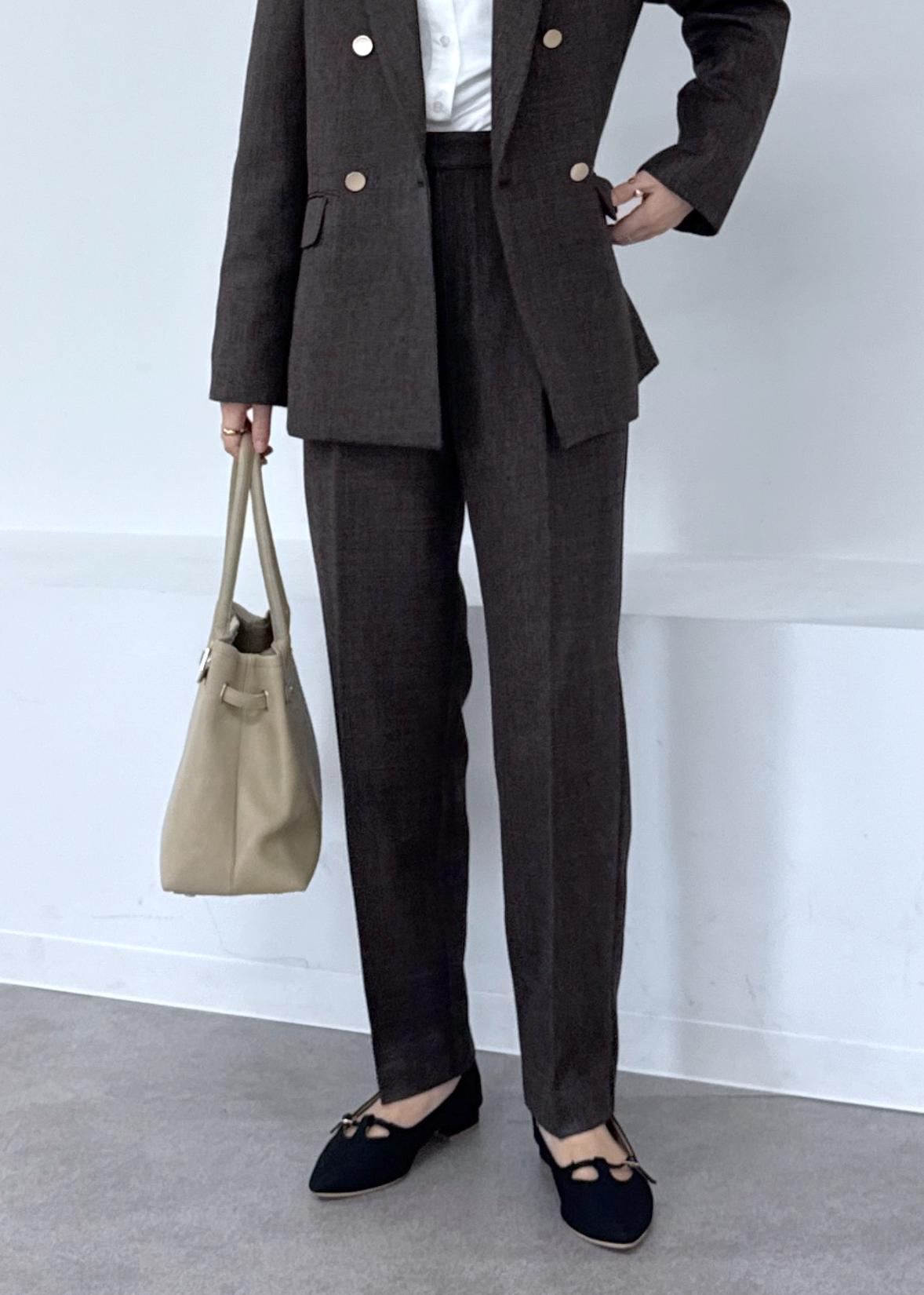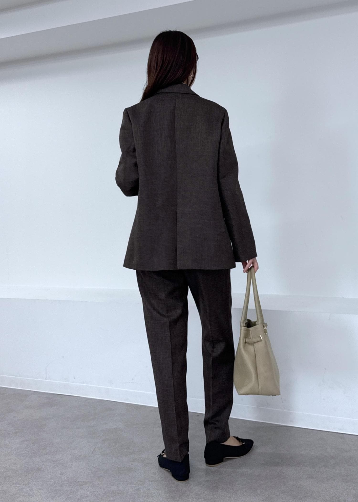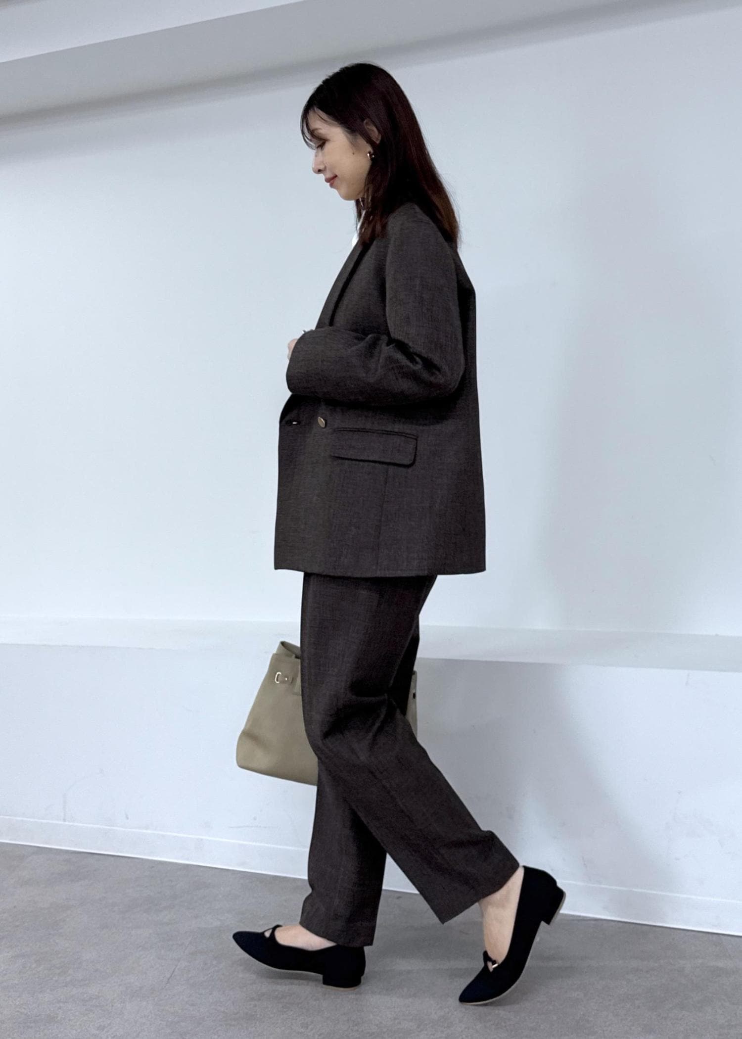ROPÉ PICNICスリートーンツイードテーパードパンツ/セットアップ対応ダークブラウン / M¥5,489レビュー162㎝で足の甲に触れるか触れないかくらいの長さでした。タック入りなので腰回りにゆとりがありつつ、下にかけてスッキリ綺麗なラインで履けます。