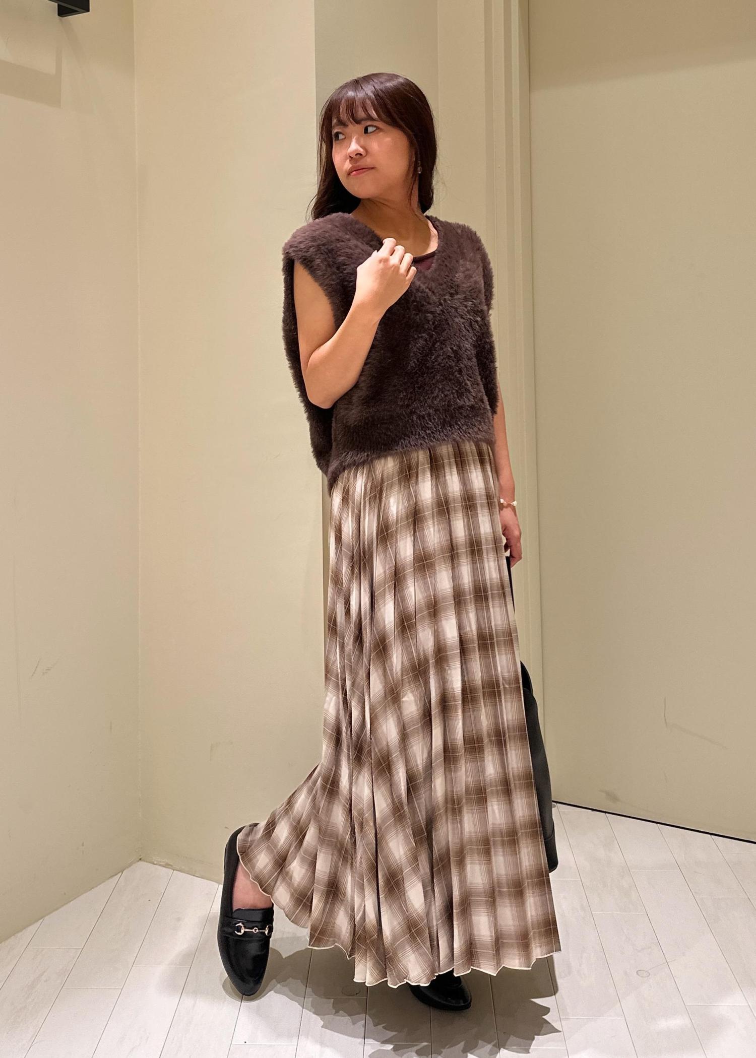 人気なアイテム!ショートフェザーニットベストを取り入れたコーデを組んでみました!