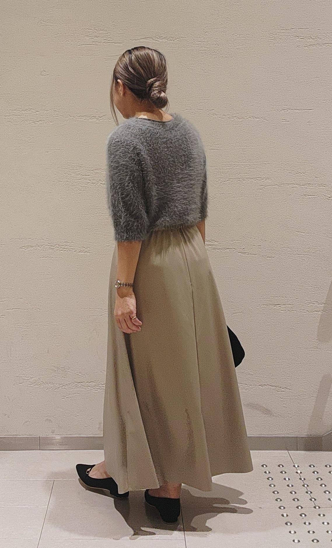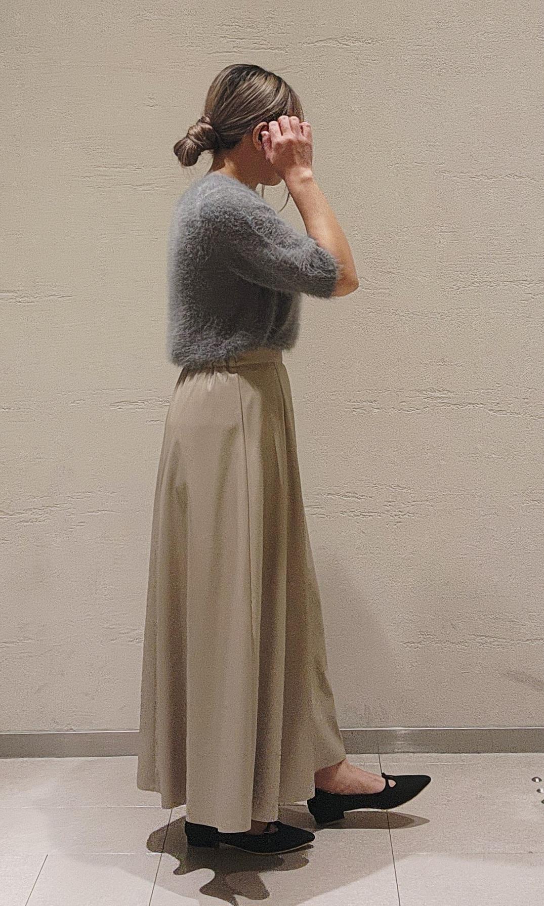着丈は足首程でパンプス〜ブーツと足下を選ばず着用できます。