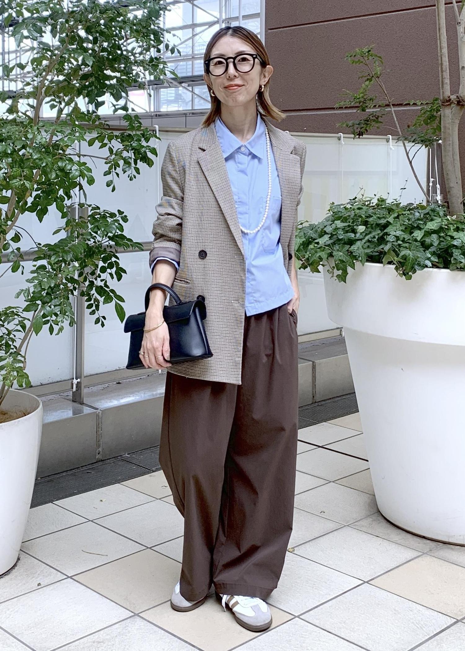 秋らしいカラーでまとめた秋ジャケットコーデ。