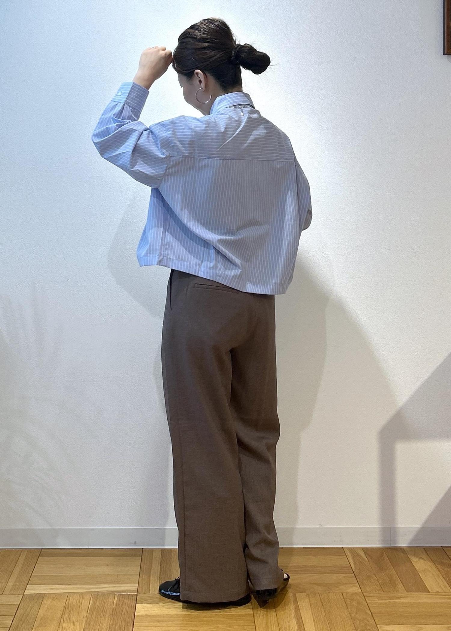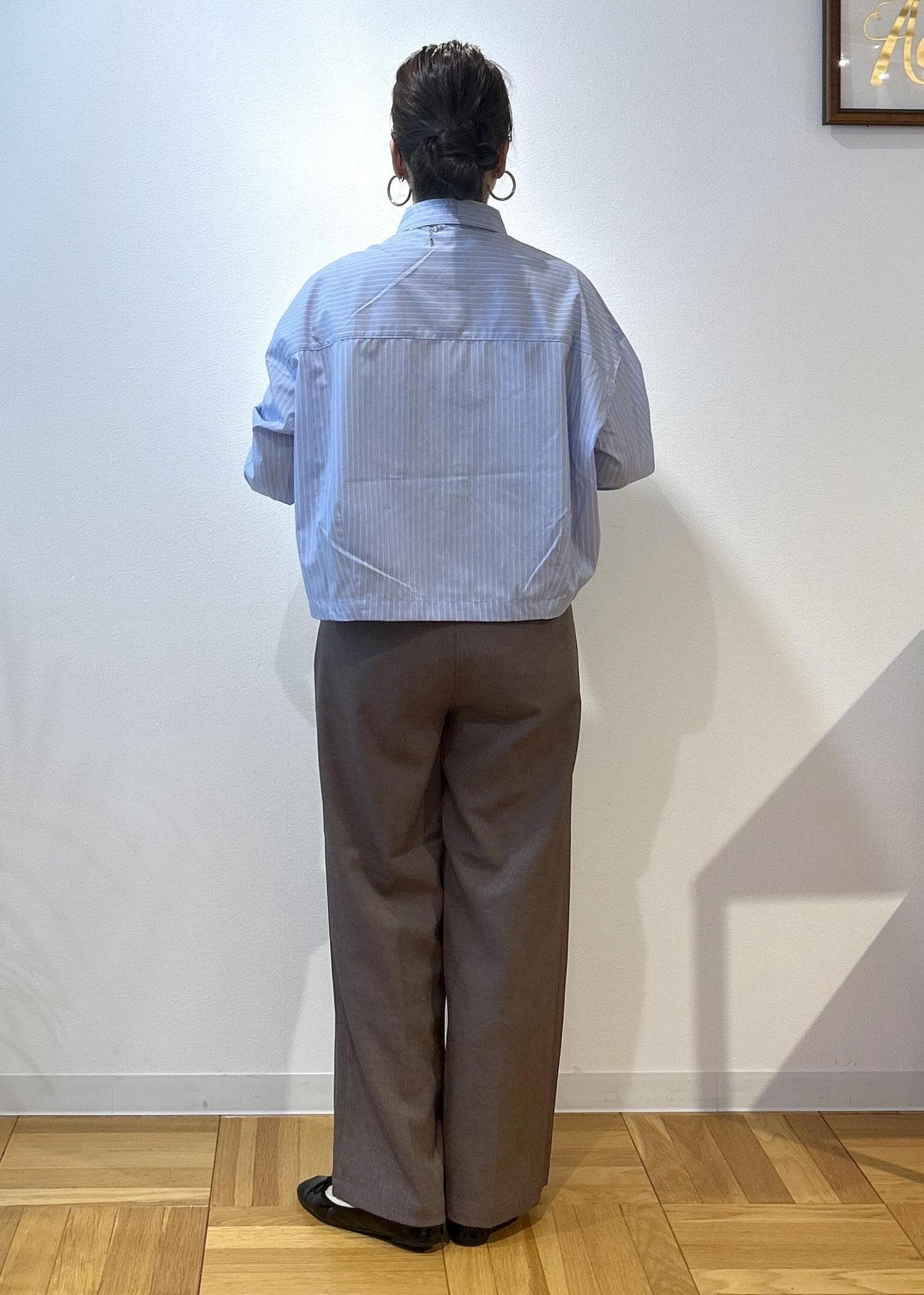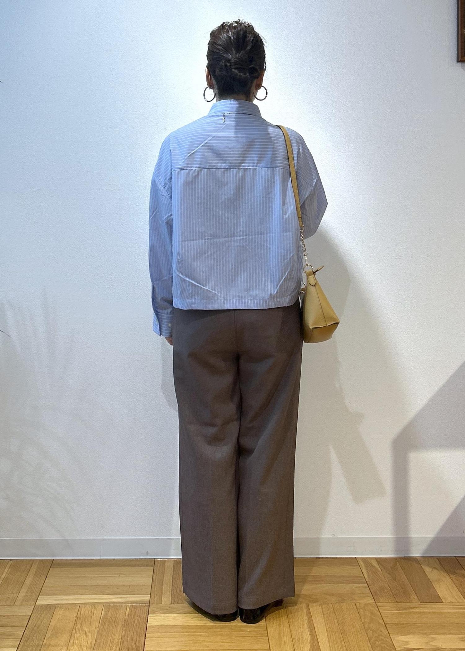 ROPÉ PICNICベーシッククロップドシャツ/イージーケアサックス / F¥5,489レビュー着丈はウエスト位置で脚長効果を出してくれるトップス。前ボタンなので温度調節もしやすく、襟あるのできちんと感もだせます。