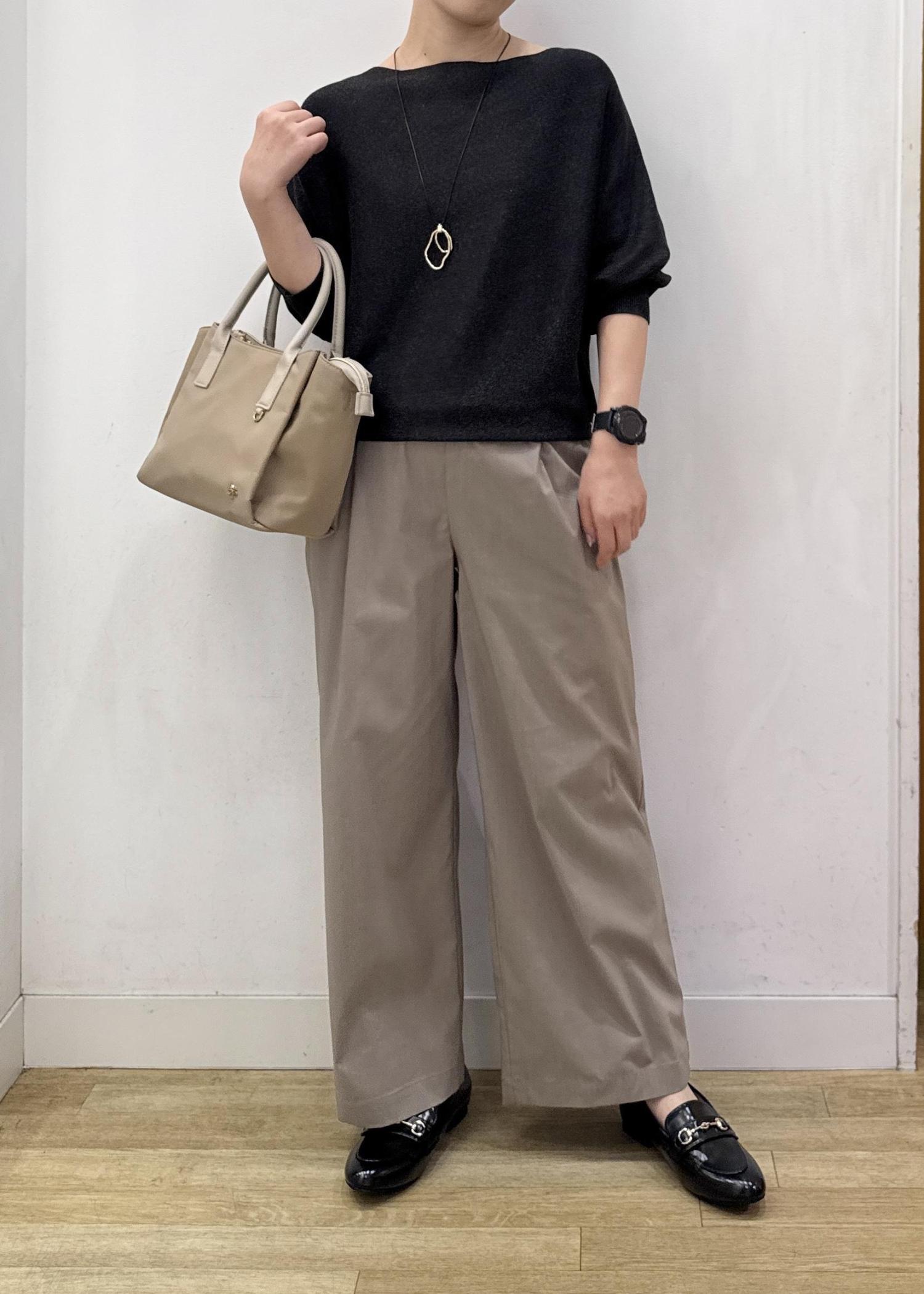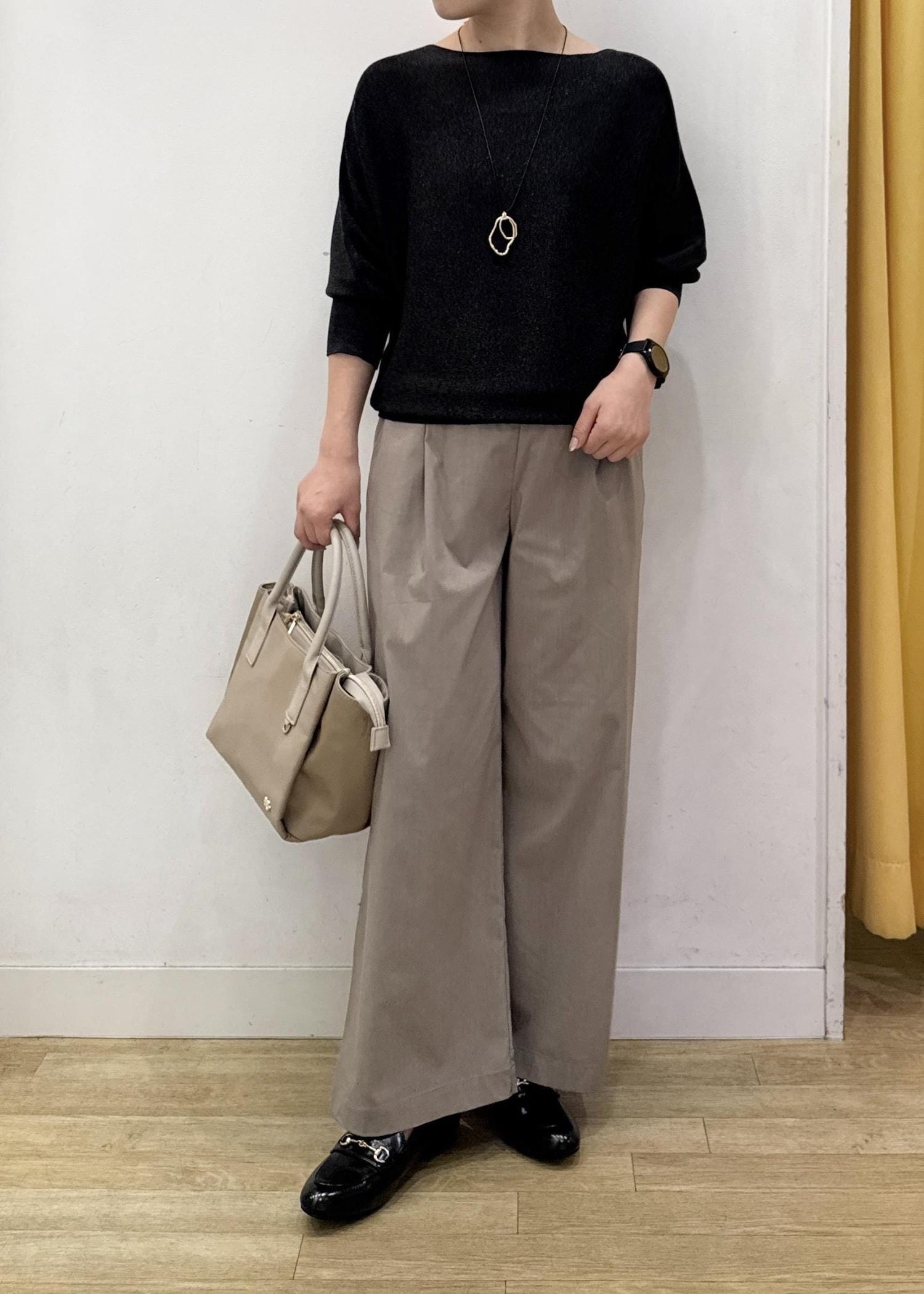 ラメ混のゆったりニットに、ウエストオールゴムのラクチンパンツを合わせれば大人カジュアルコーディネートの完成です☺︎