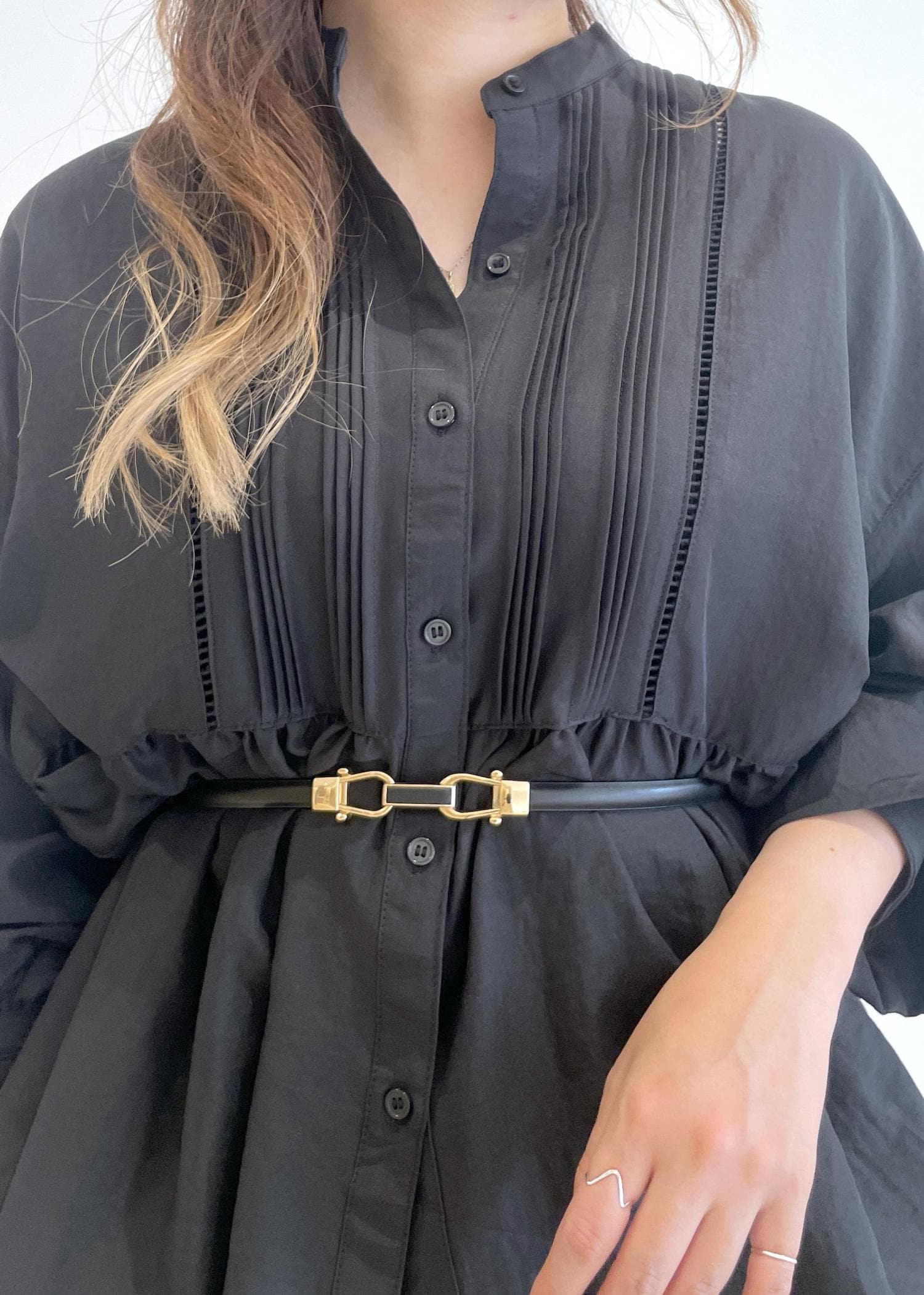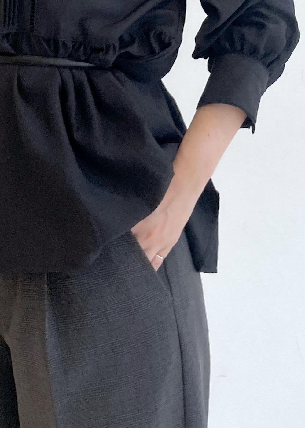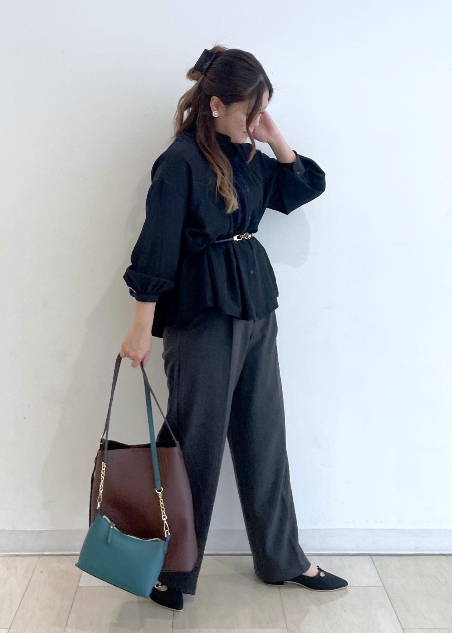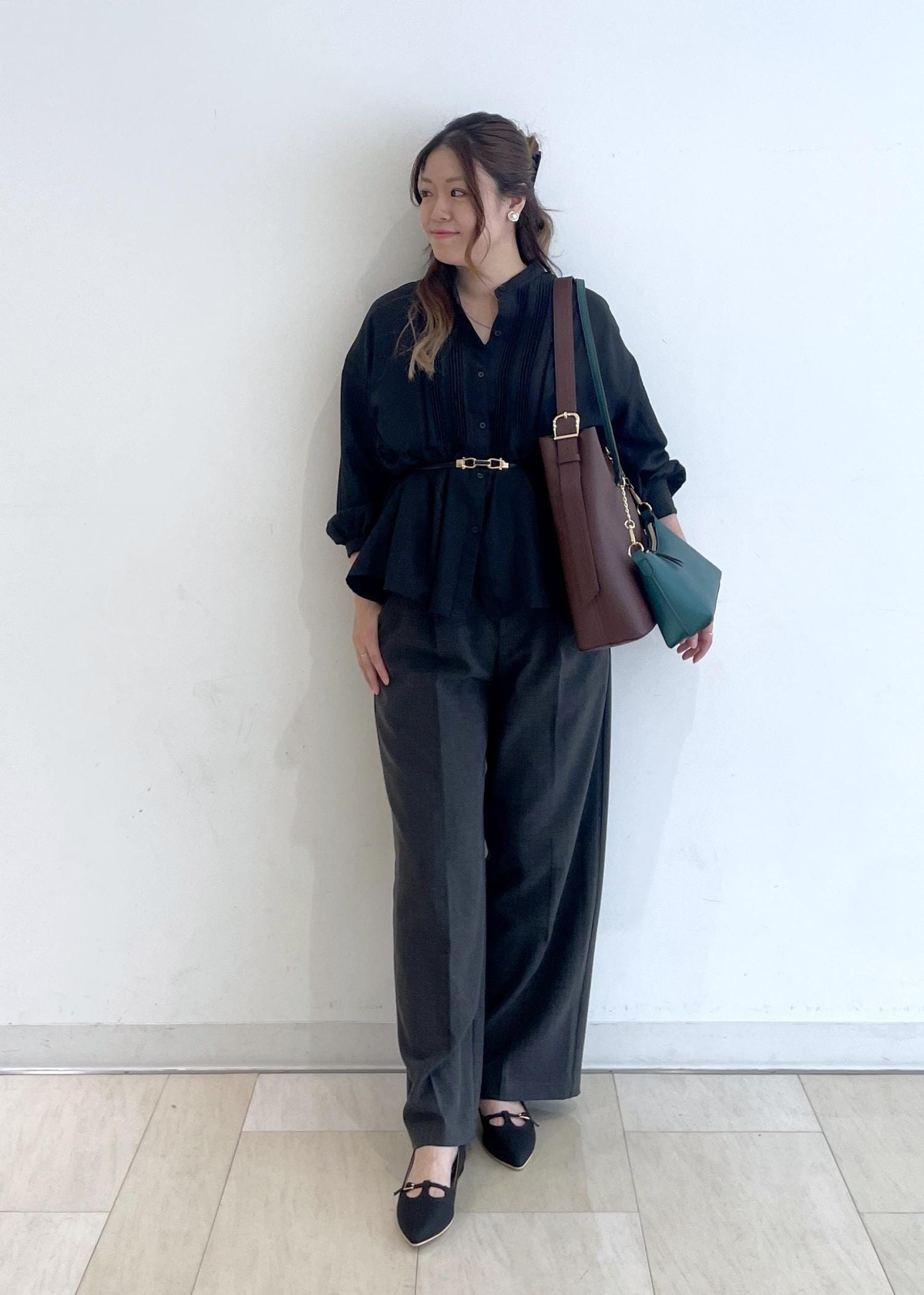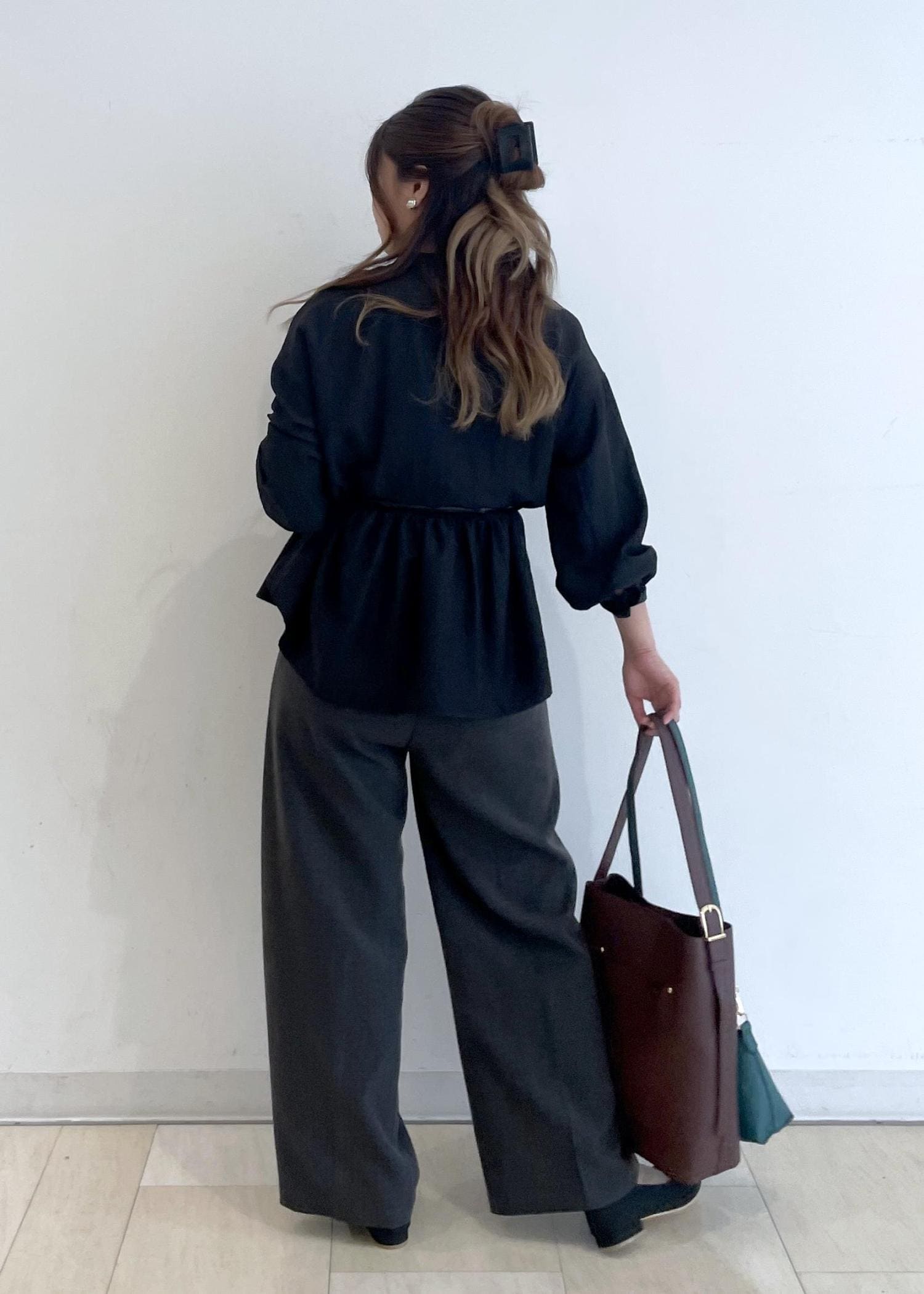 ふわっとしたペプラムブラウスなので、切り替えのところでベルトを付けてスッキリ見えるようにしました!