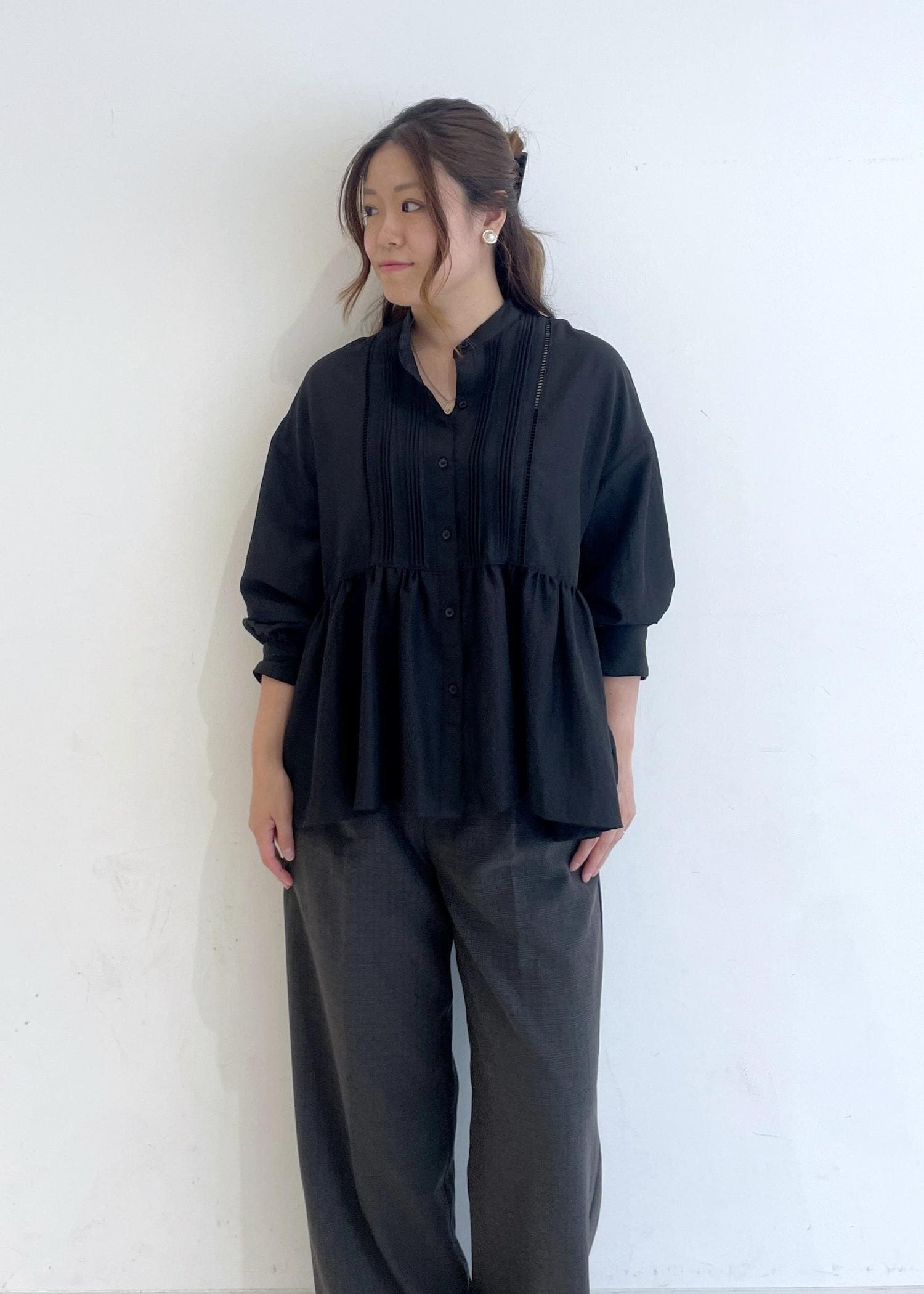 ROPÉ PICNIC【UVケア・防シワ】羽織れるピンタックデザインペプラムシャツブラック / S¥3,993レビュー身幅はかなりゆったりなシルエットです!