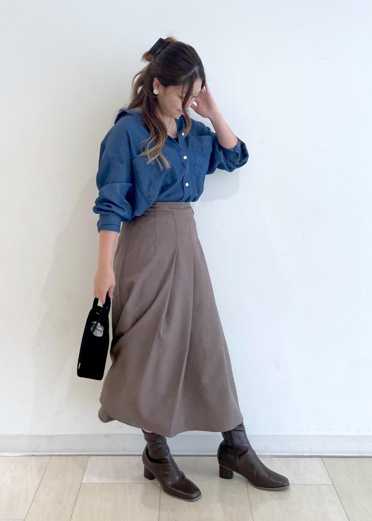 きれいめのスカートとブーツ合わせでデートにも使える大人コーデにしました!