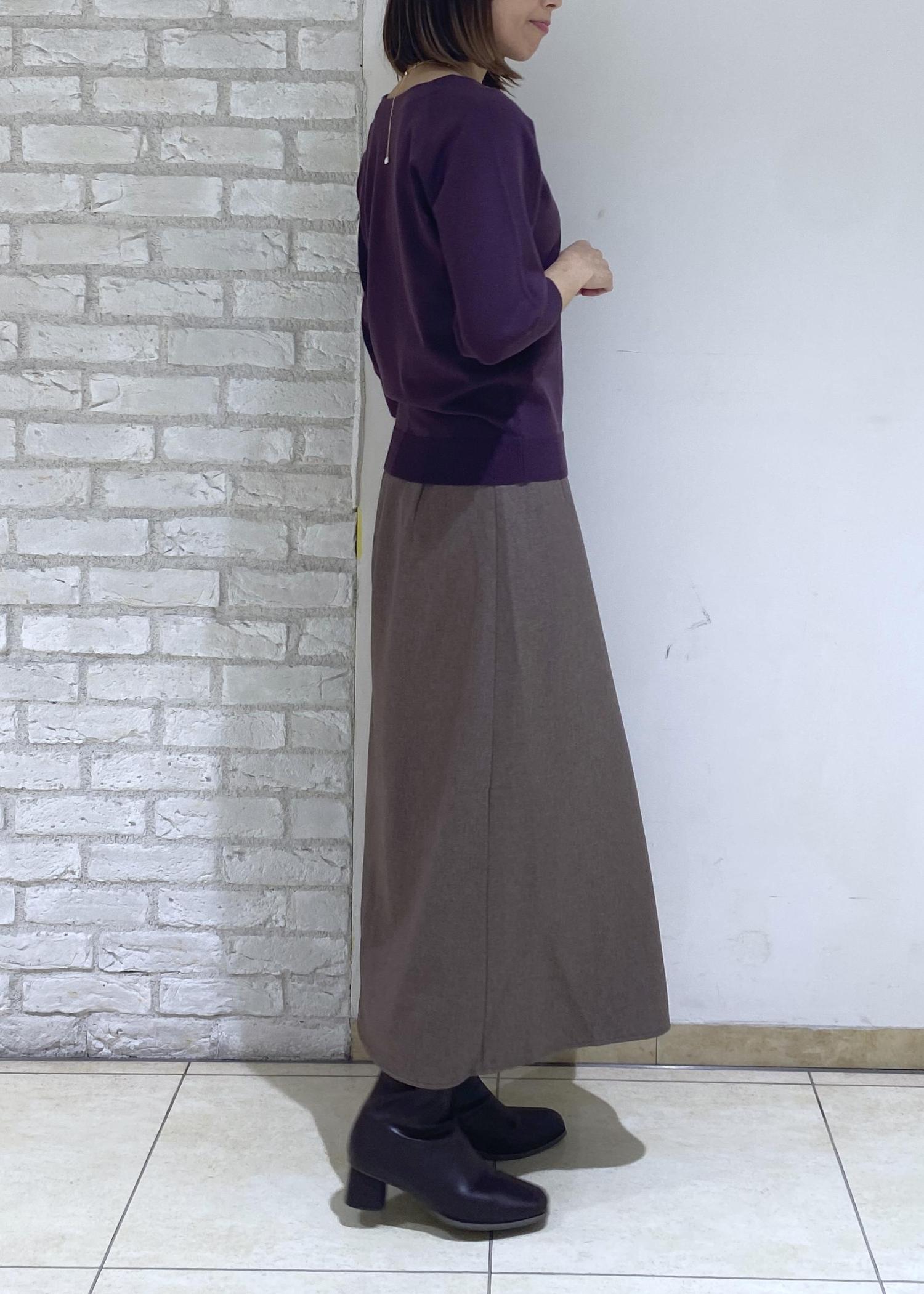 タック入りで程よい広がりがあり、ボリュームをおさえて履くことができました。