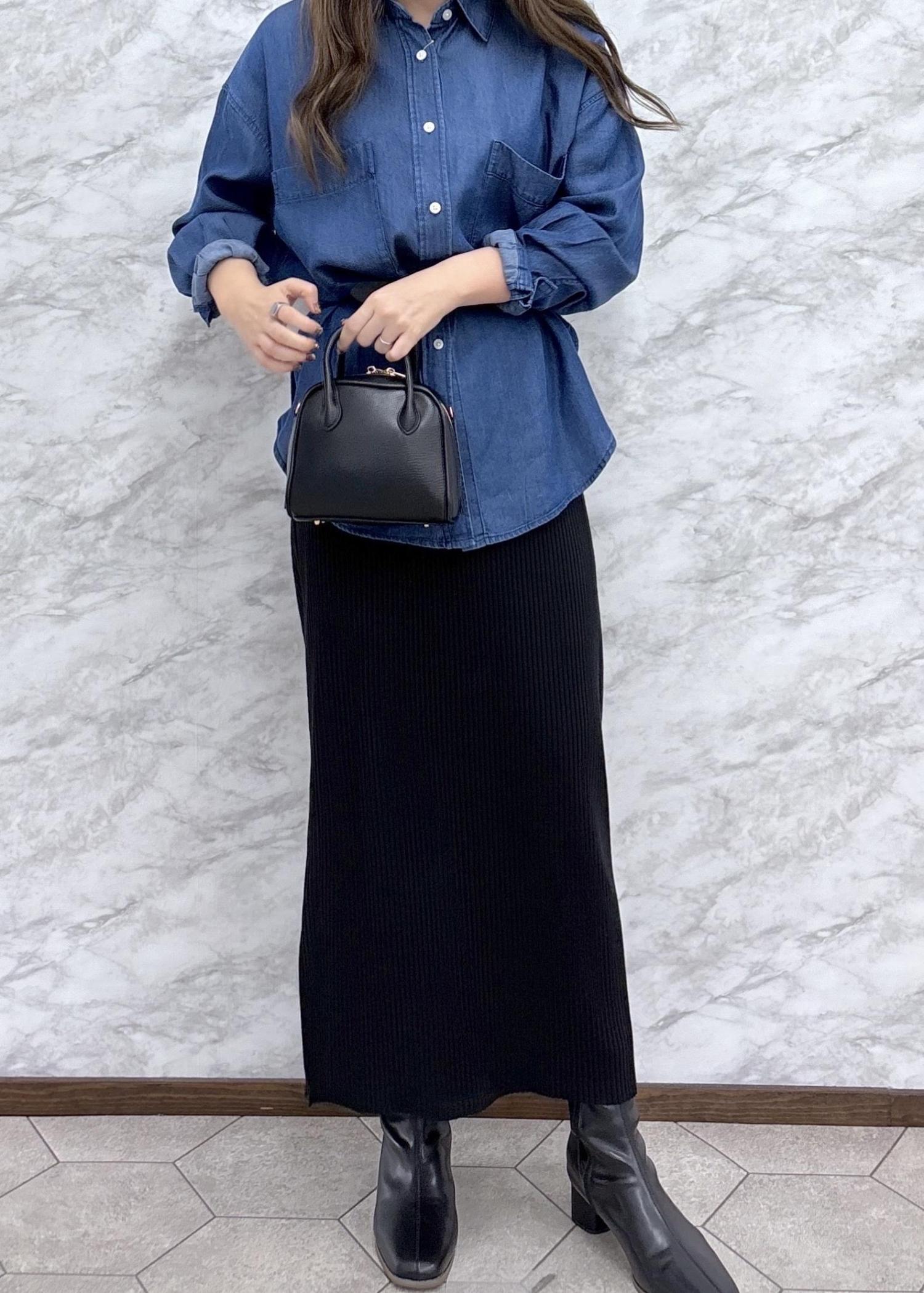 ・伸縮性に優れた、トタンテレコ素材のIラインニットスカート。