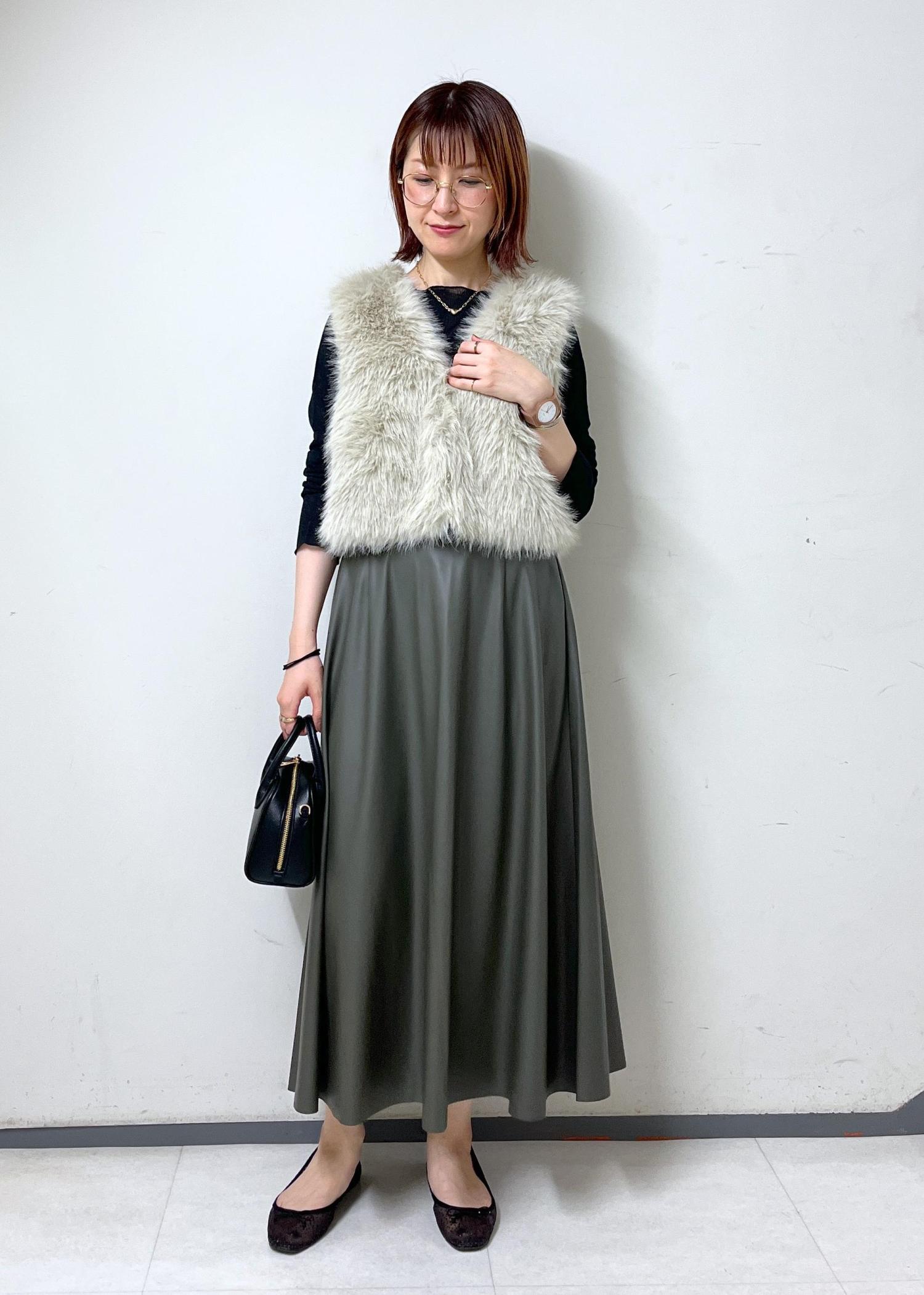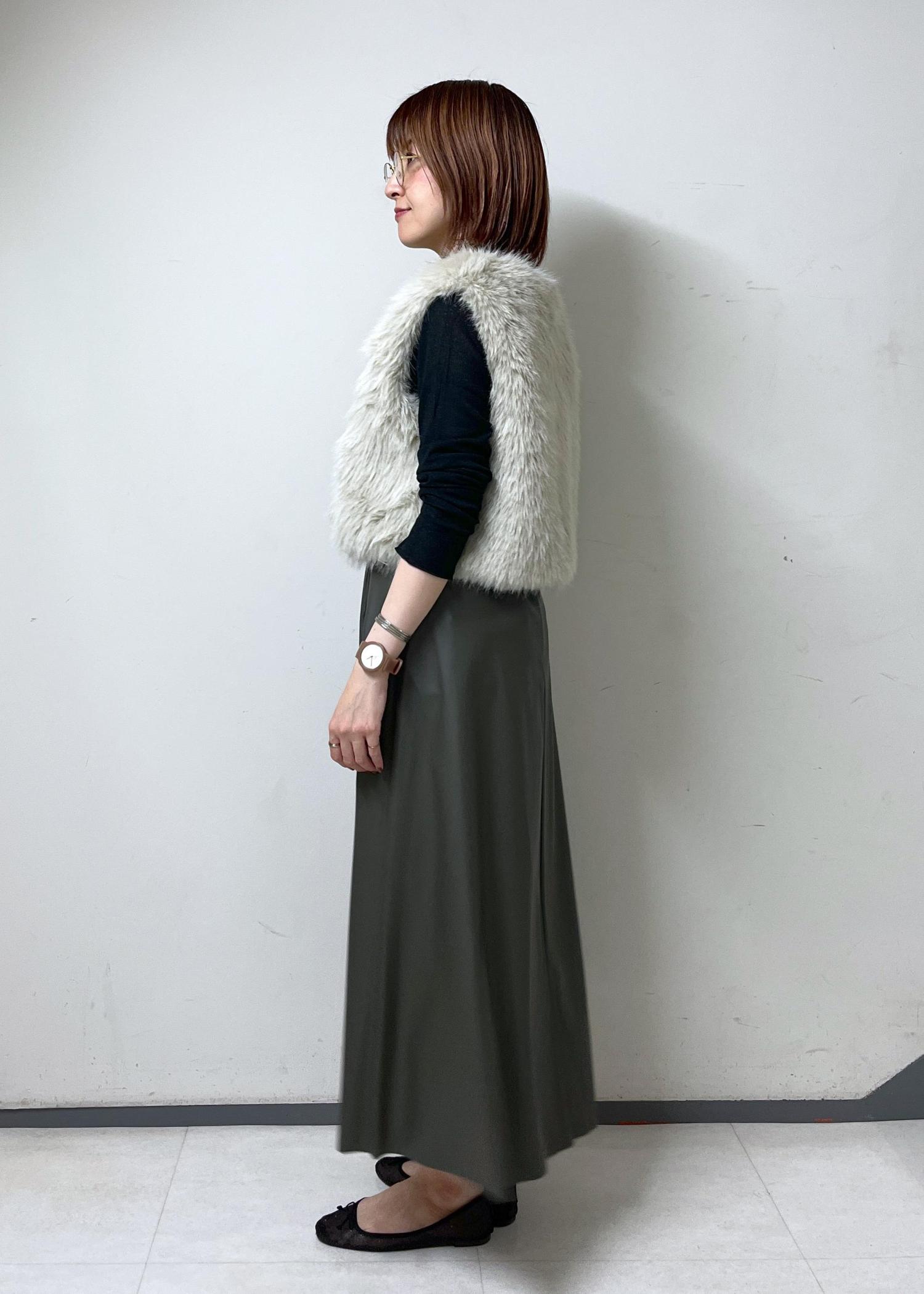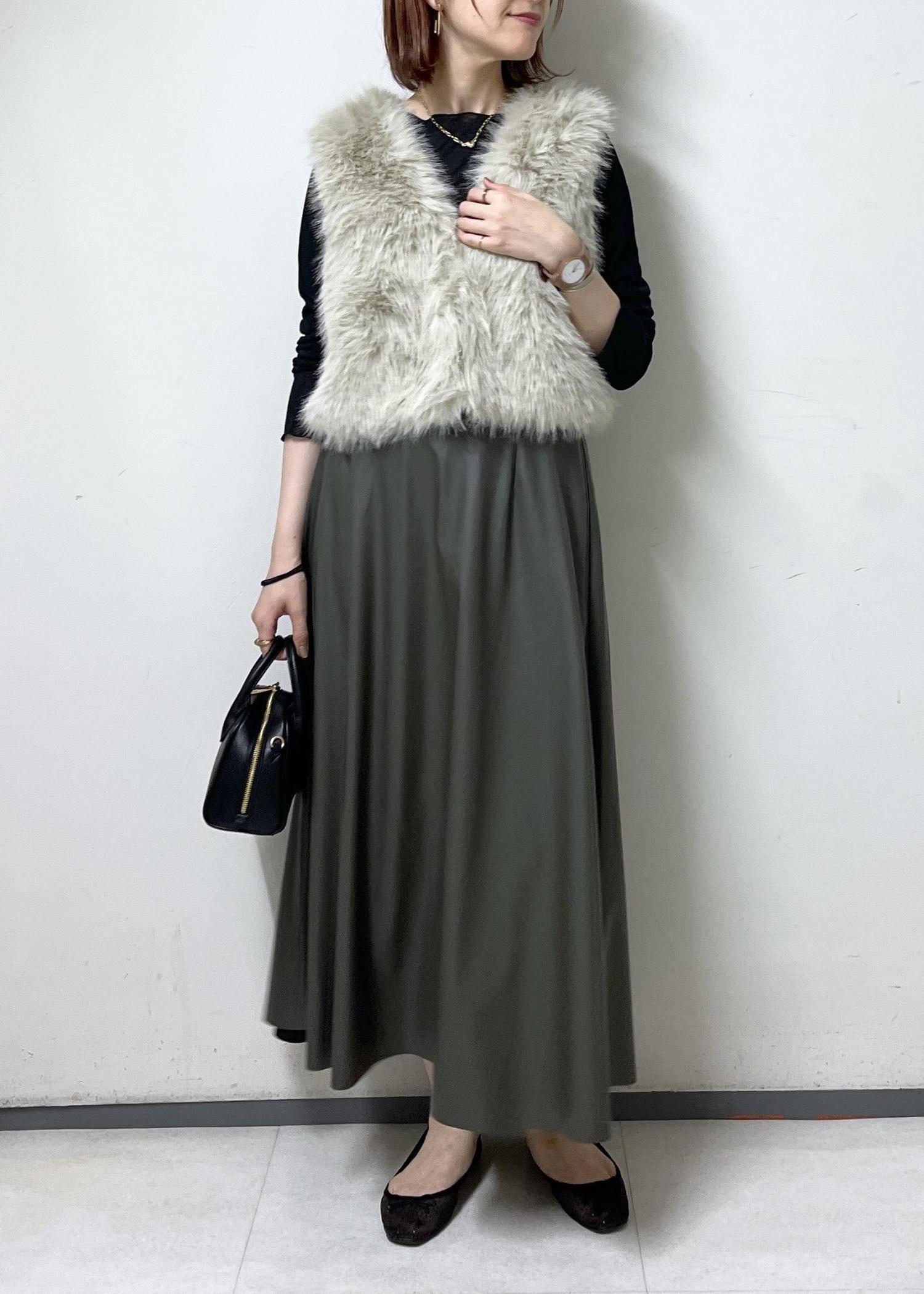 フェイクファーベストを使った、お出かけコーデです。