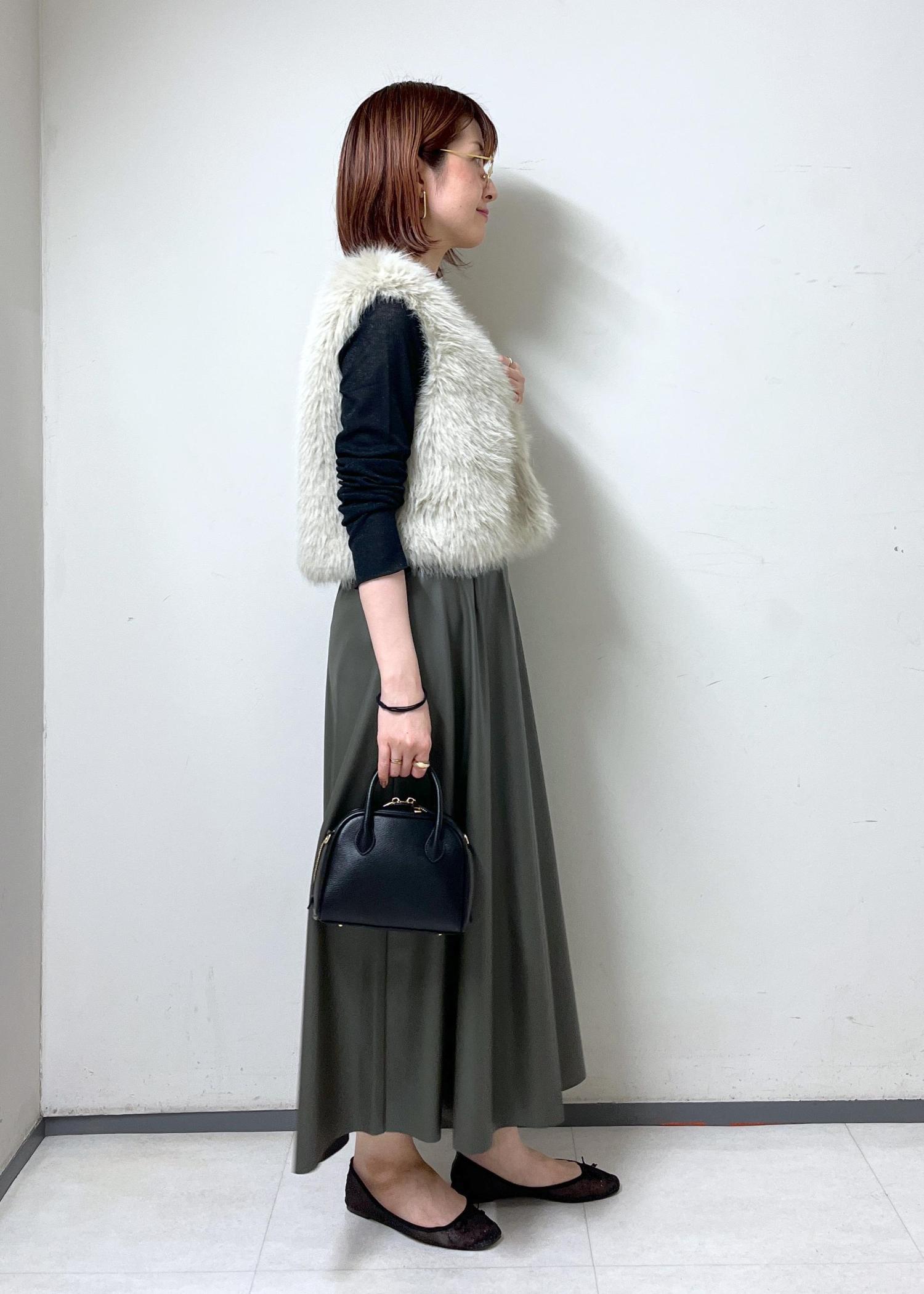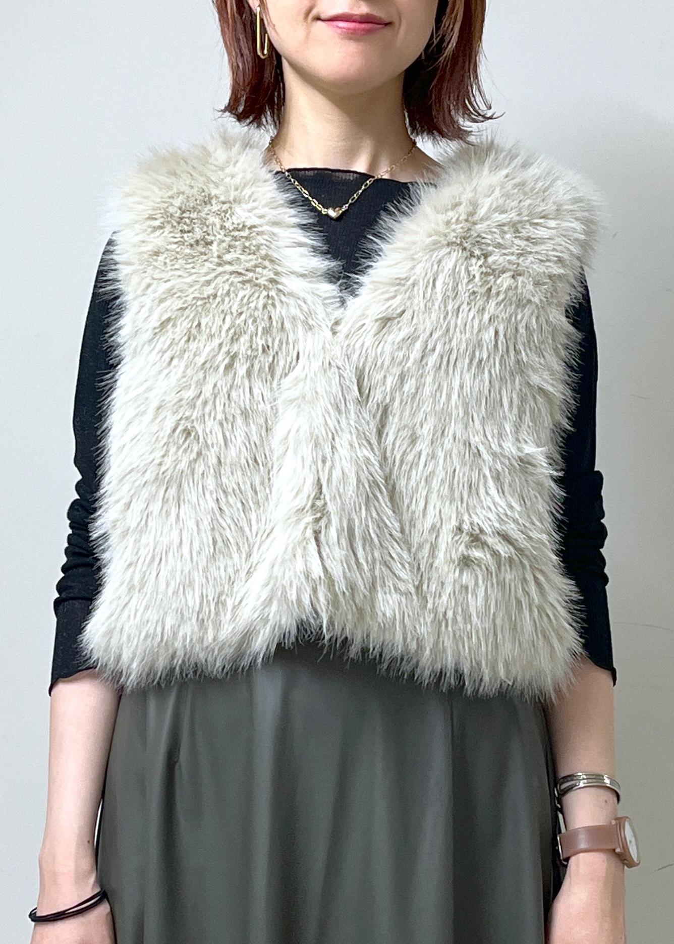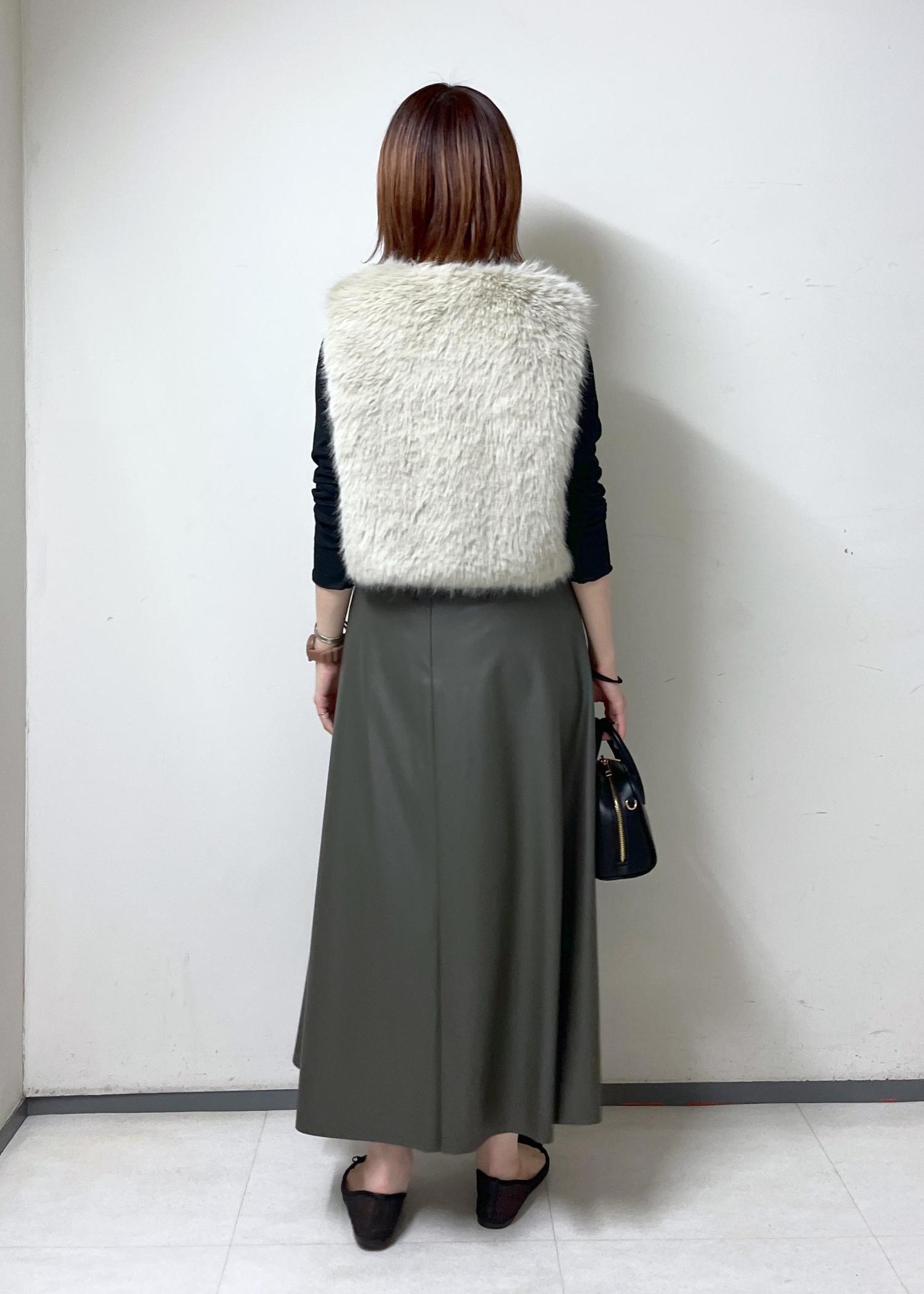 フェイクファーベストを使った、お出かけコーデです。