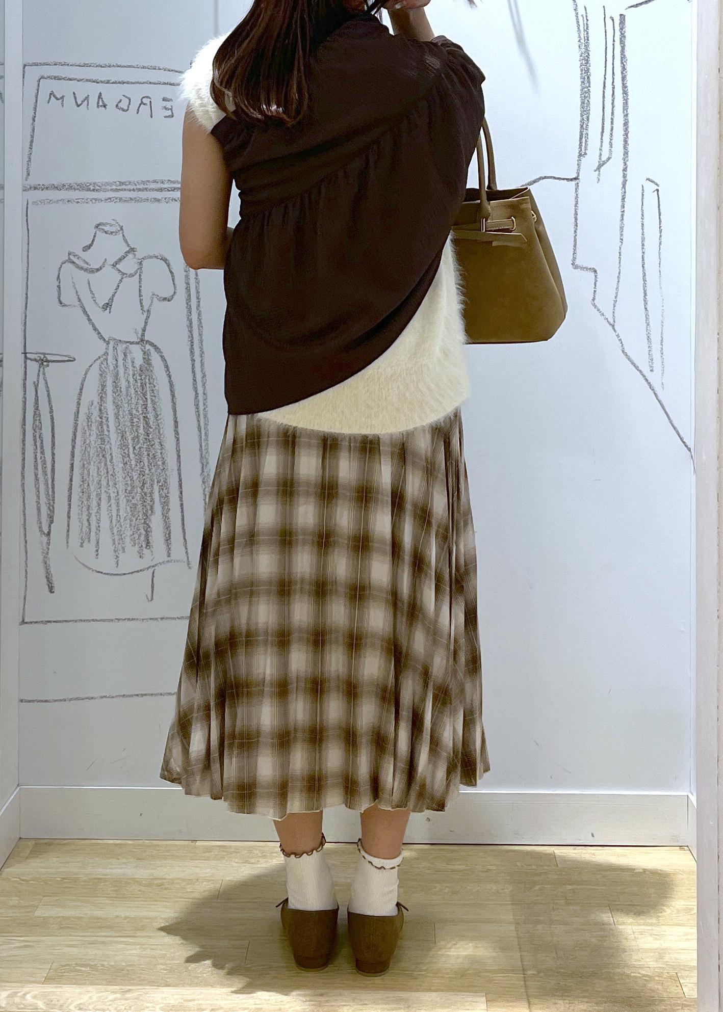 ROPÉ PICNICチェック柄プリーツスカートキャメル / F¥4,994レビュー落ち着きのあるチェック柄の為普段チェックを着ない私も合わせやすかったです。お腹周りもゴムなので楽ちんに履き心地が良いです。ボリュームもでにくく、動きの出るスカートです。