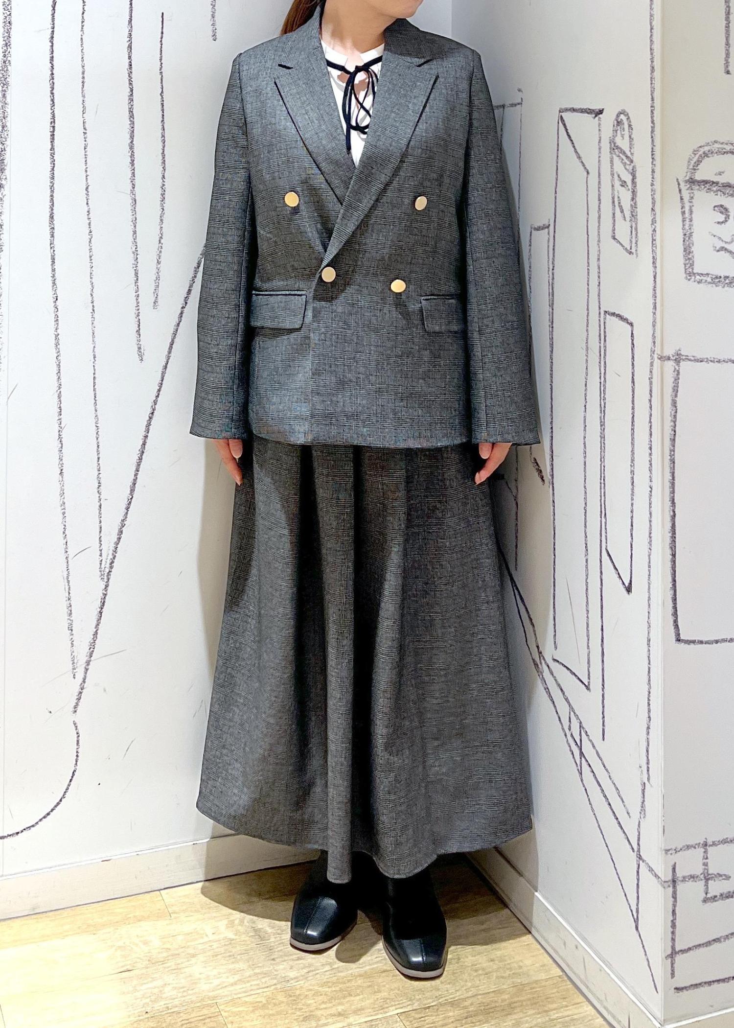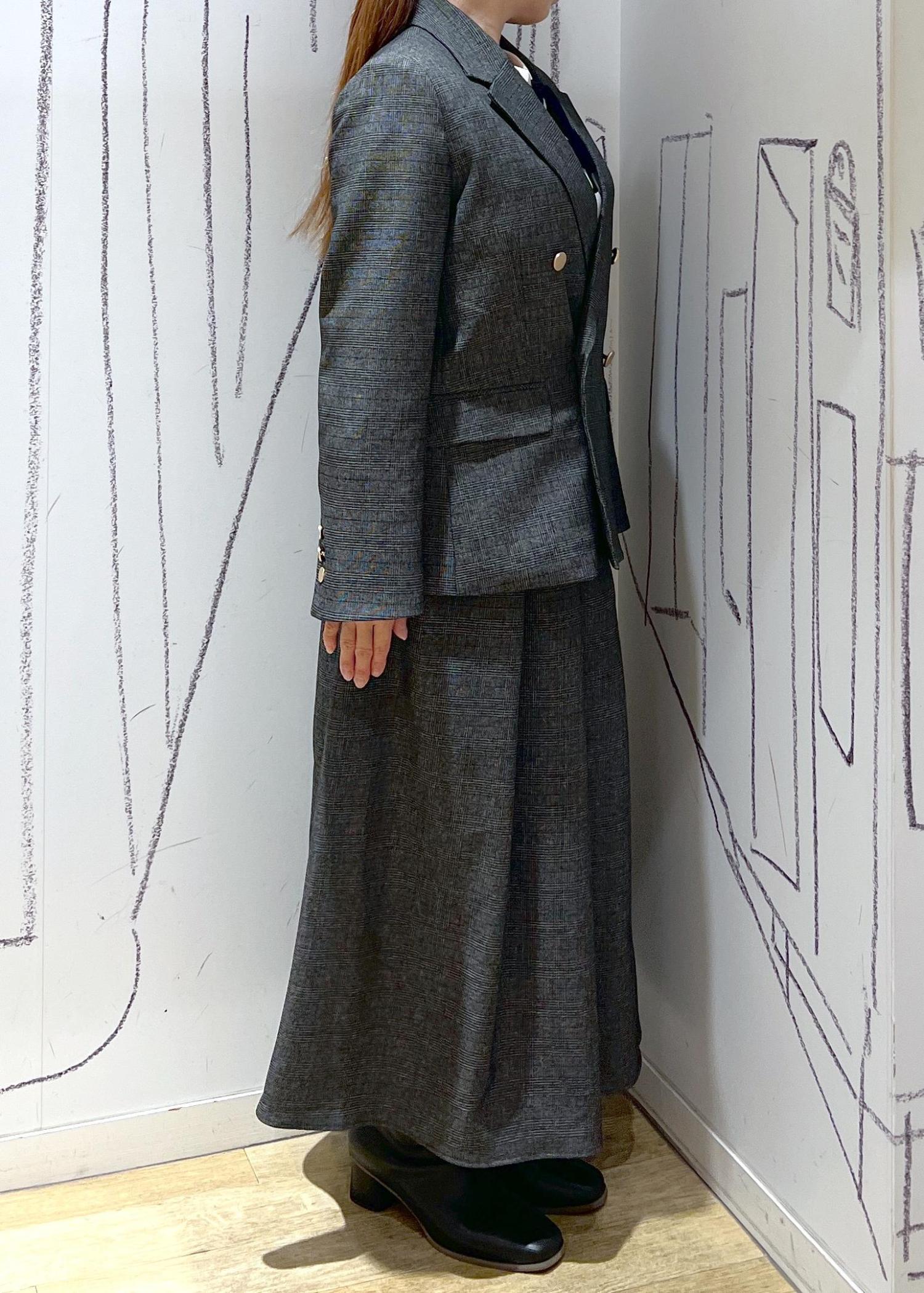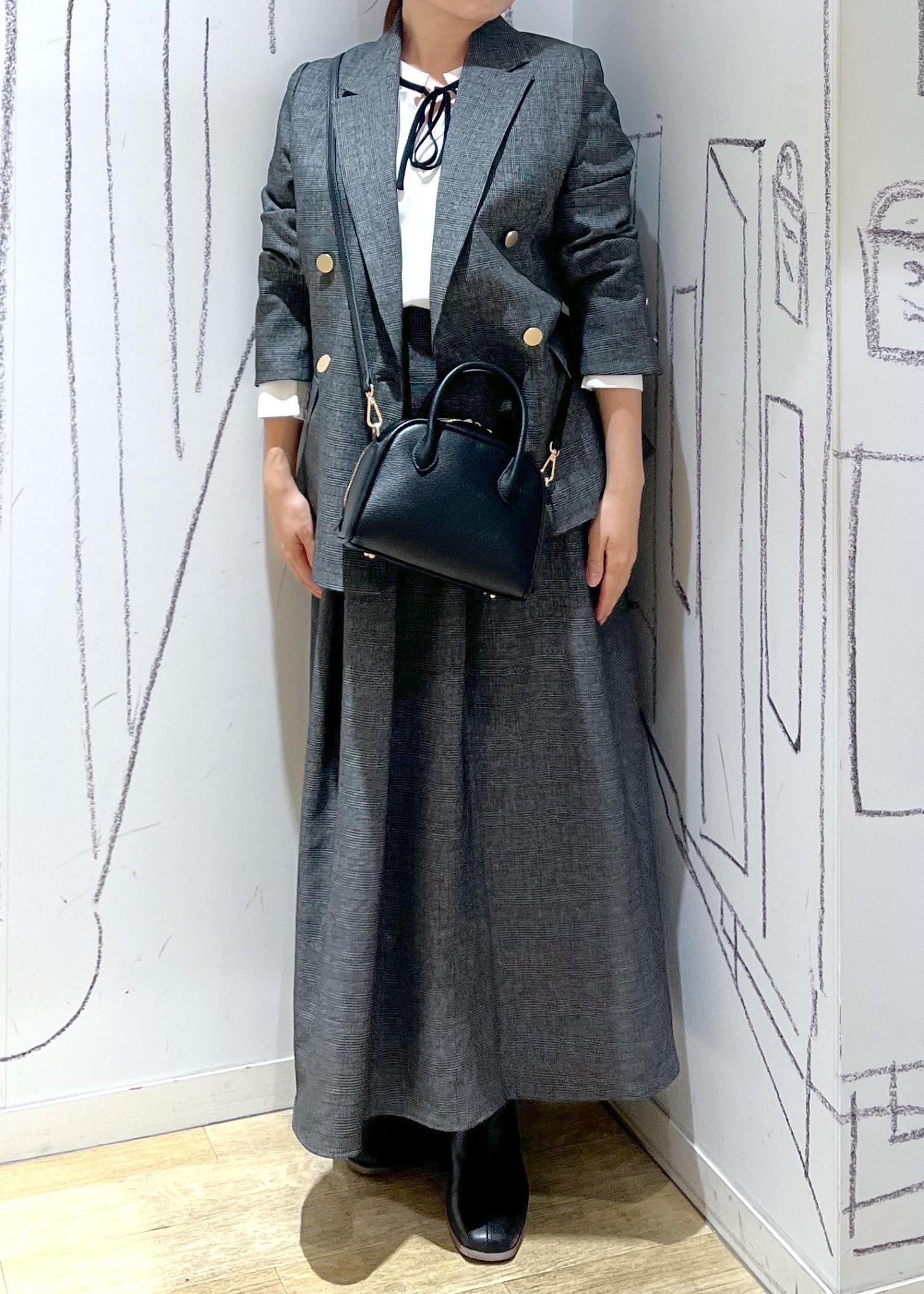 小柄な方でも楽しめるスカートのセットアップです!ジャケットのみ小柄さん用です。スカートはレギュラーサイズのみの展開ですがサイドベルトでウエストを詰めることが可能で、ウエストが浮くことなくスッキリ着用できます◎