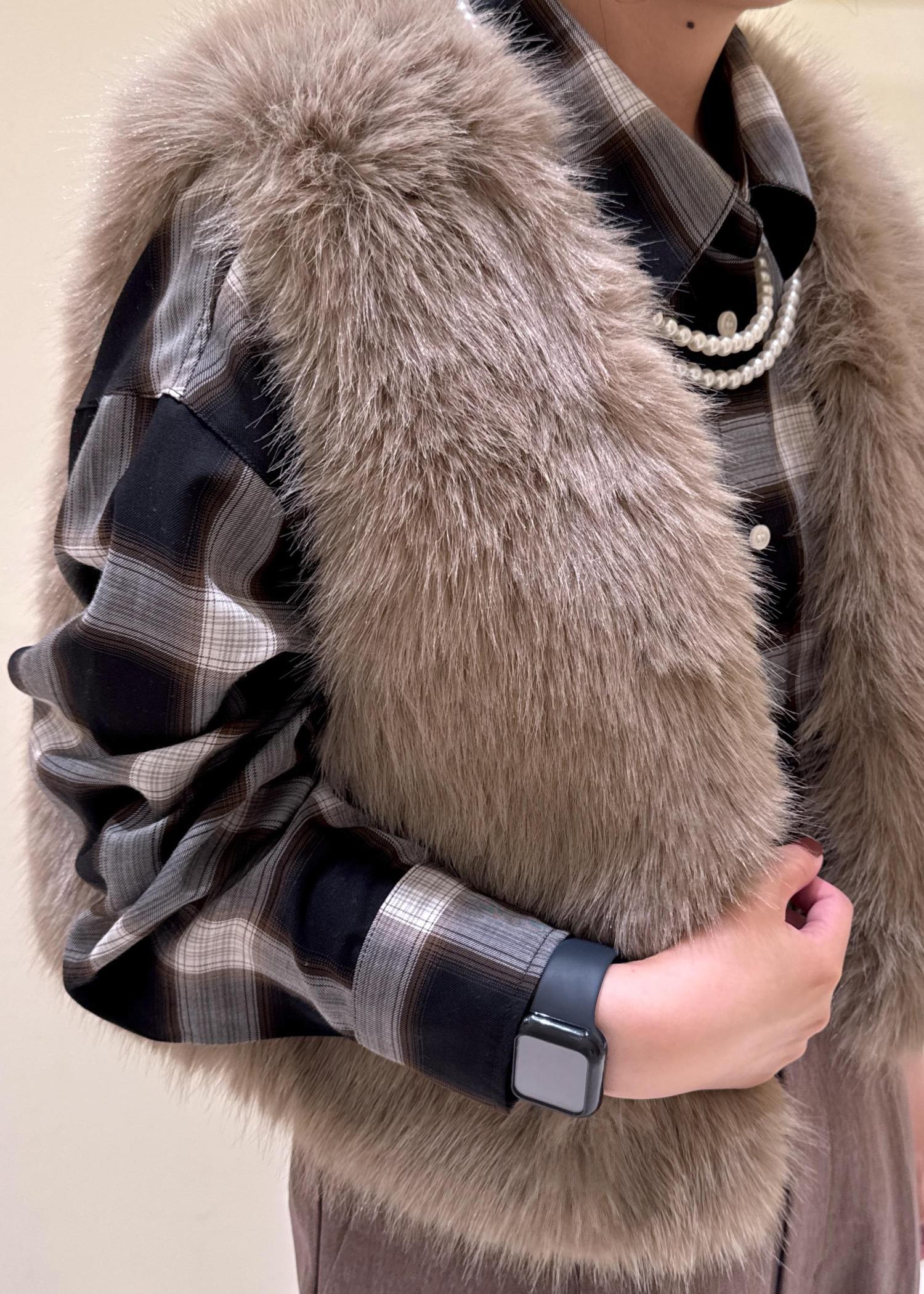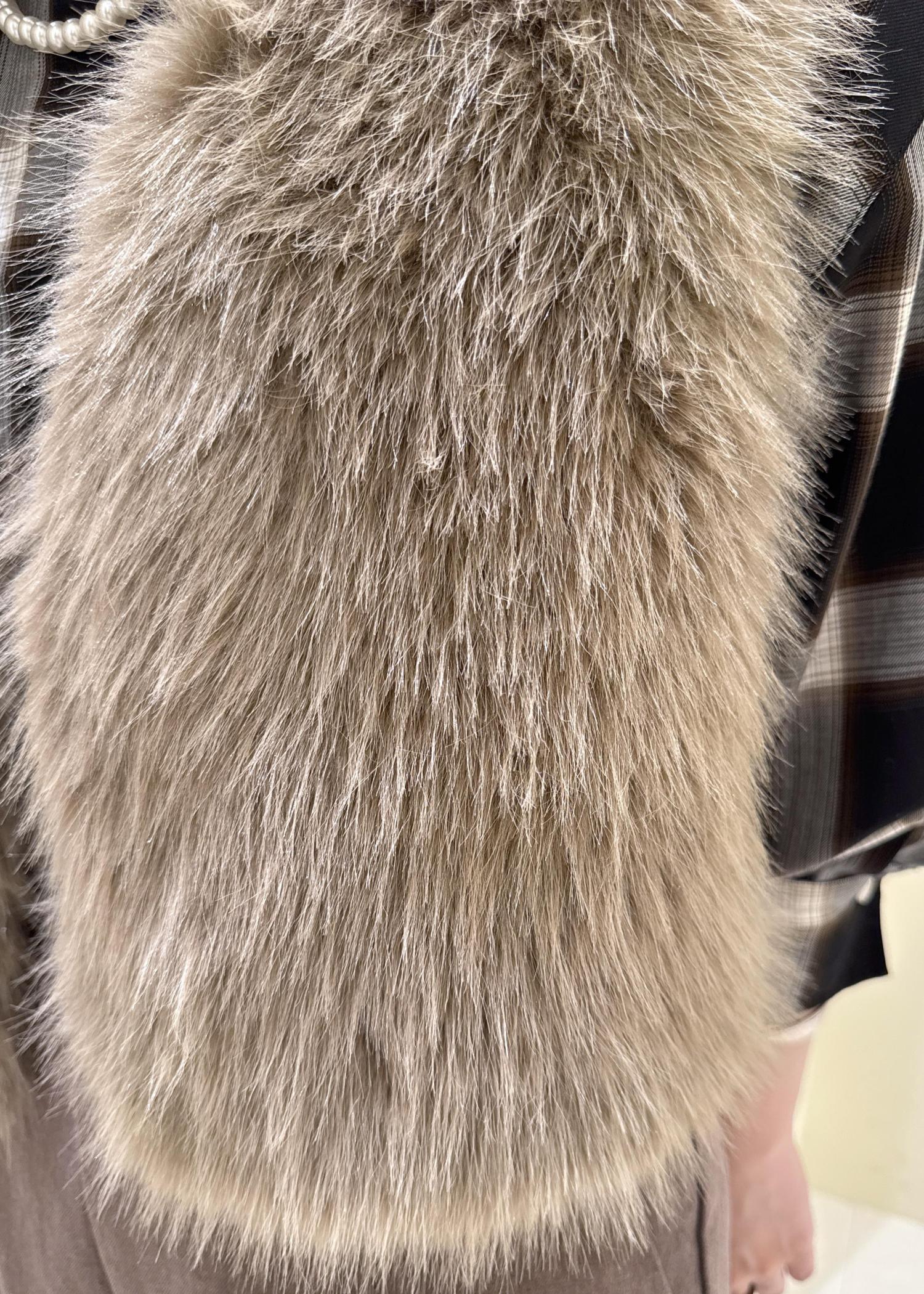 長い毛並みで一気にコーディネートを華やかにしてくれます。